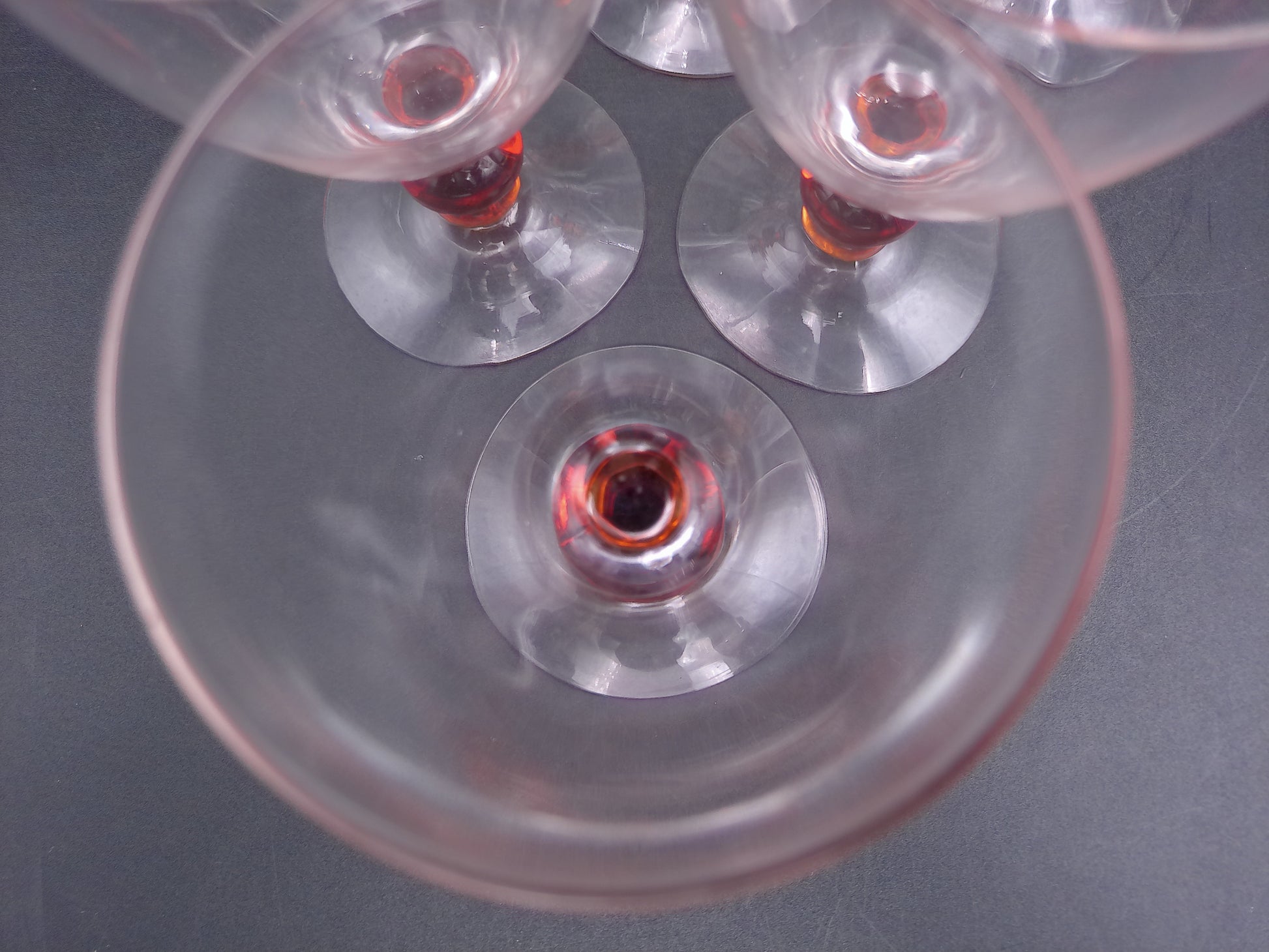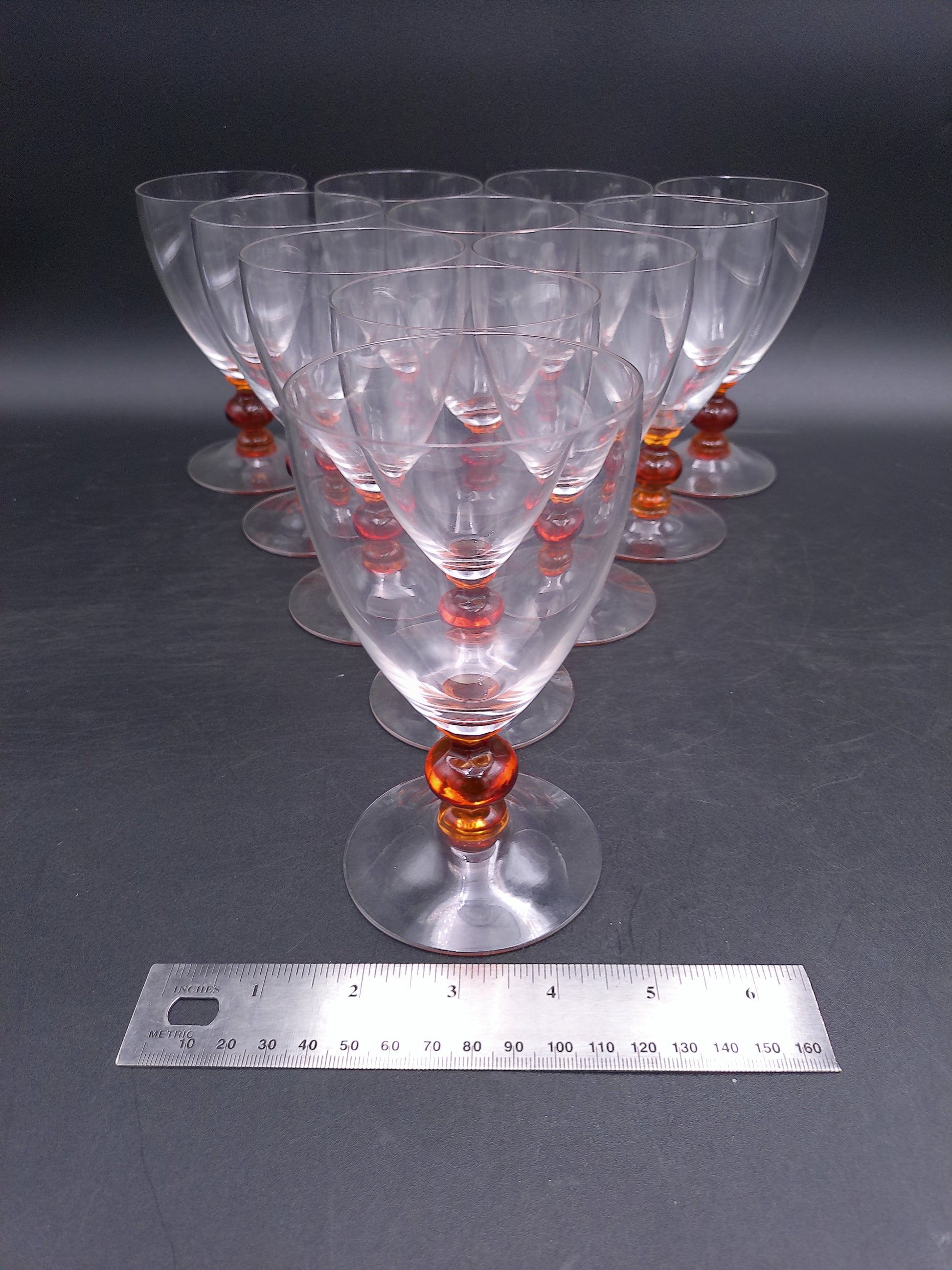 Set of 11 Clear Crystal Top Amber Ball Stem Wine or Water Glasses