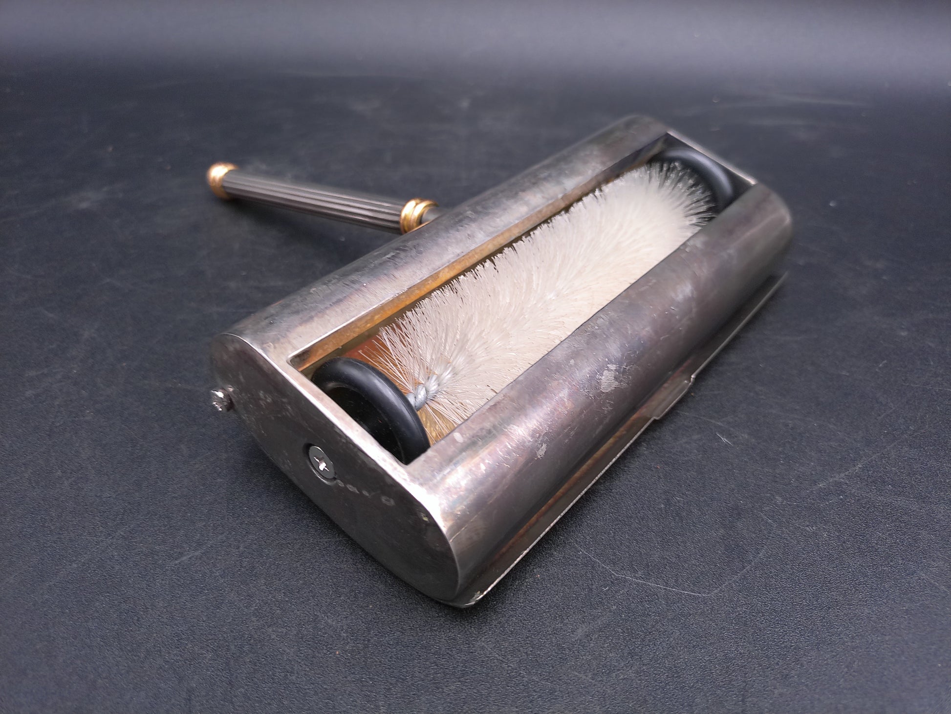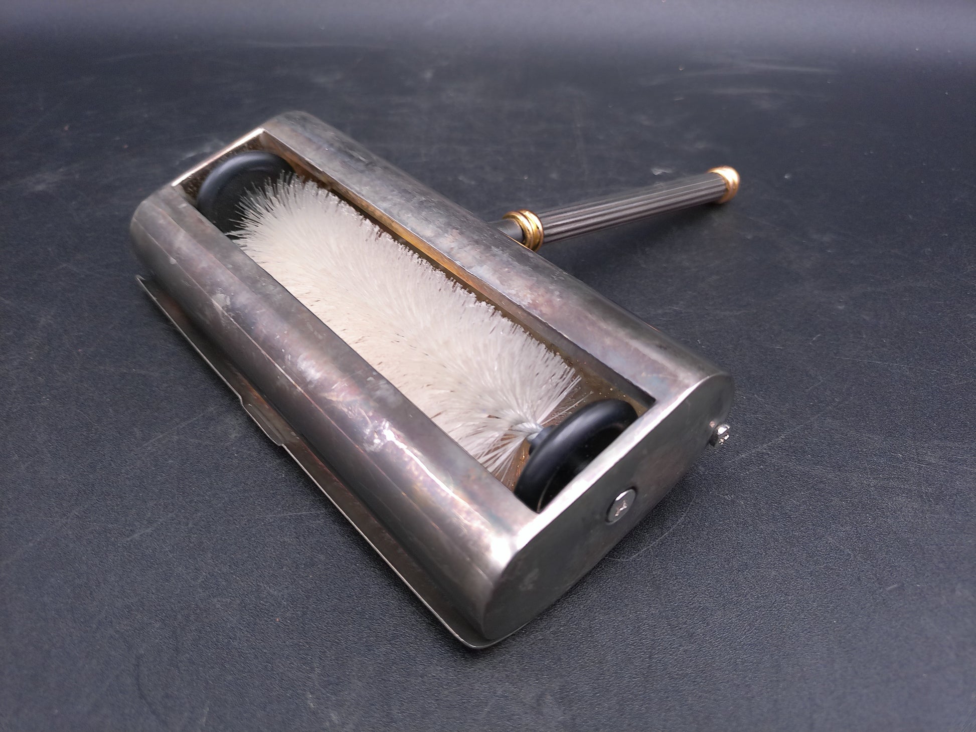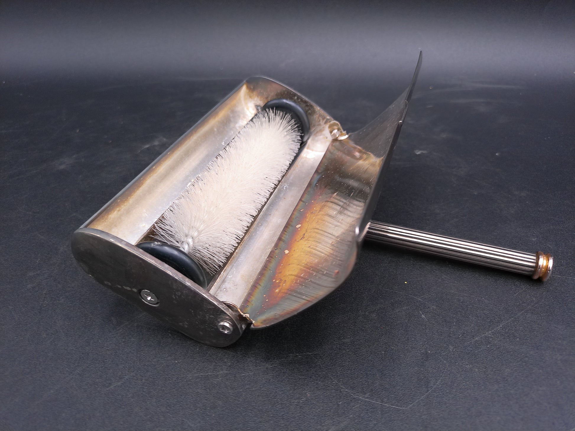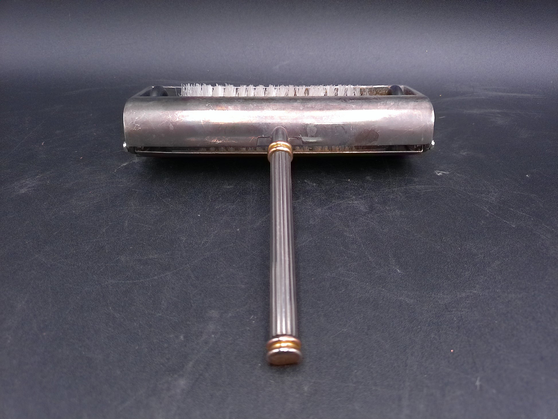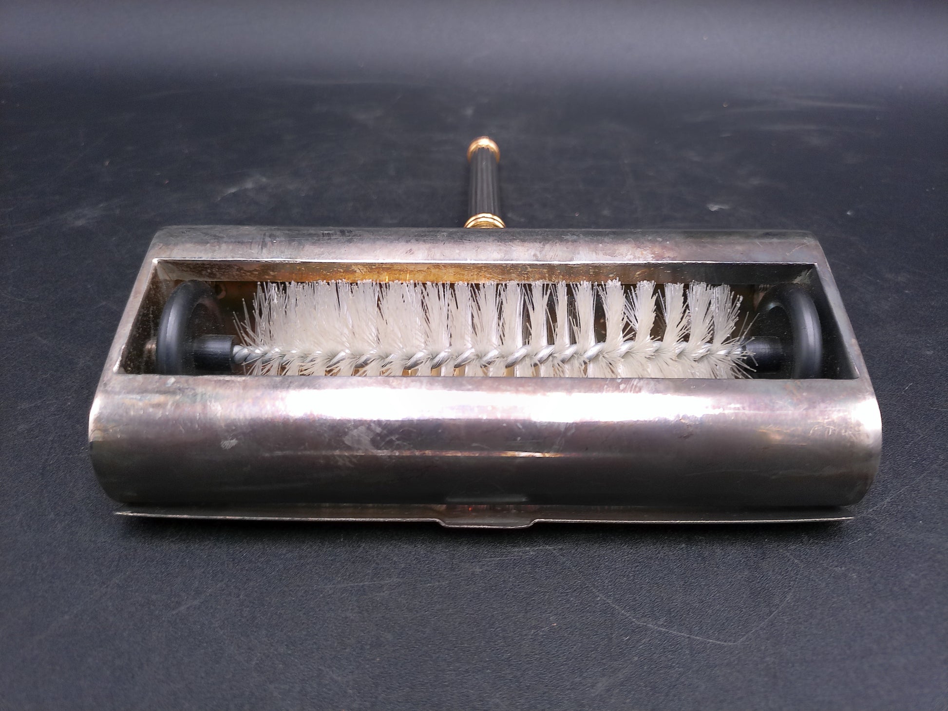 French Vintage Silver Plated Table Crumb Brush Sweeper Gold Tip Handle