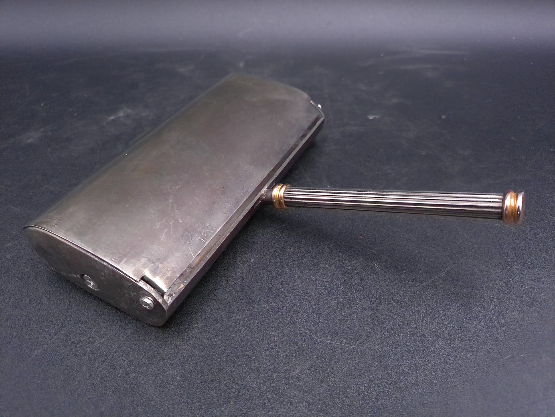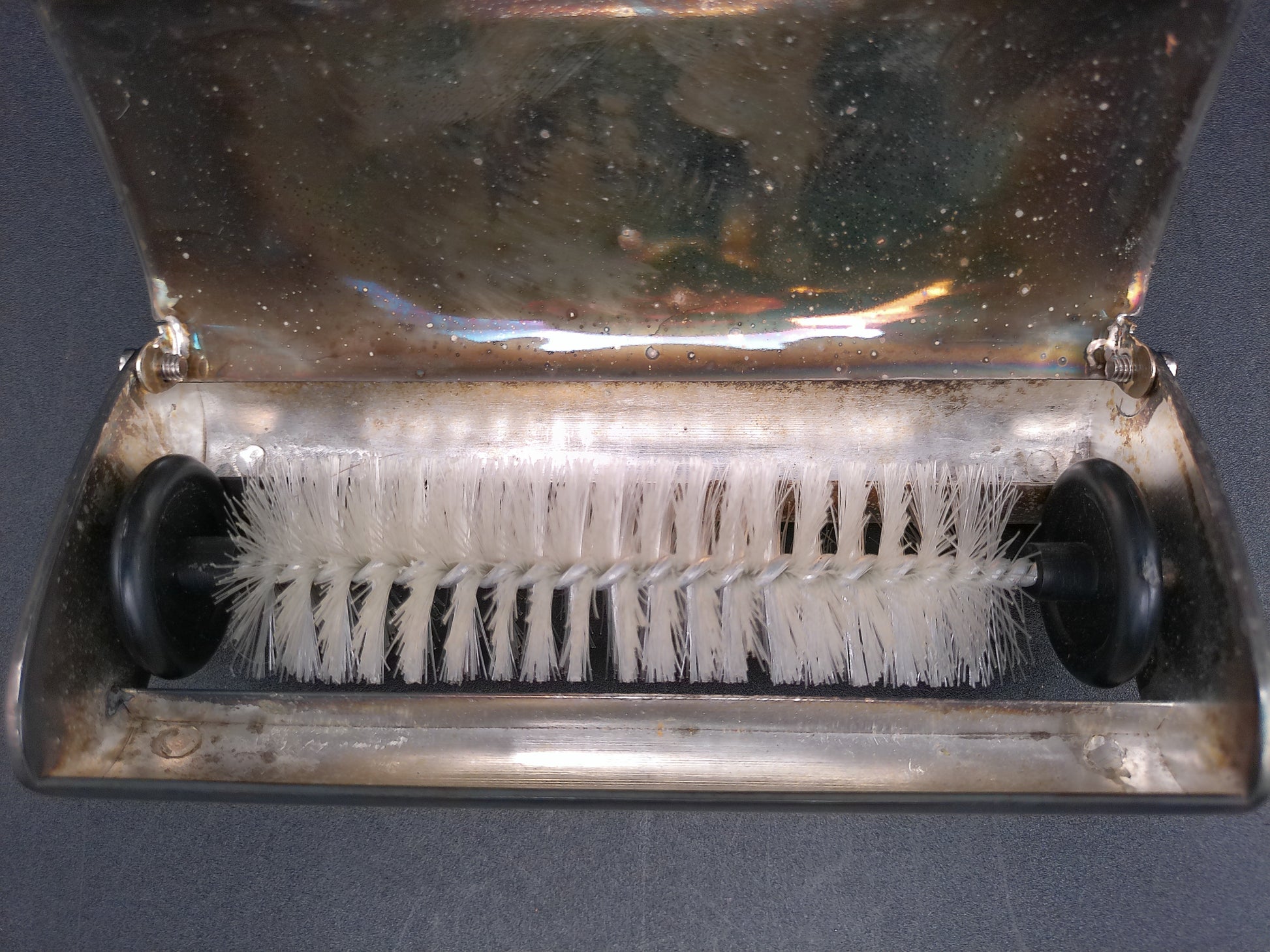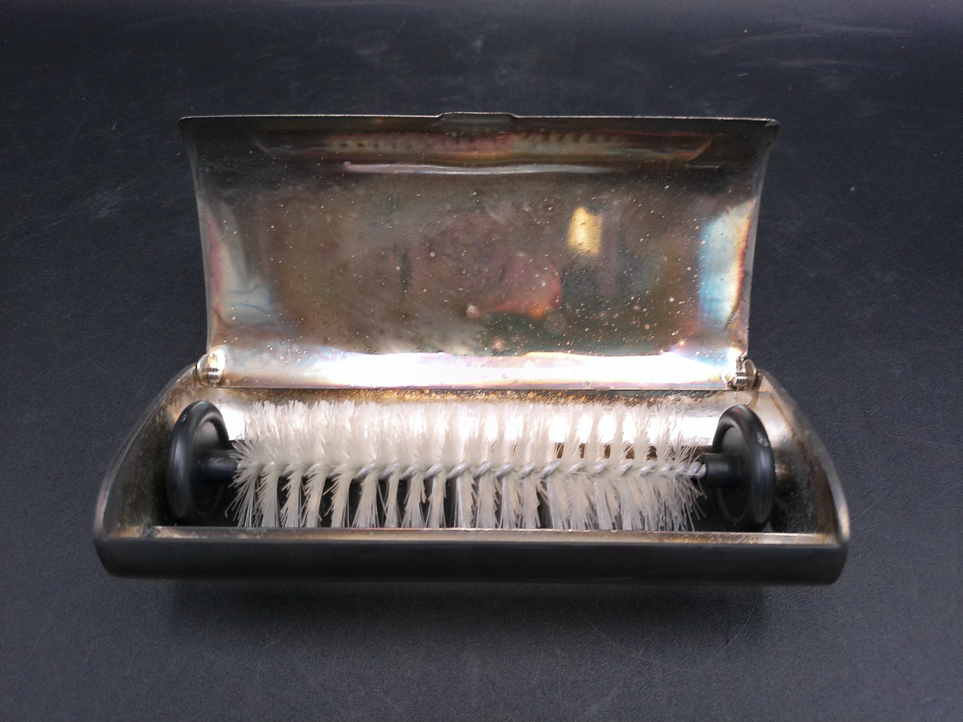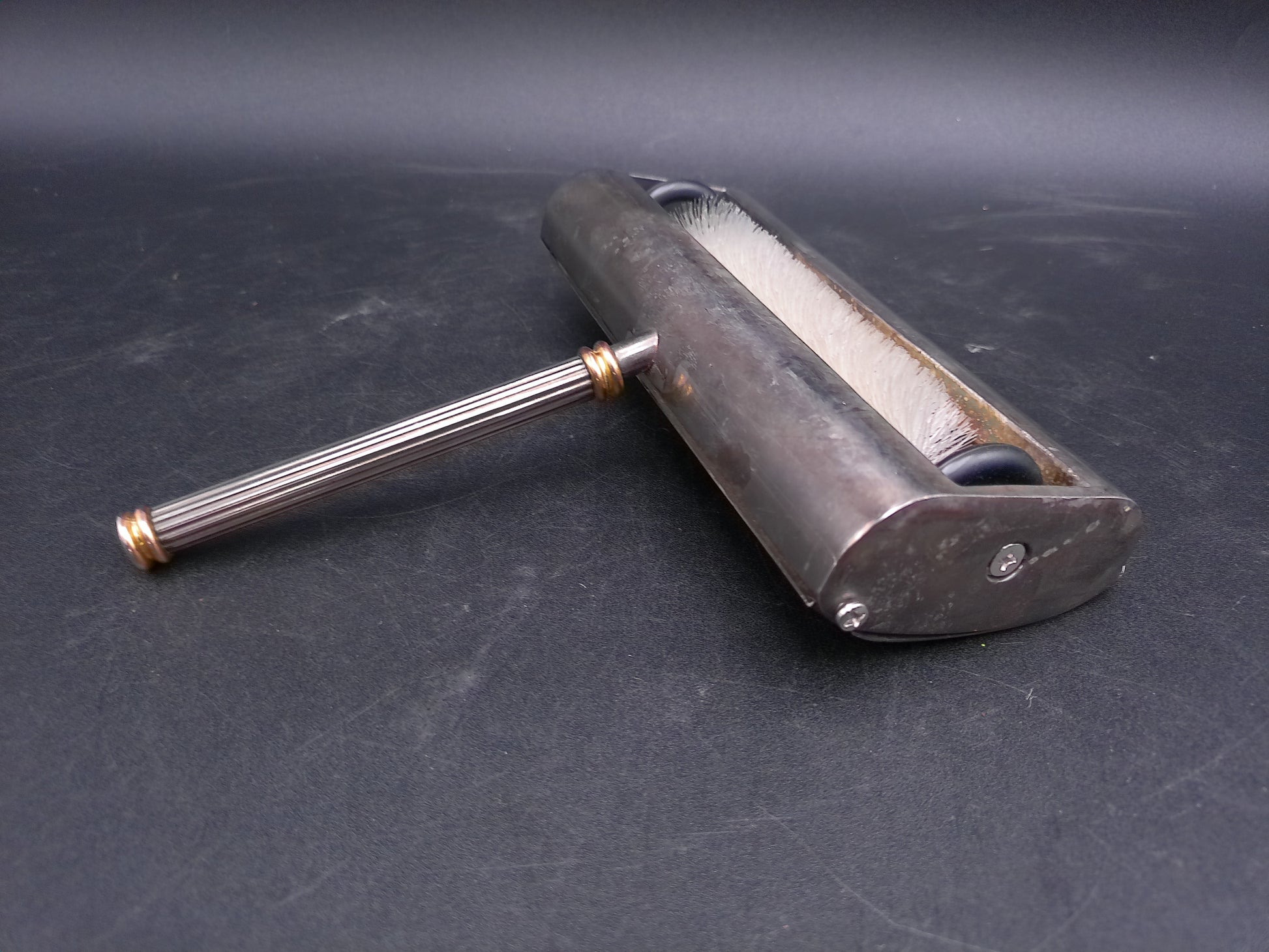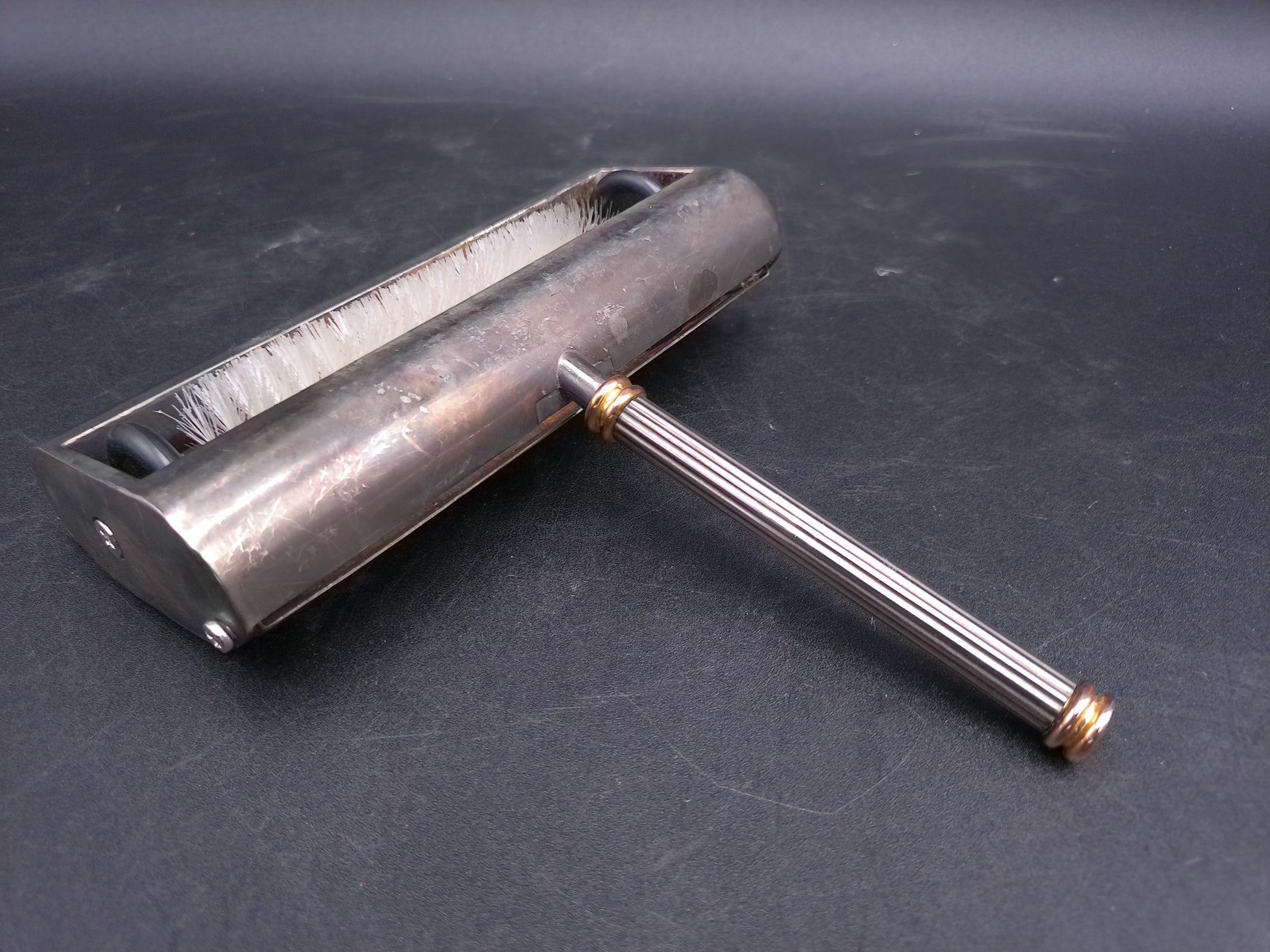 French Vintage Silver Plated Table Crumb Brush Sweeper Gold Tip Handle