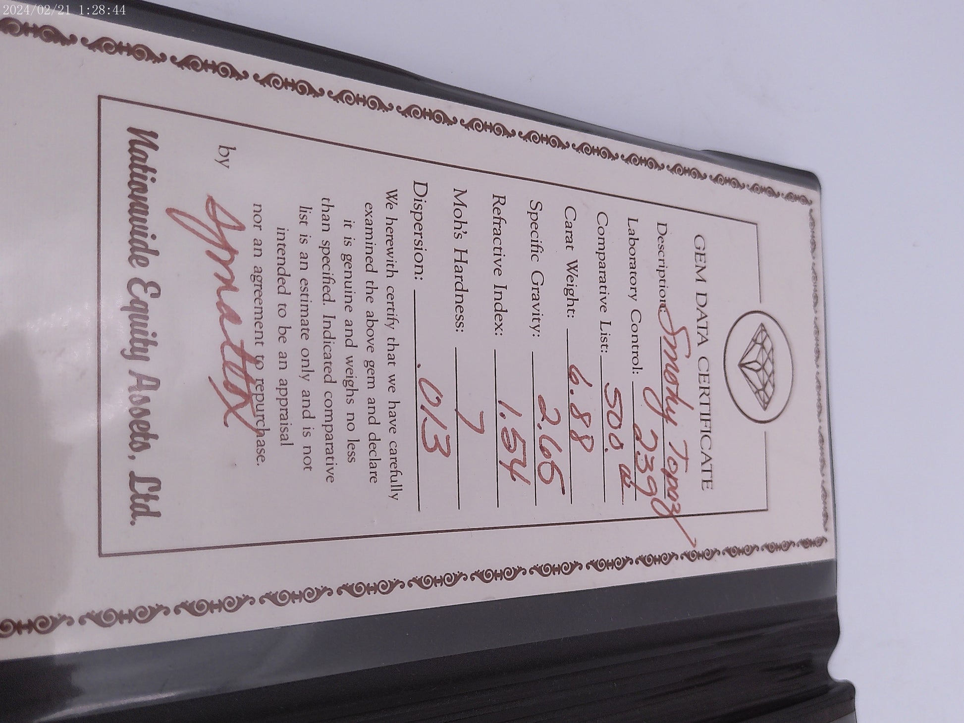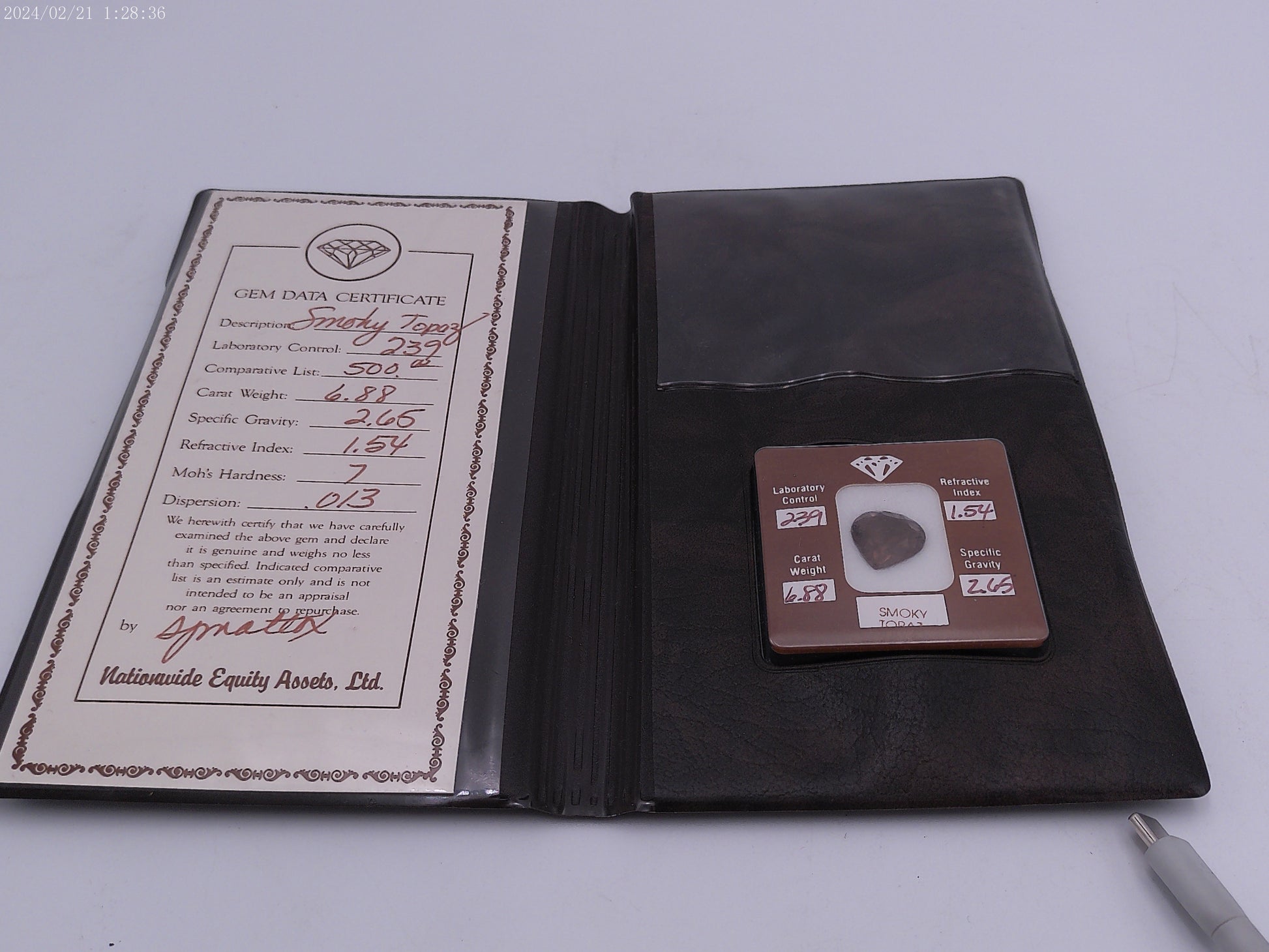 Smoky Topaz Stone 6.88 Carat in Jewelery Box Vintage