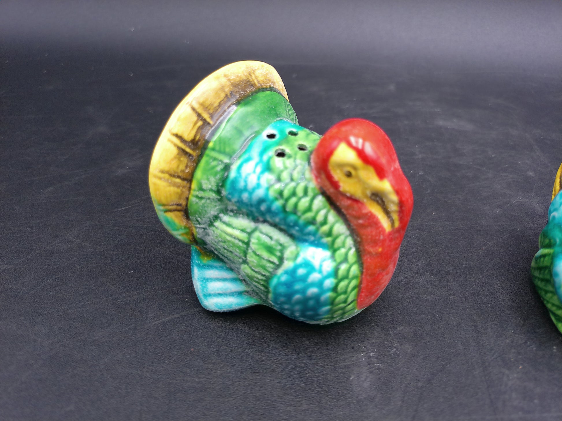 Salt & Pepper Shakers 1940's Tom Turkey and Hen with Tray