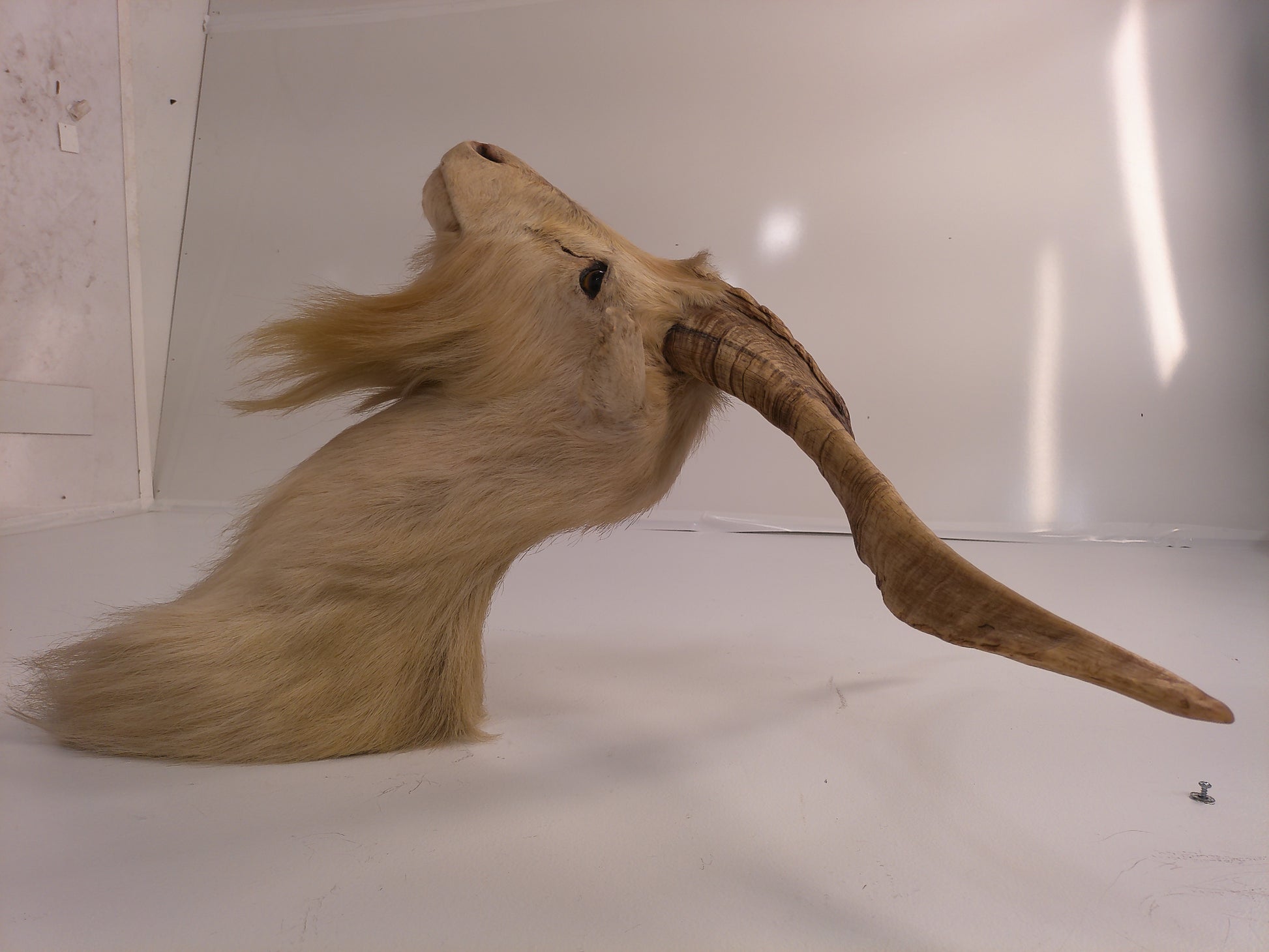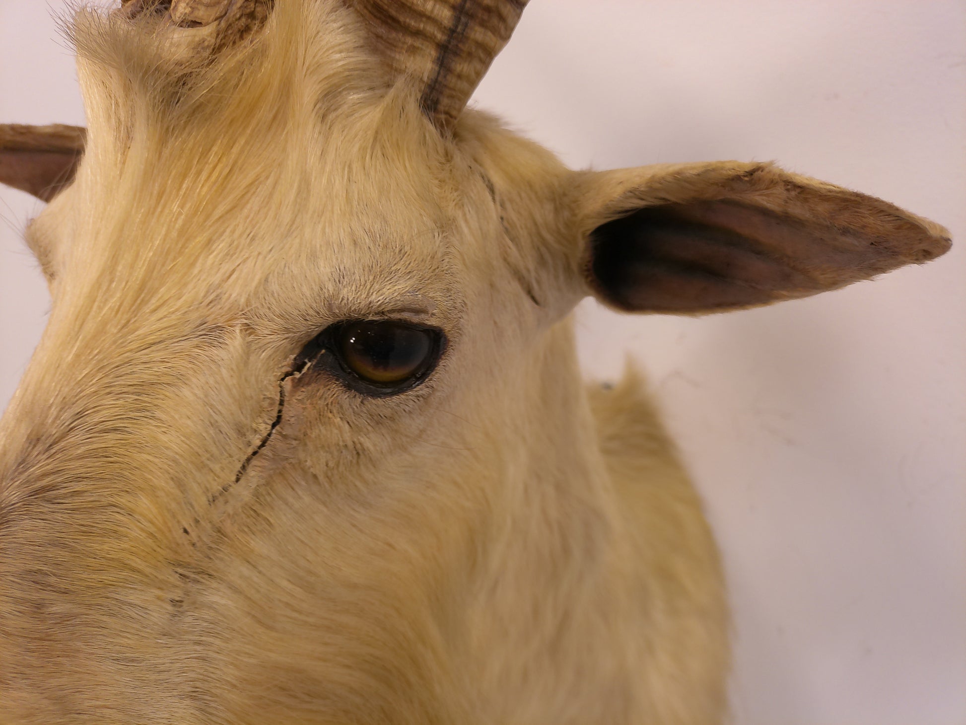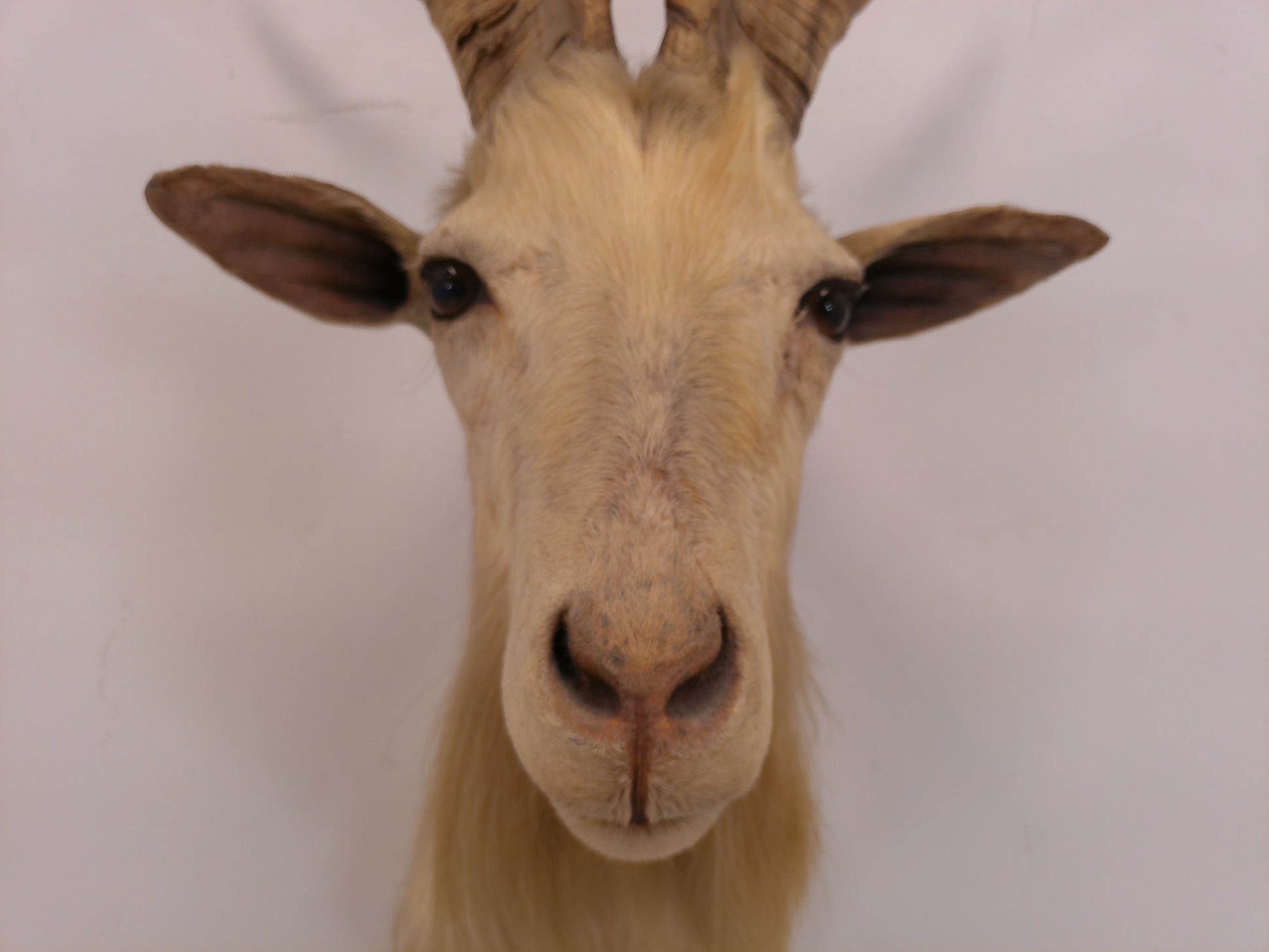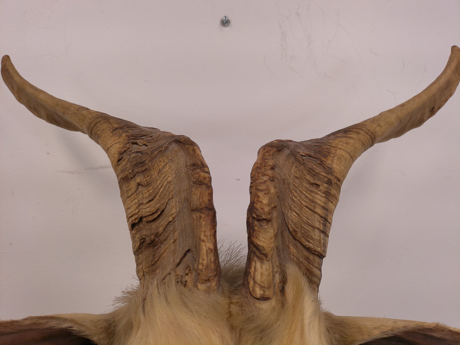 This expertly crafted taxidermy mount features the beautiful and rare White Catalina Goat, preserved in a striking shoulder mount. Made with precision and attention to detail, this unique piece is sure to be a conversation starter and a stunning addition to any home or office. A must-have for collectors and nature enthusiasts alike.