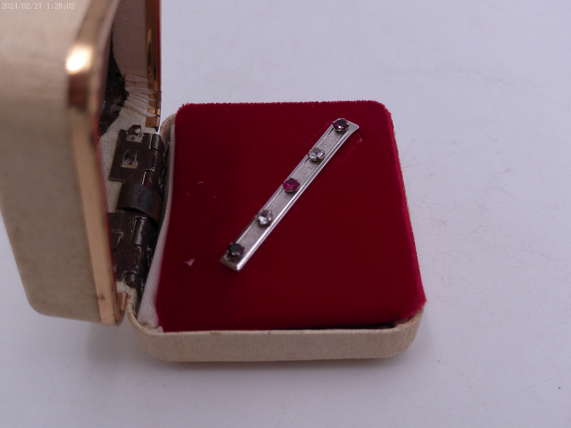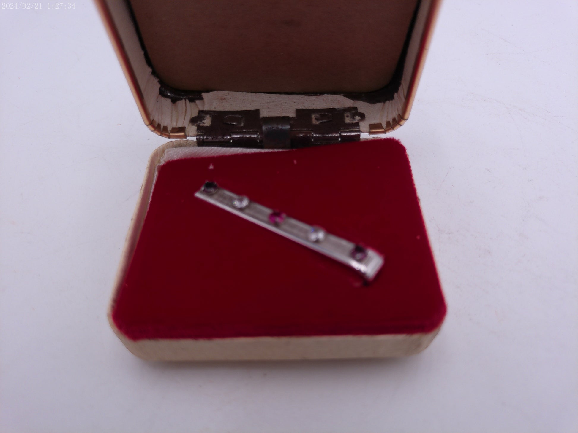 This vintage tie clip features a sterling silver jewel mount, adding a touch of sophistication to any outfit. The durable silver material ensures long-lasting use, while the classic design is timeless and versatile. Elevate your style with this refined accessory.