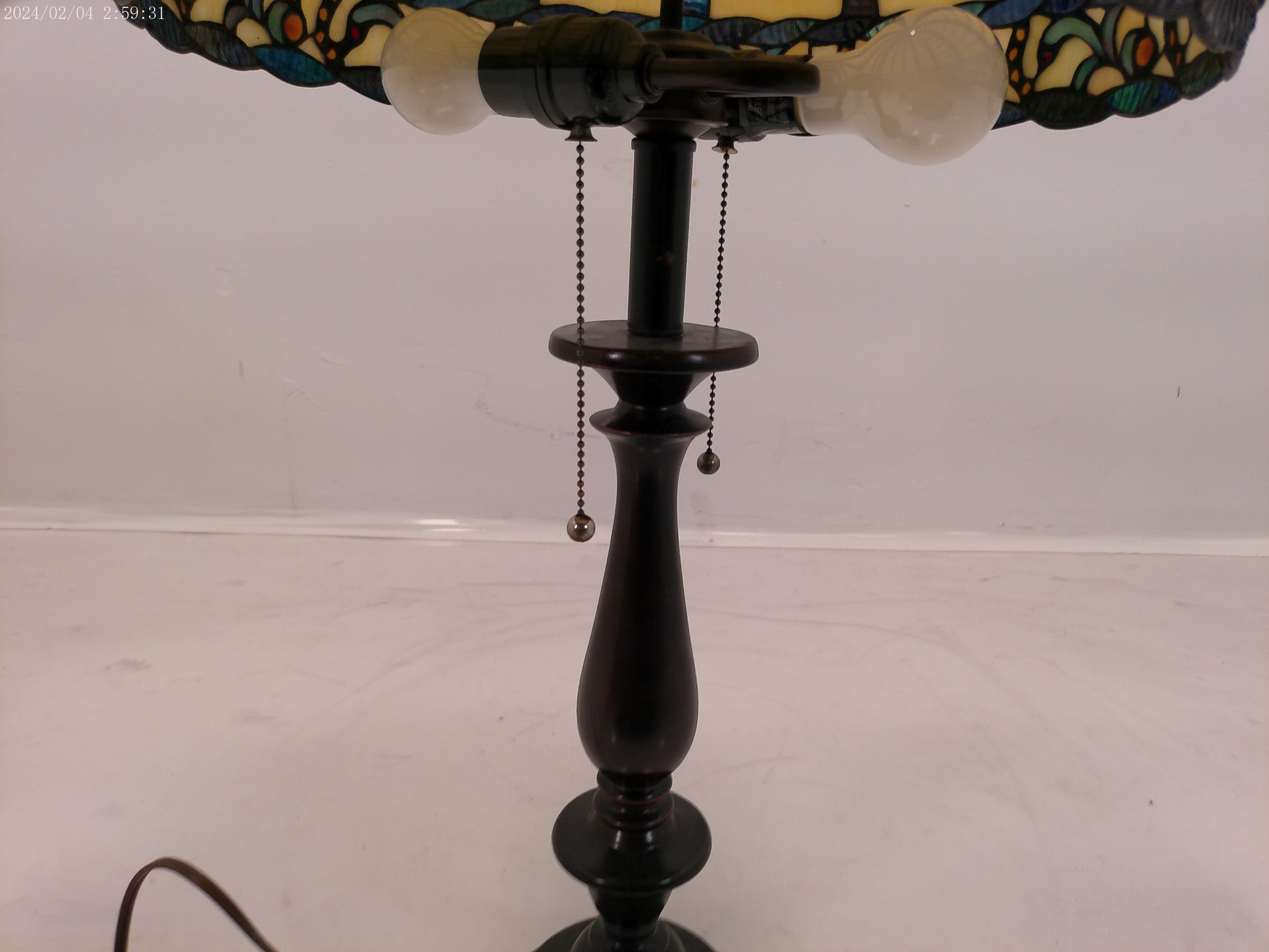 tiffany style stained glass bronze wood lamp Vintage