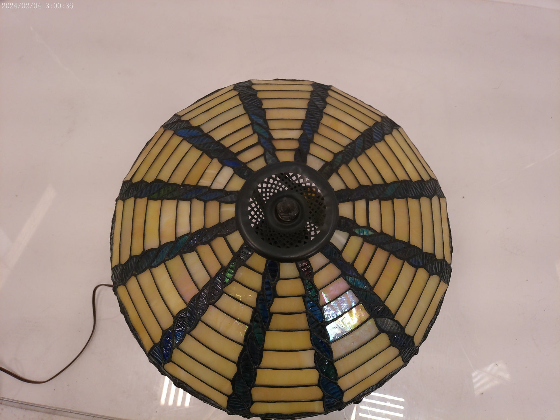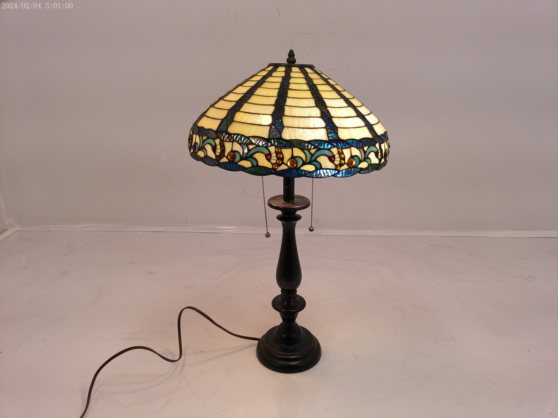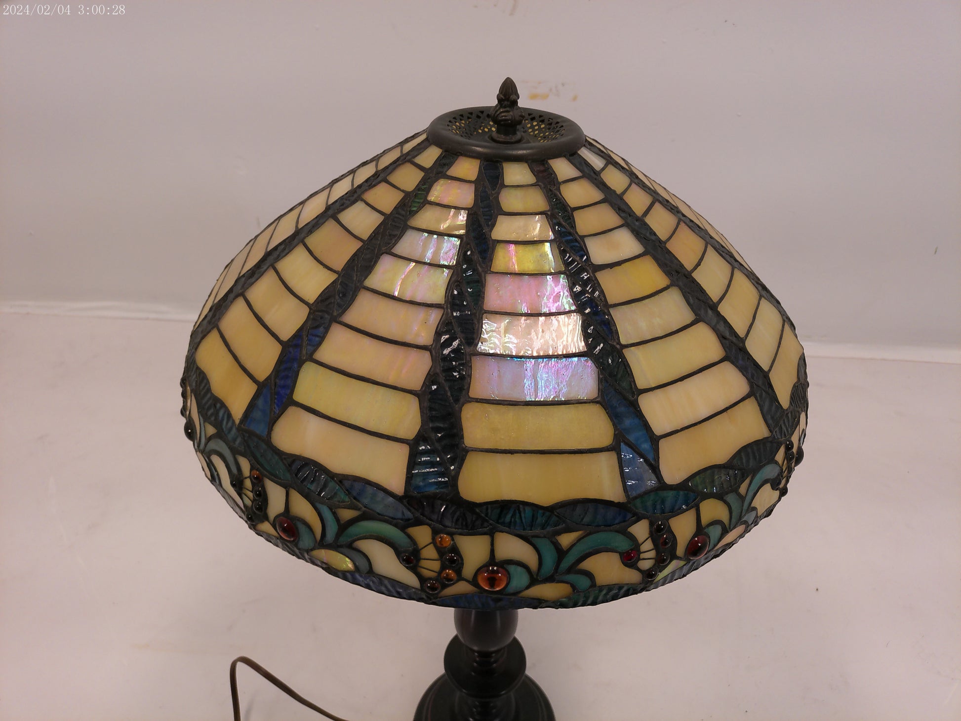 This lamp is crafted with traditional tiffany style stained glass and a durable bronze base, making it a timeless addition to any home decor. With its vintage design, it adds a touch of elegance and sophistication to any room. Plus, the stained glass creates a warm and inviting atmosphere, perfect for relaxation or entertaining guests.