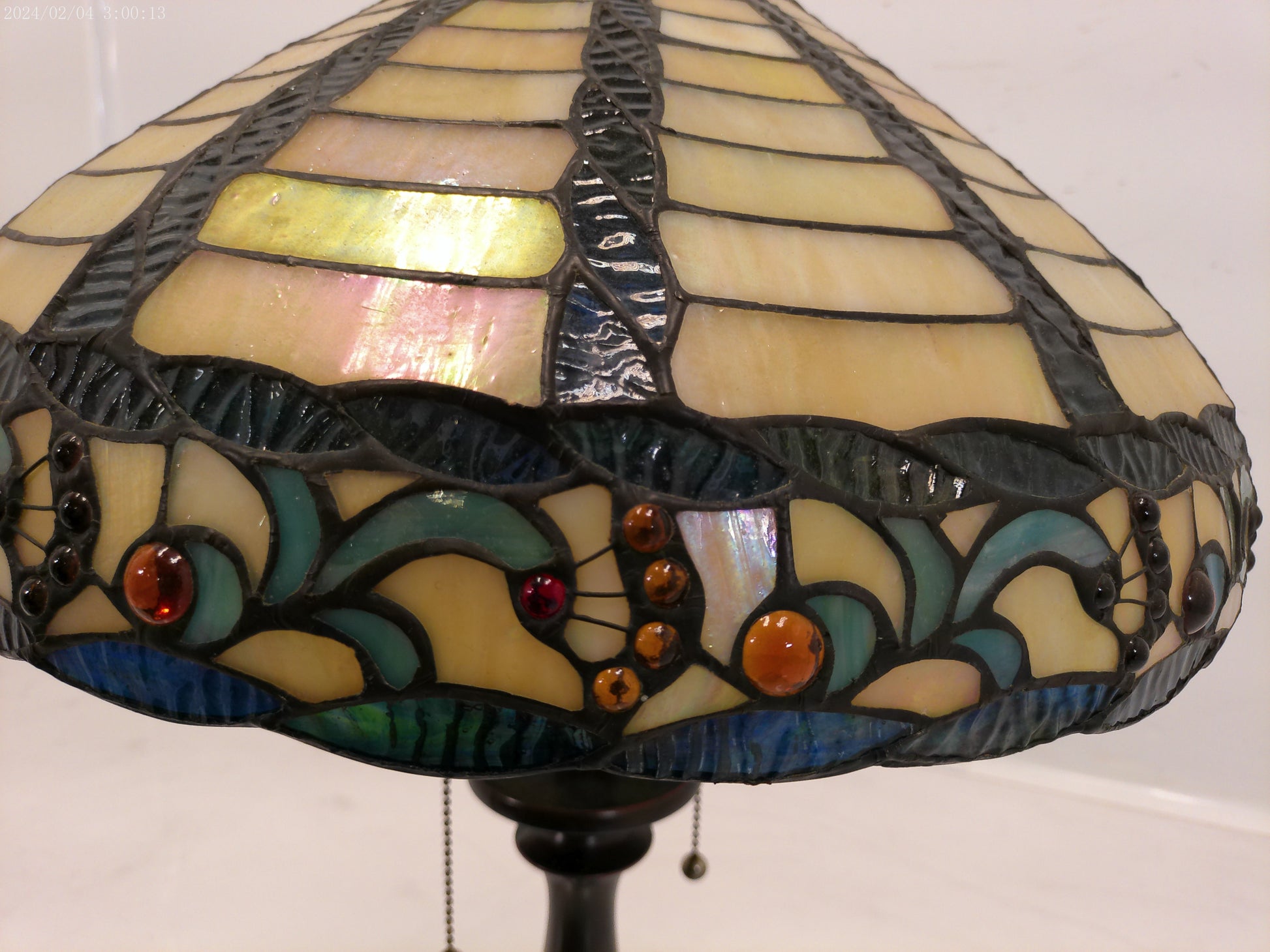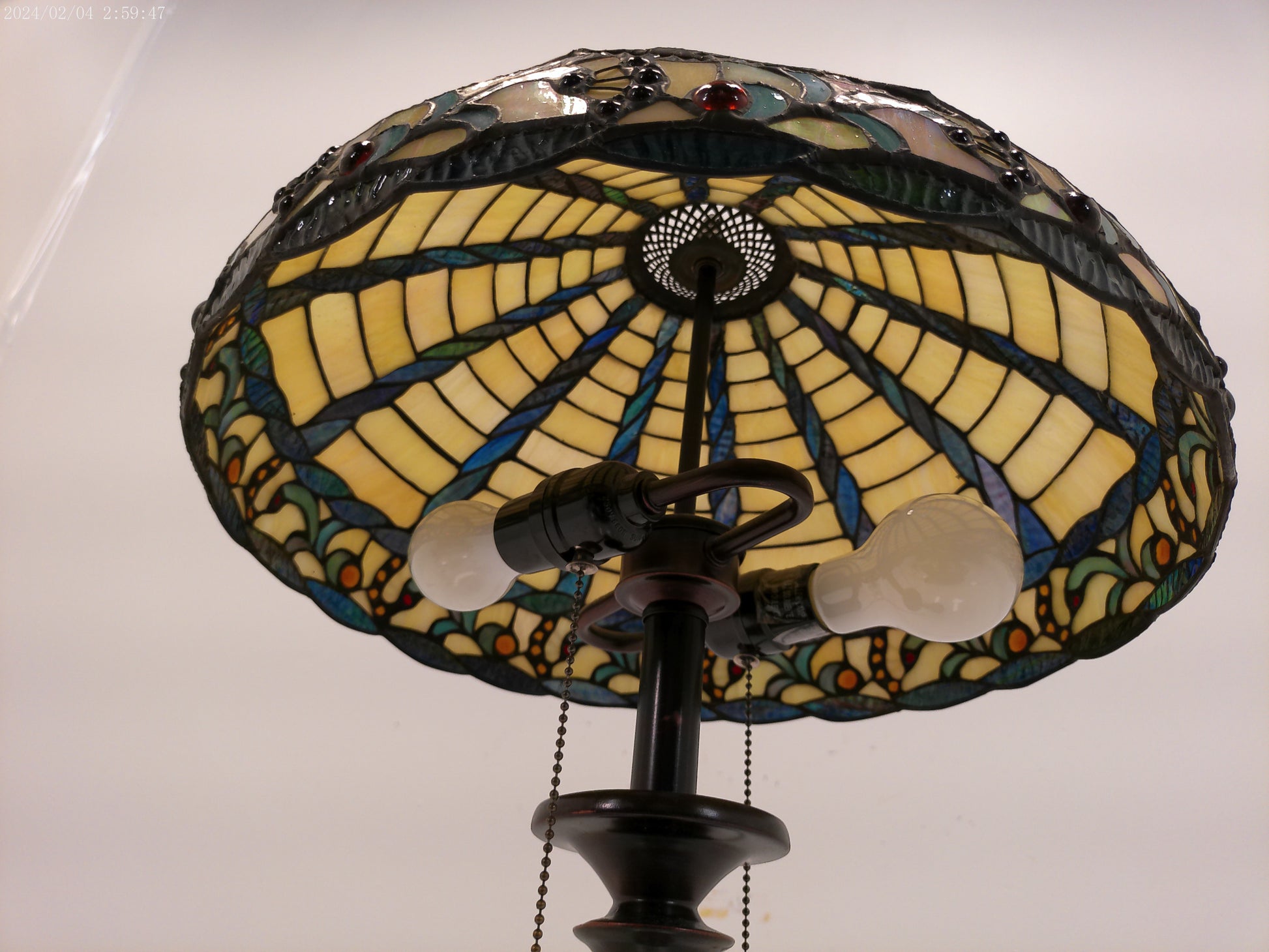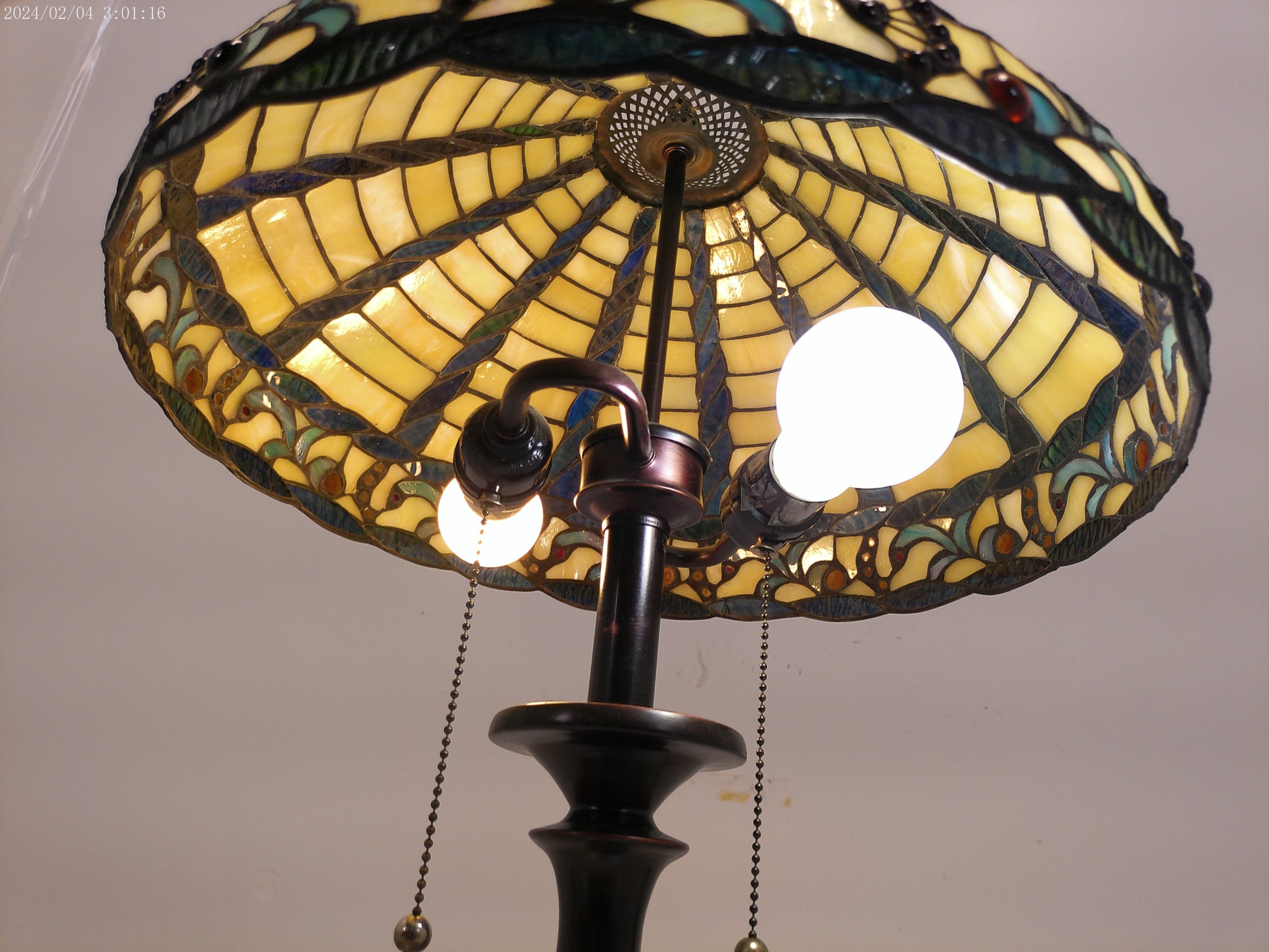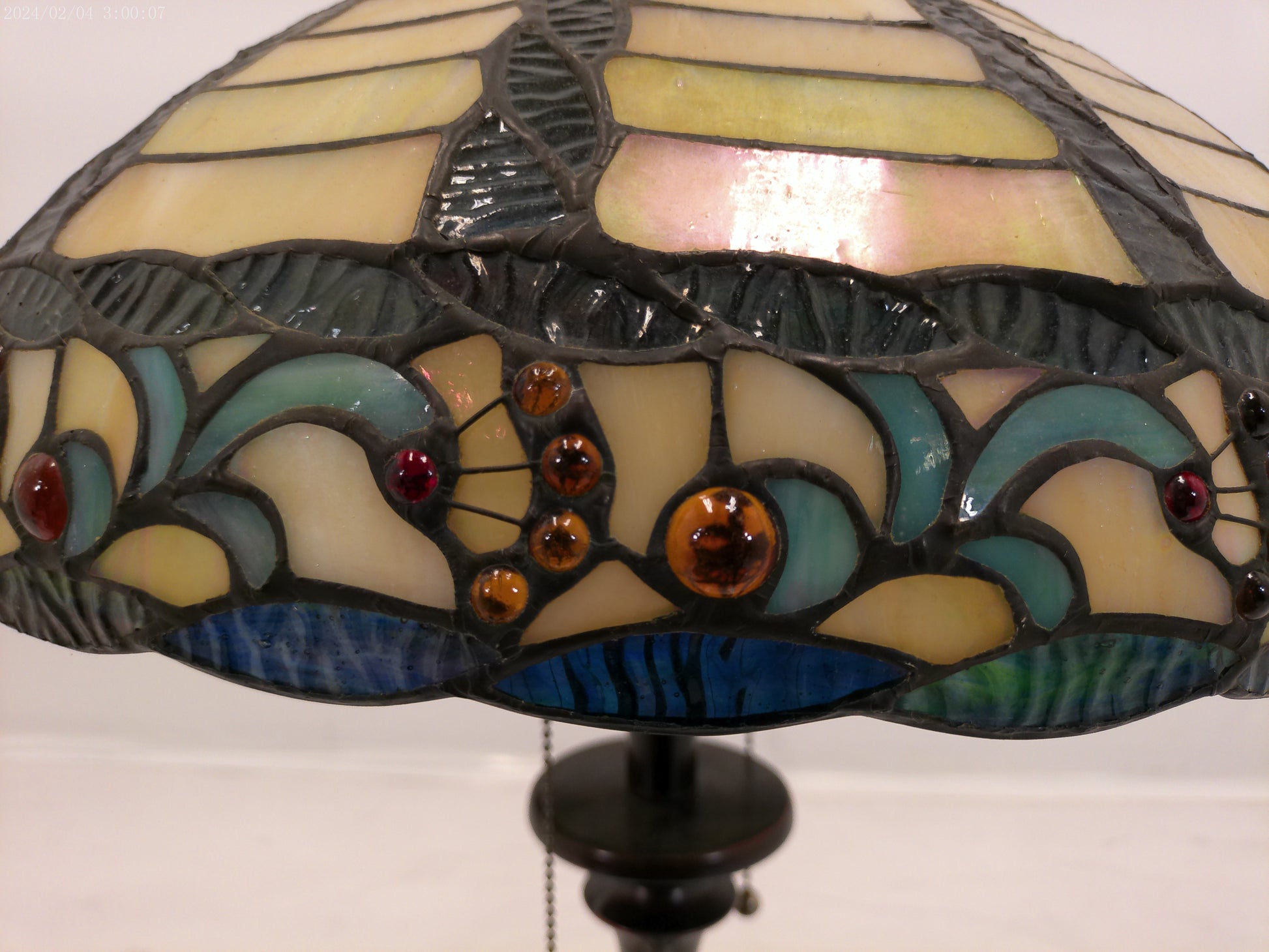 This lamp is crafted with traditional tiffany style stained glass and a durable bronze base, making it a timeless addition to any home decor. With its vintage design, it adds a touch of elegance and sophistication to any room. Plus, the stained glass creates a warm and inviting atmosphere, perfect for relaxation or entertaining guests.