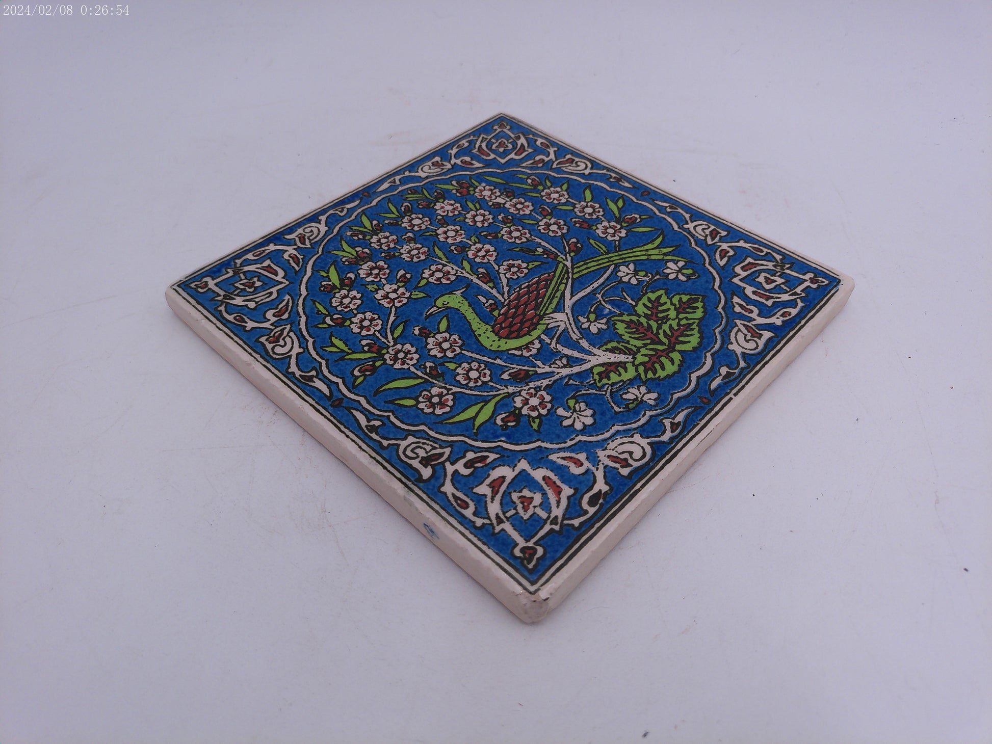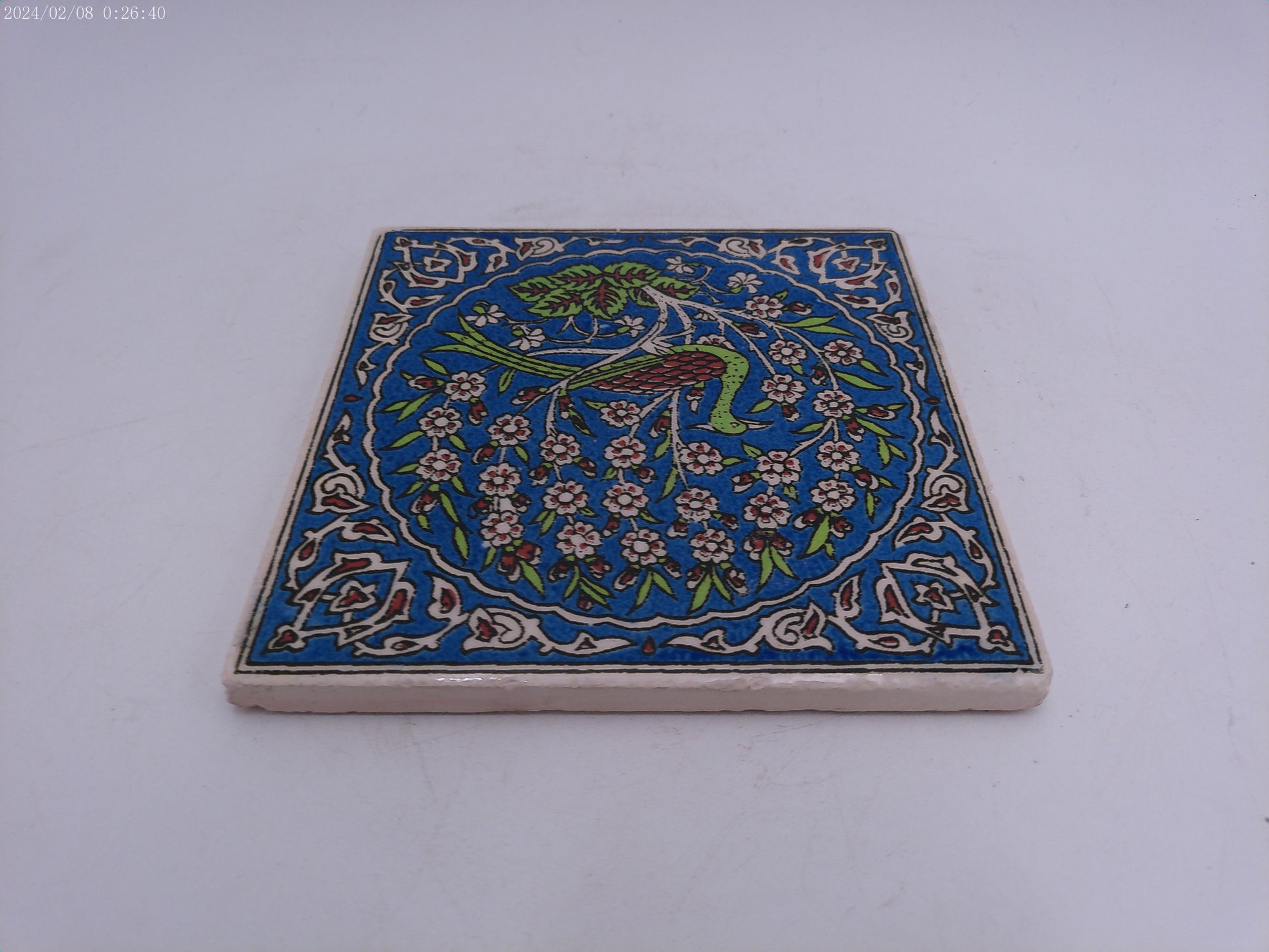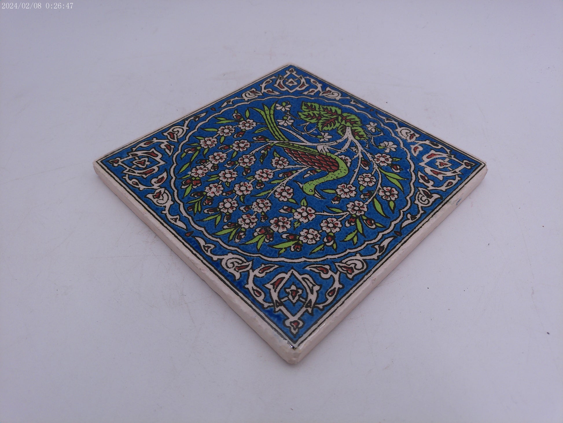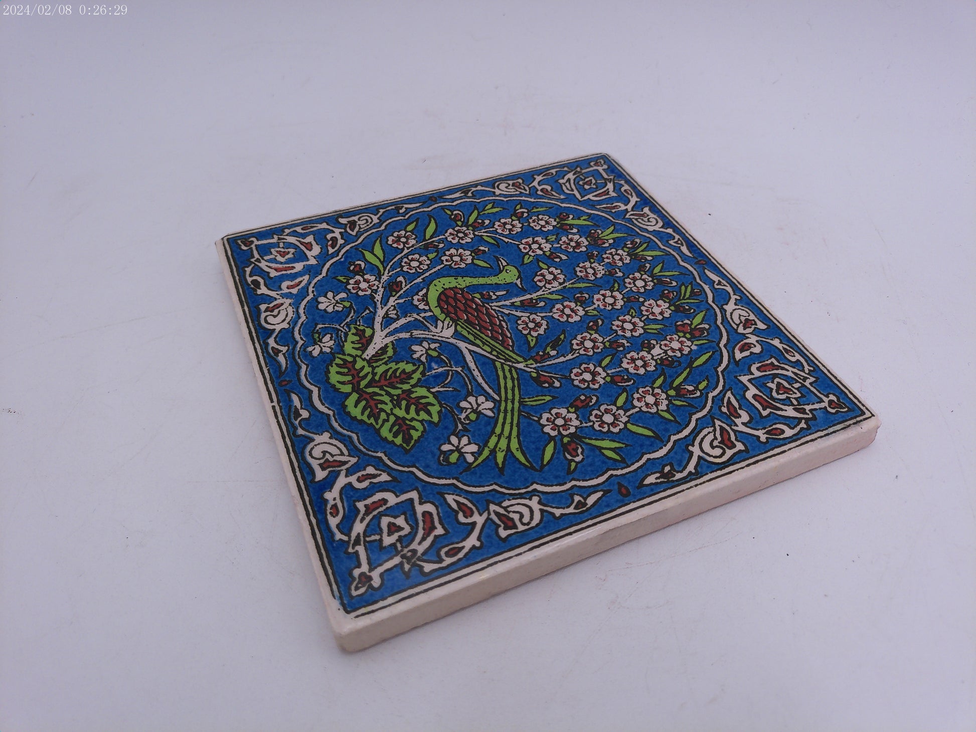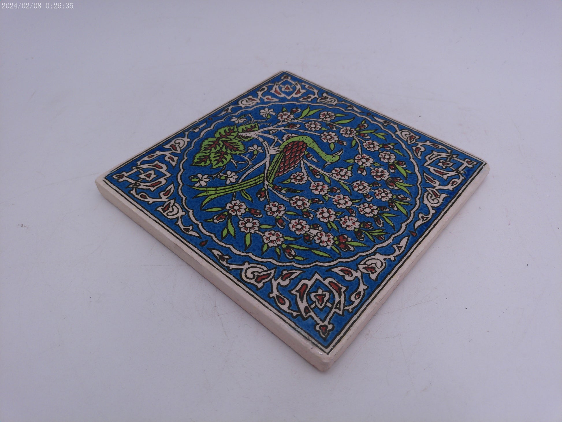 Discover the exquisite beauty of Turkish Kutahya Tek Cini Ceramic Peacock and Floral Tile. Made with precision and expertise, this tile features intricate peacock and floral designs that will add a touch of elegance to any space. Experience the rich culture and craftsmanship of Turkey in your home with this stunning tile.