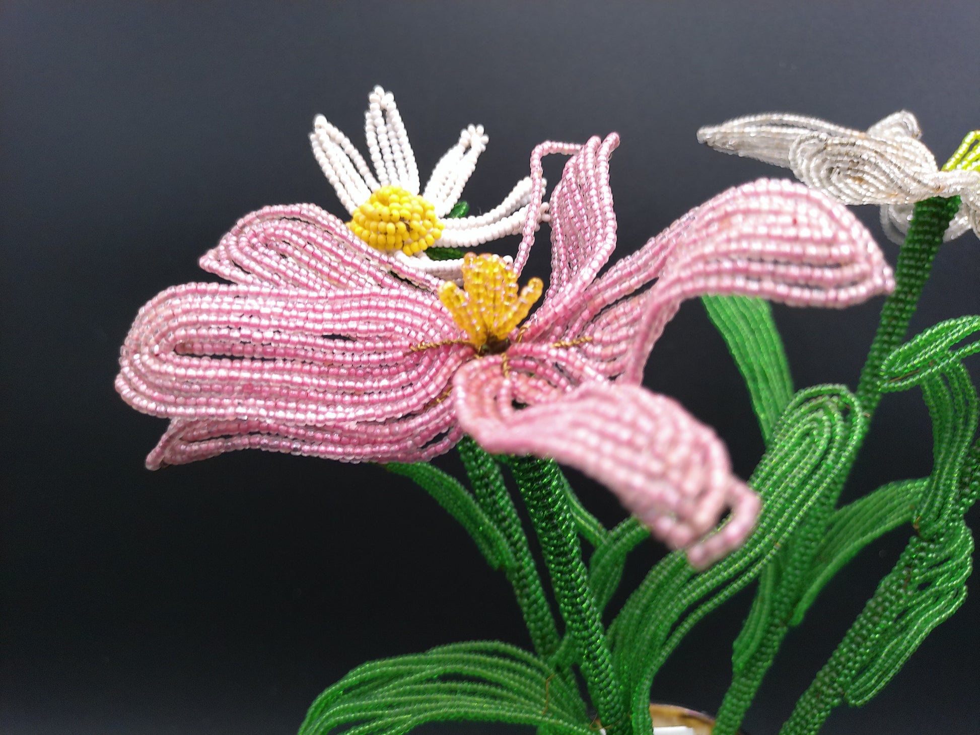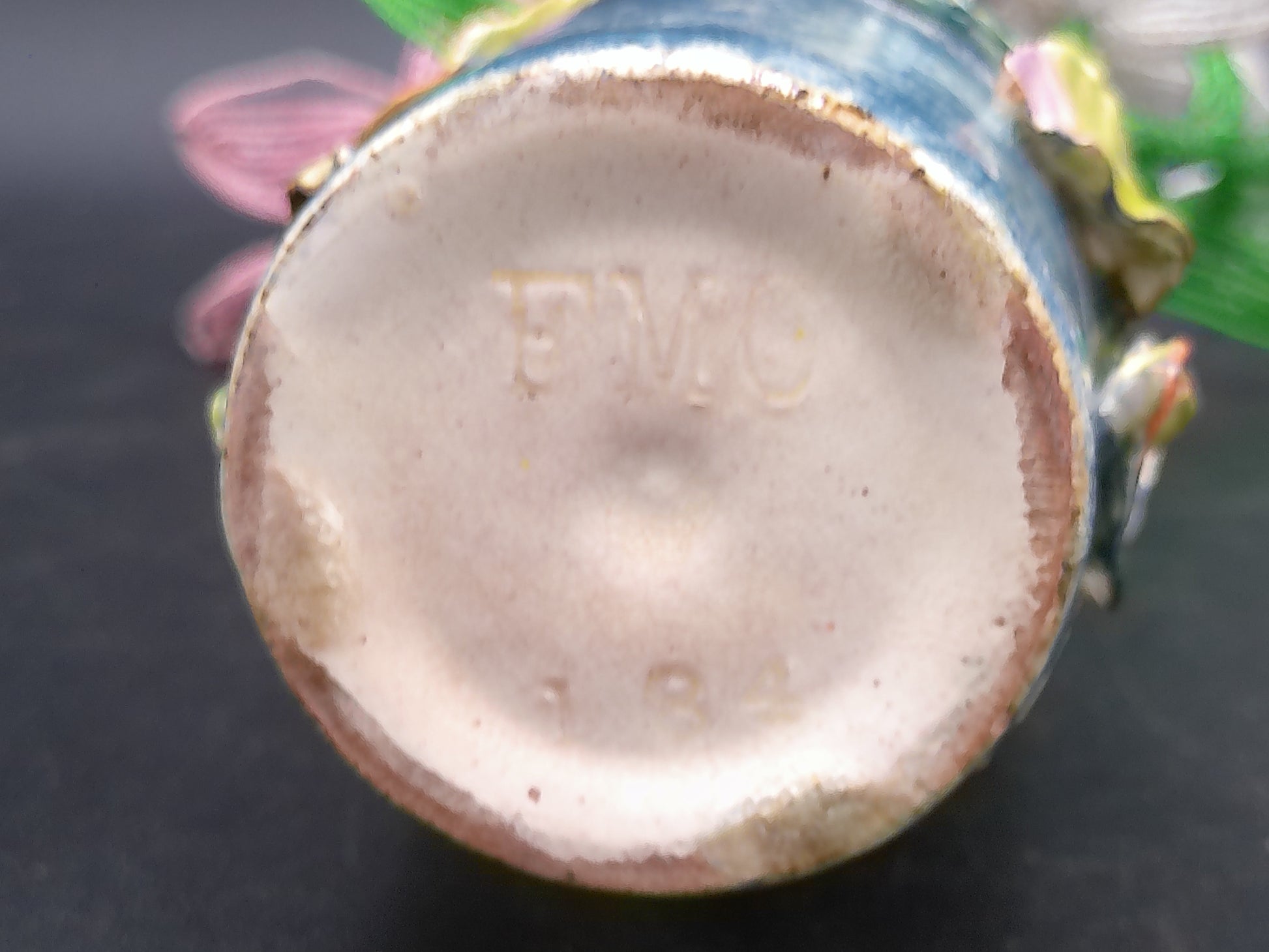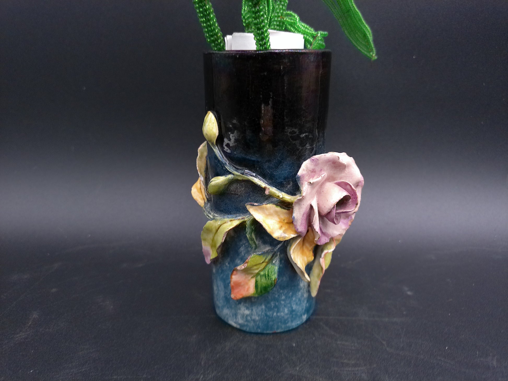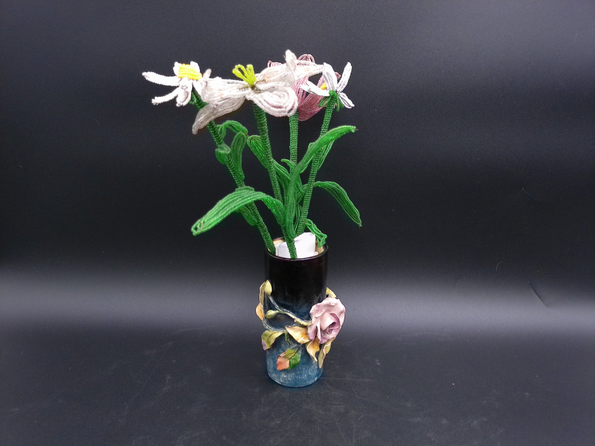 Vase Decorative Vintage Rare with Hand made Flowers Bottom read FMC 184