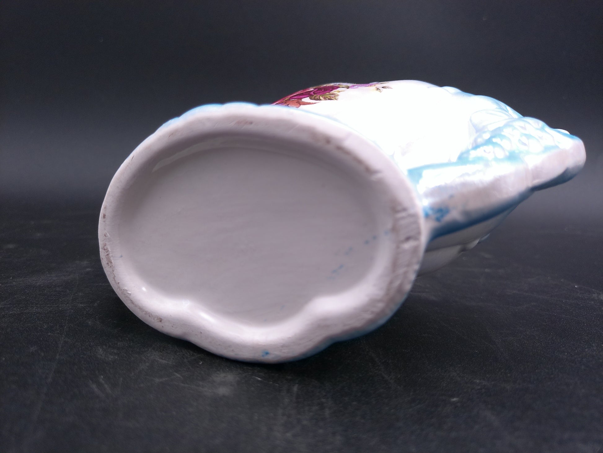 Vase Dual Handle Decorative Floral design baby blue color Vintage