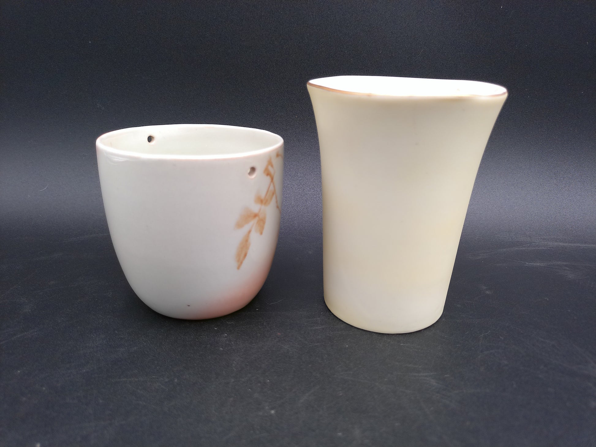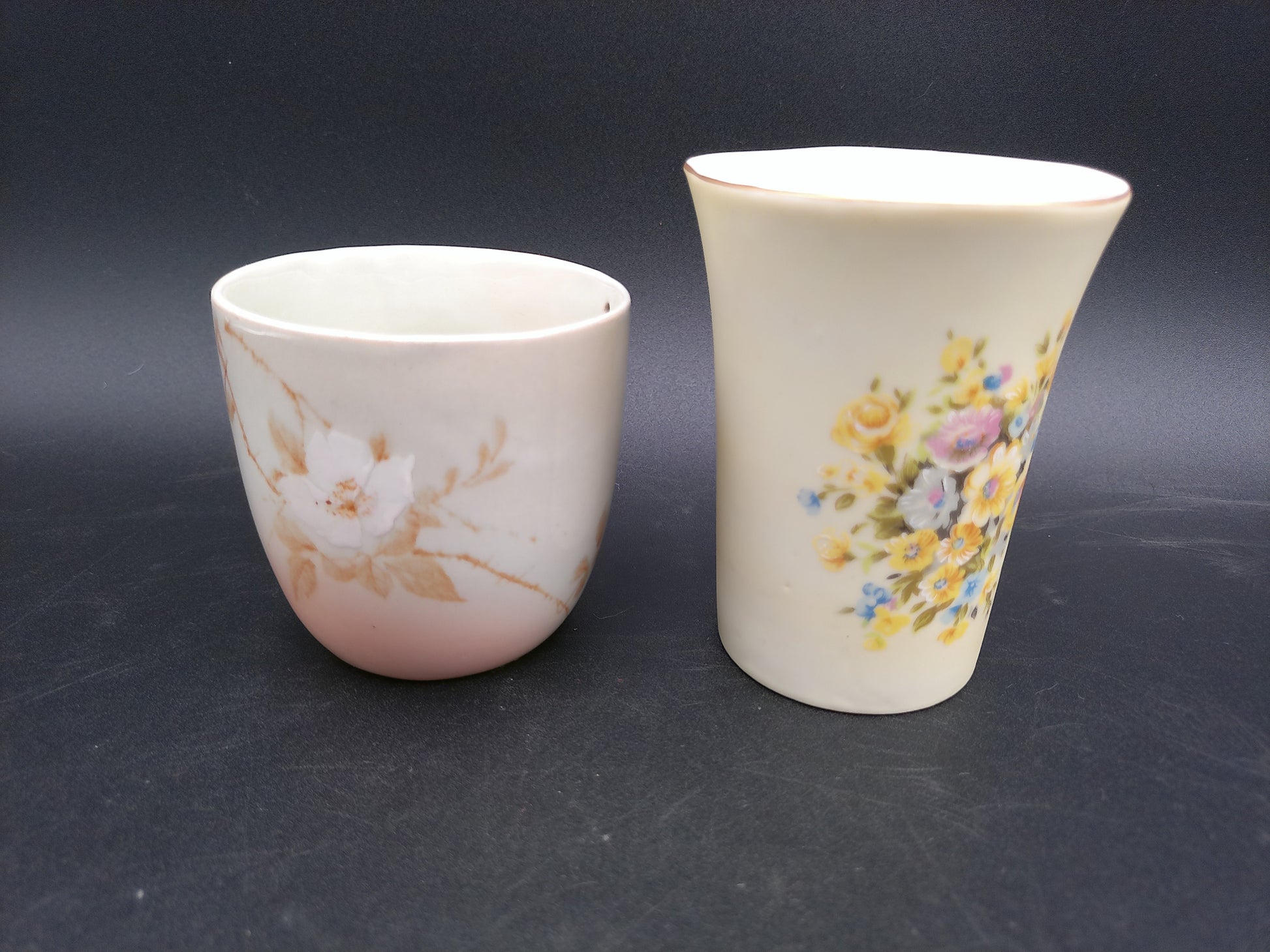 Lefton Pale Green Yellow Flowered Vanity Drinking Cup and Cherry Blossom Cup