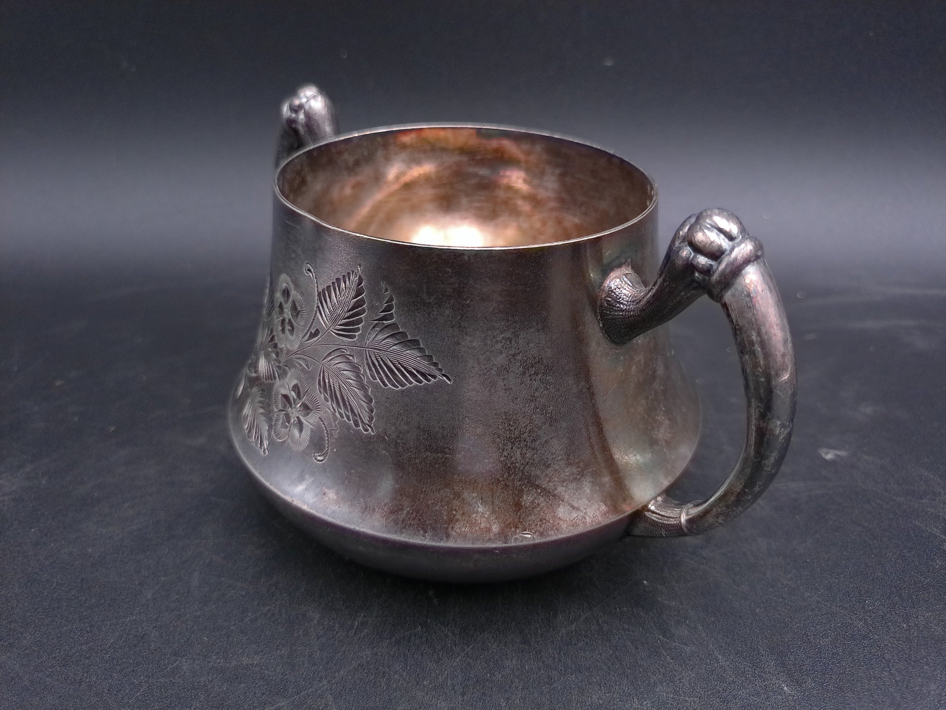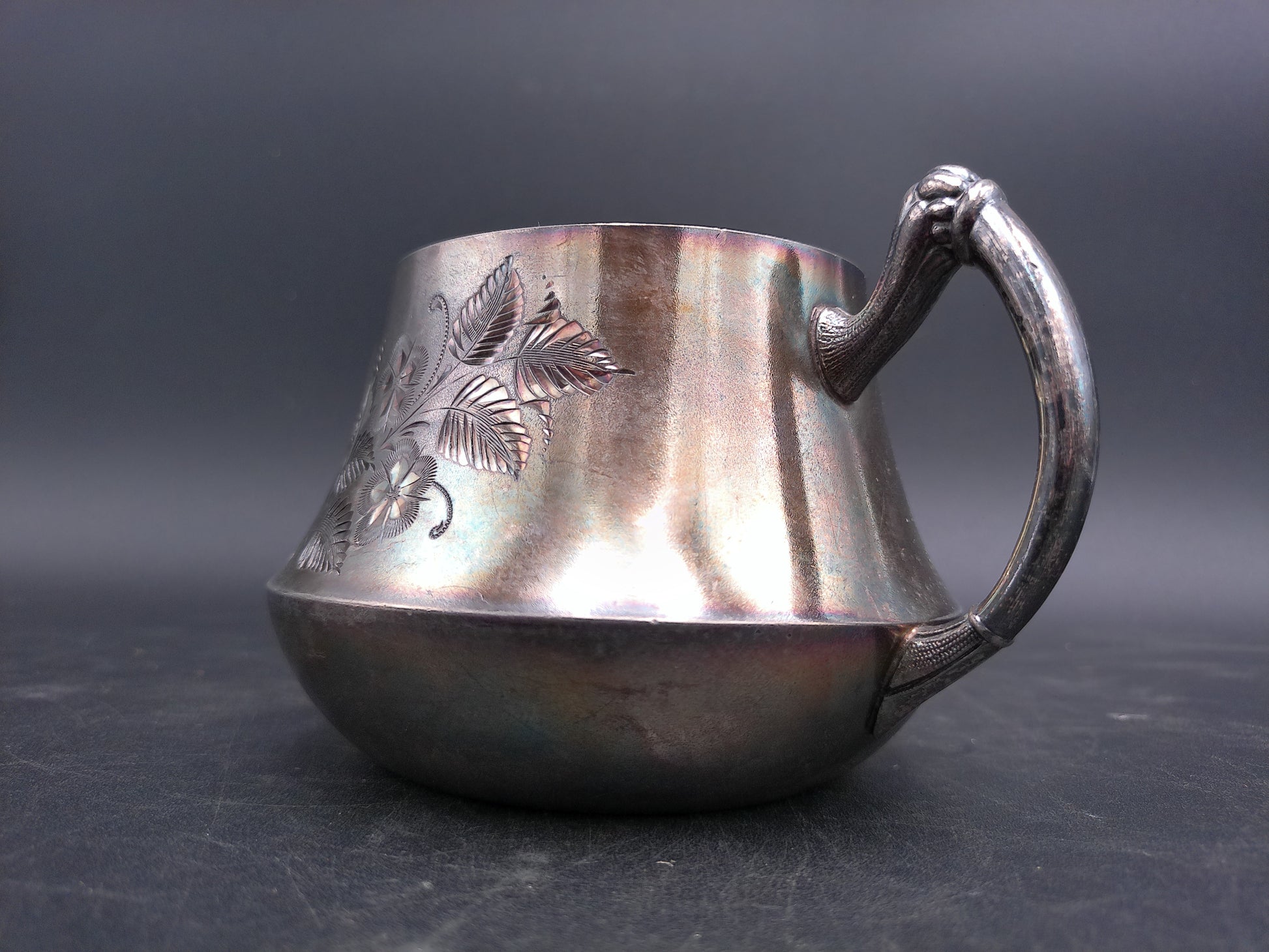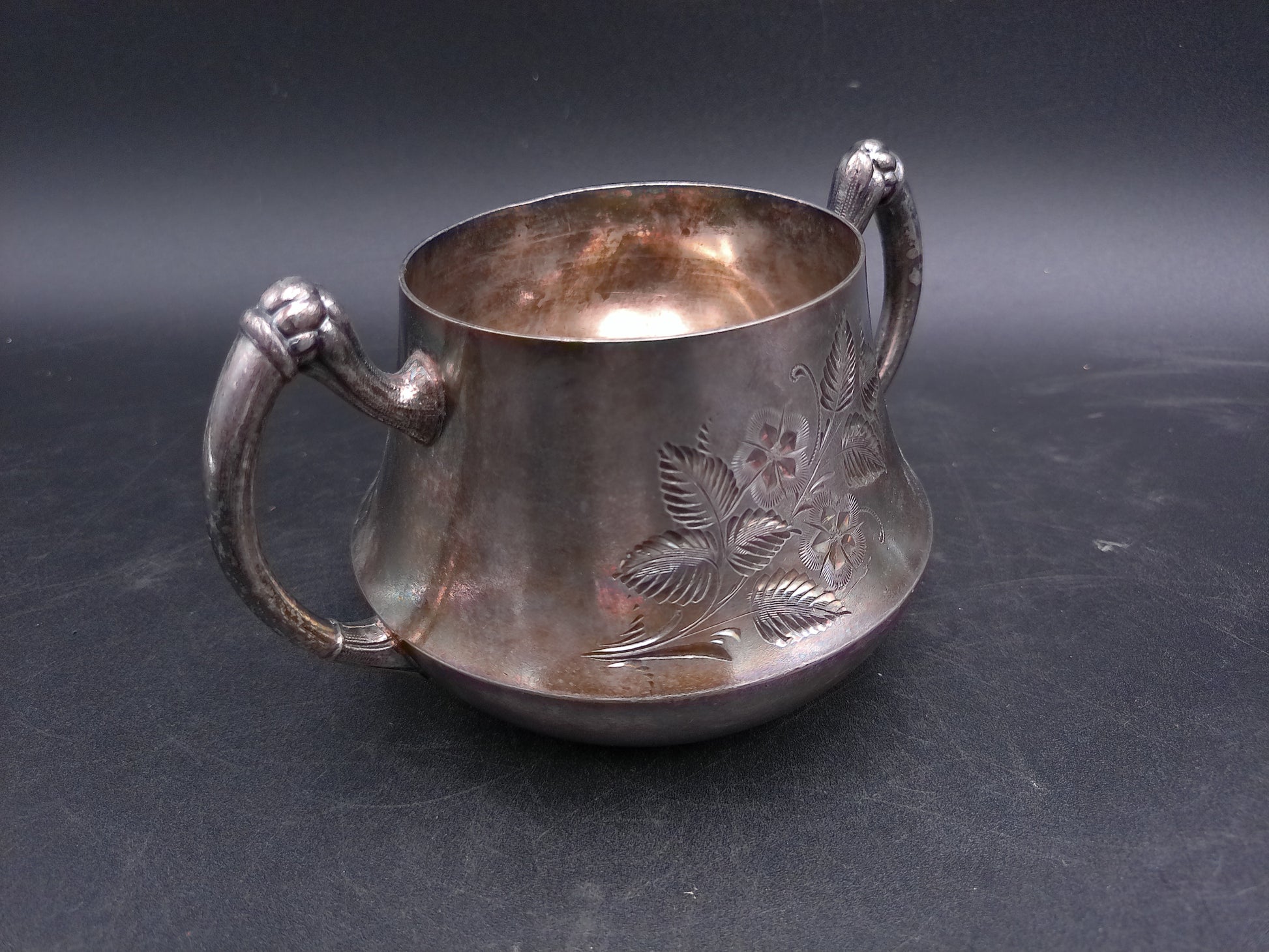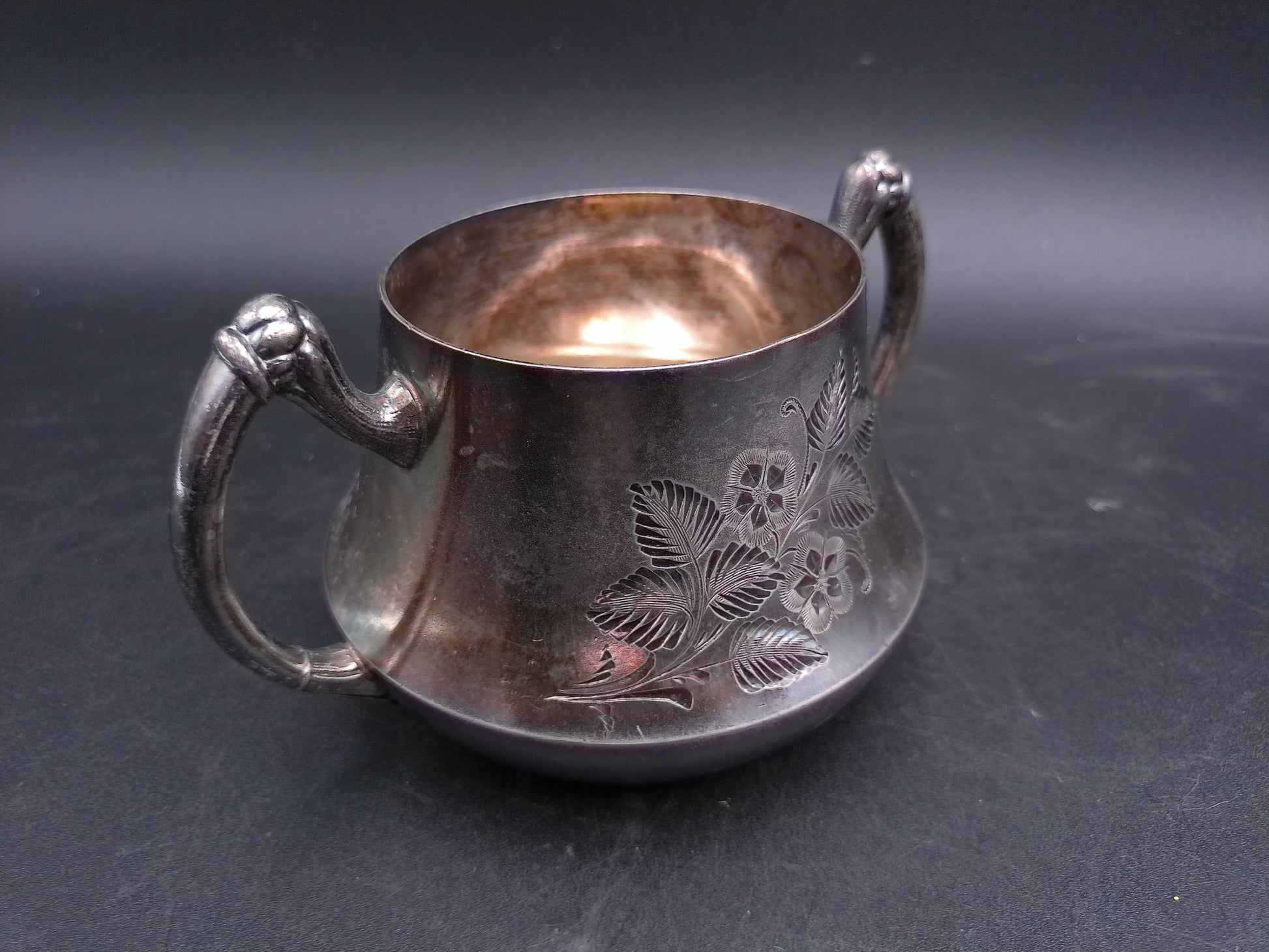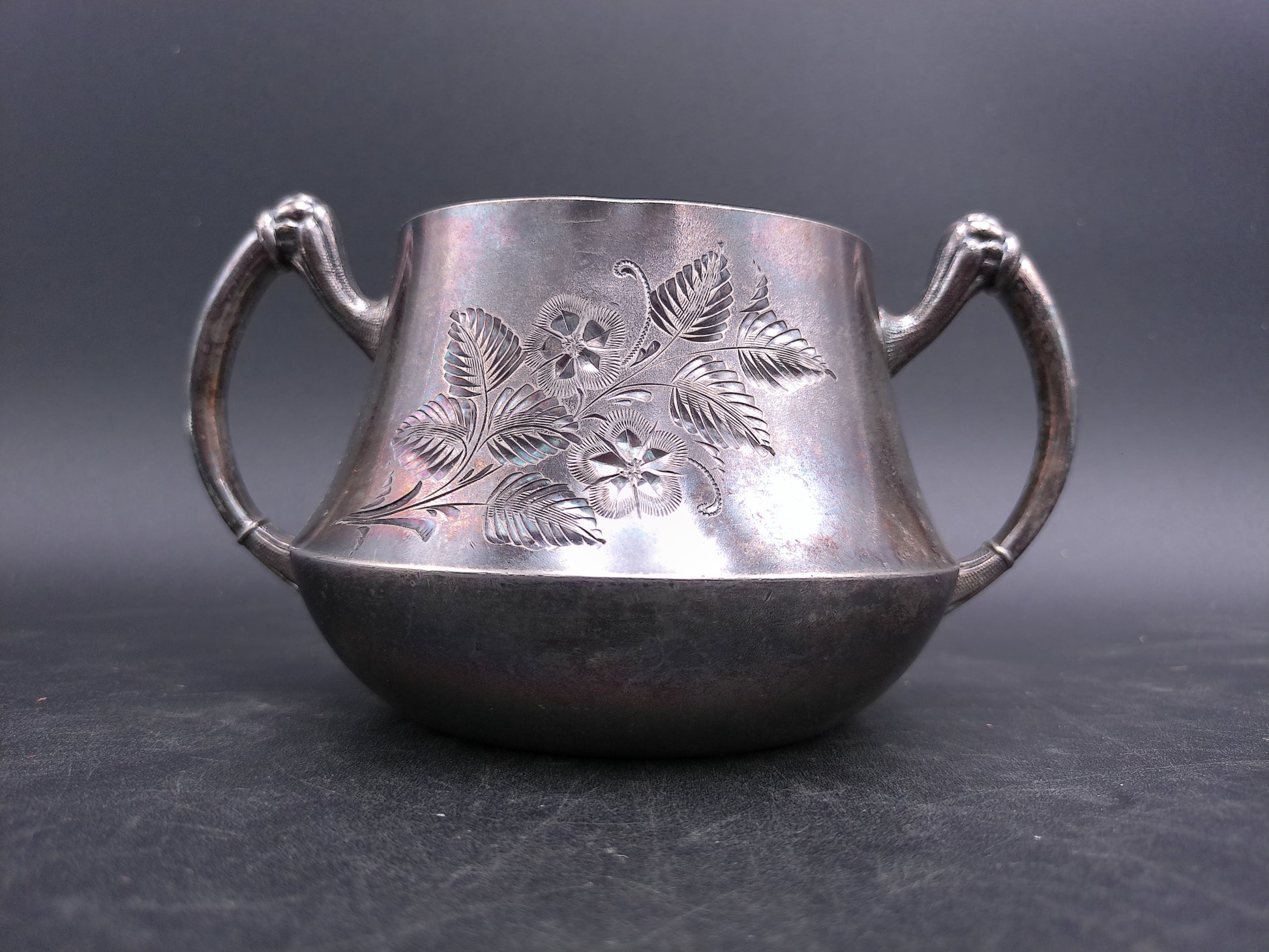 Victorian Silver plate Sugar Bowl Floral Etched Triple Plate Early 1900s