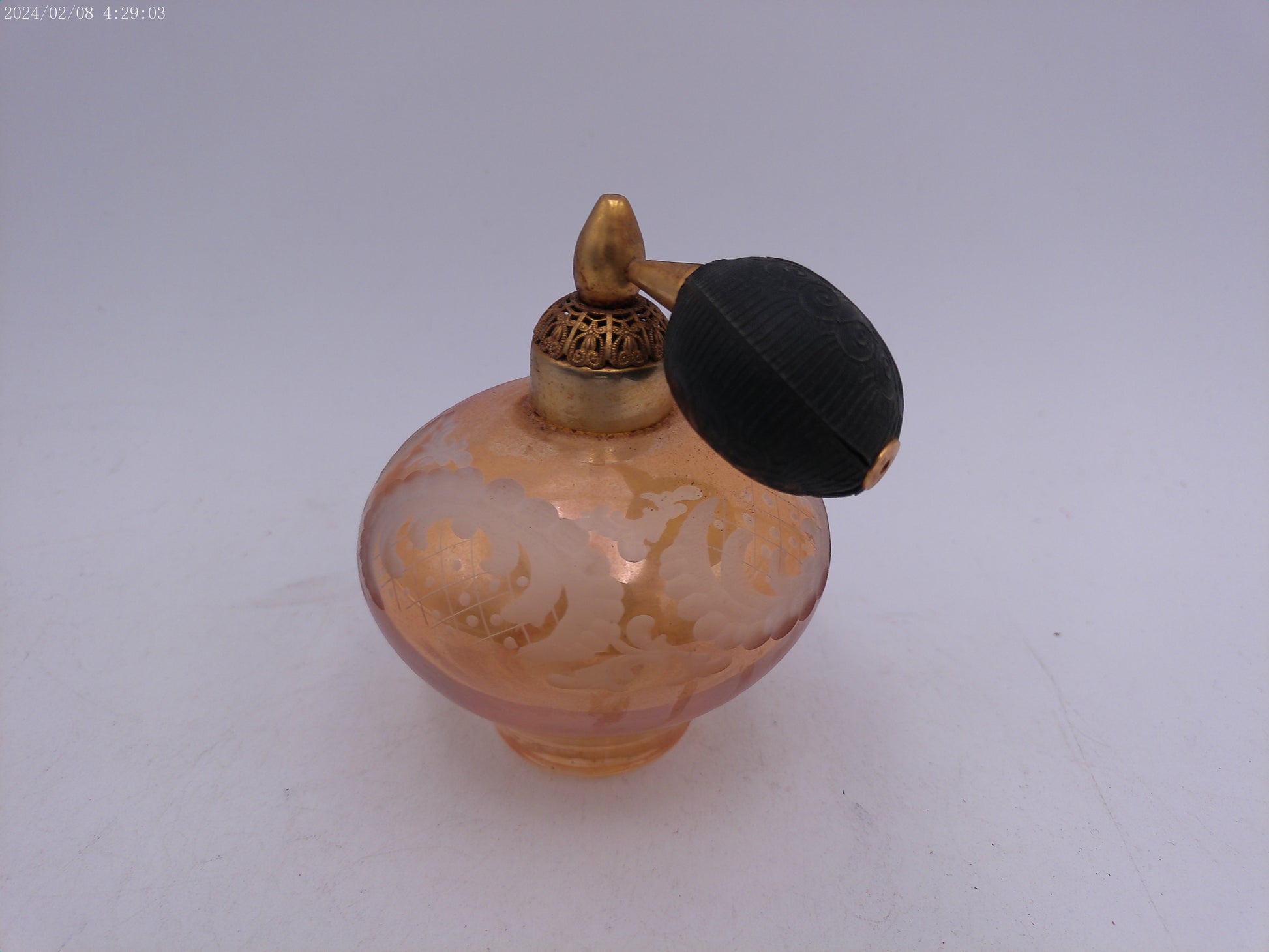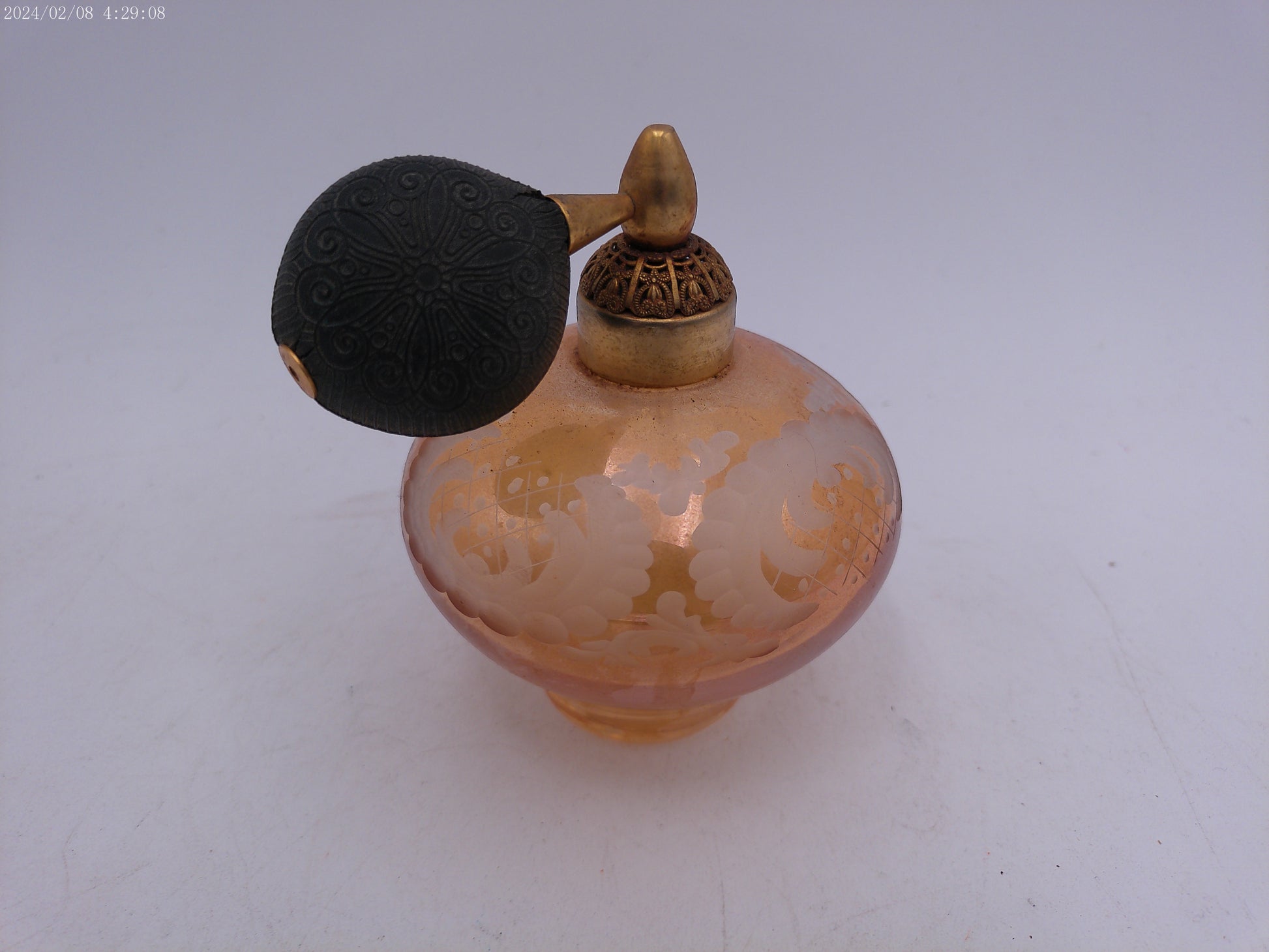 This vintage crackle glass perfume bottle with a bulb sprayer adds a touch of elegance to your vanity. The unique design of the bottle and the functionality of the bulb sprayer make it a beautiful and practical addition to your perfume collection. Spritz on your favorite scent with ease and in style.