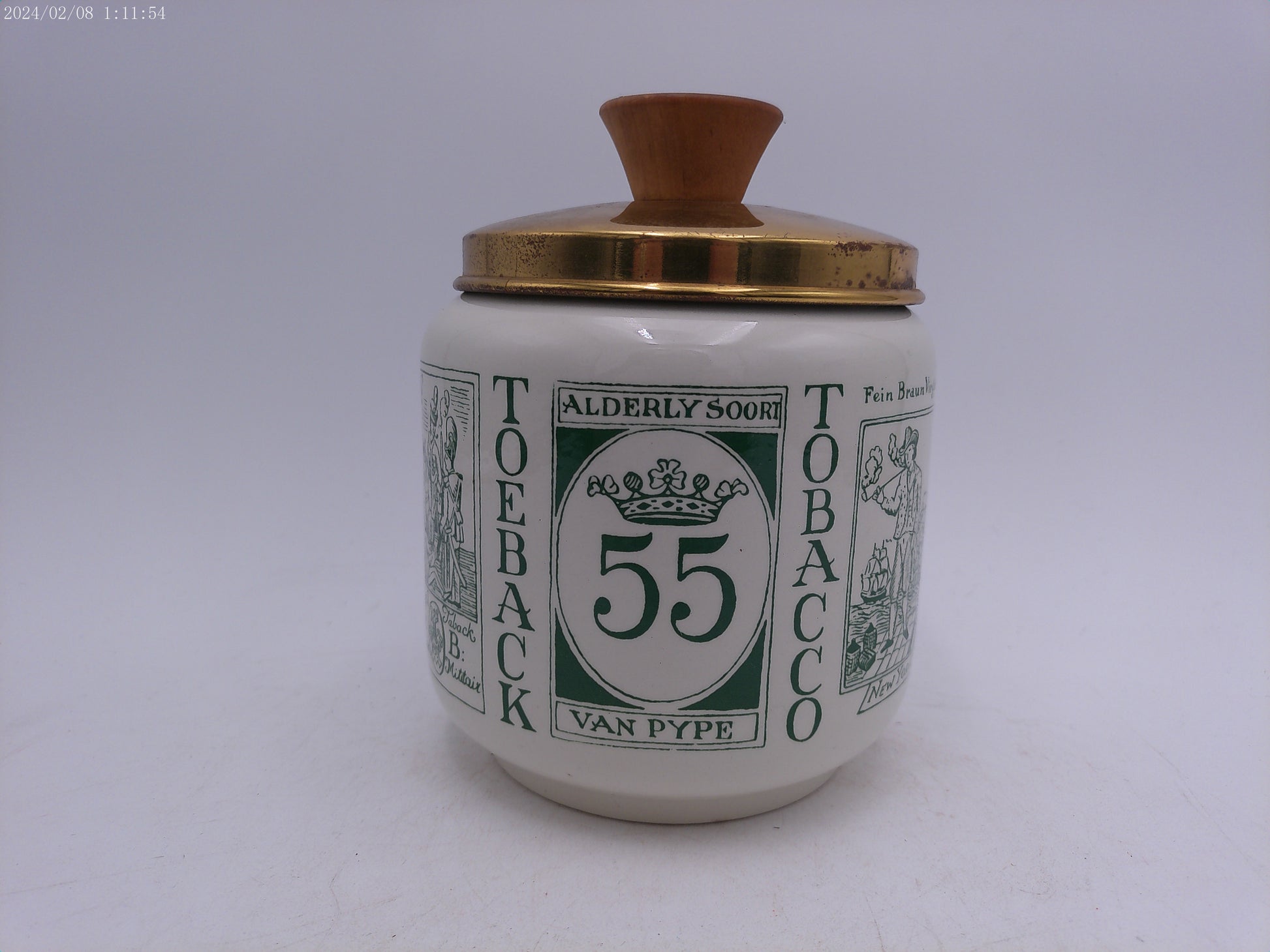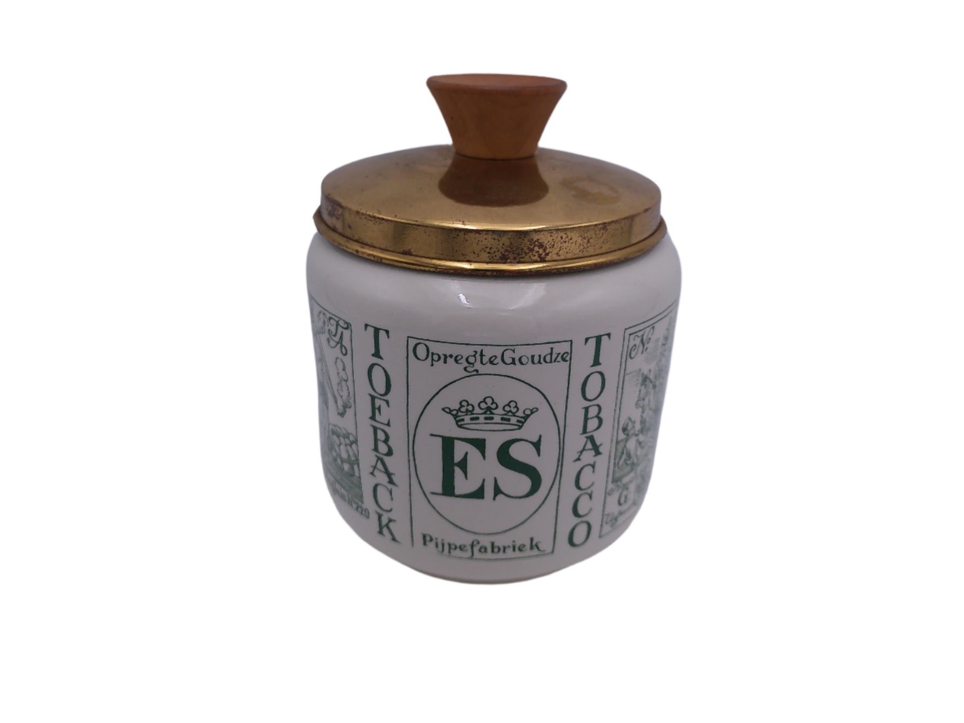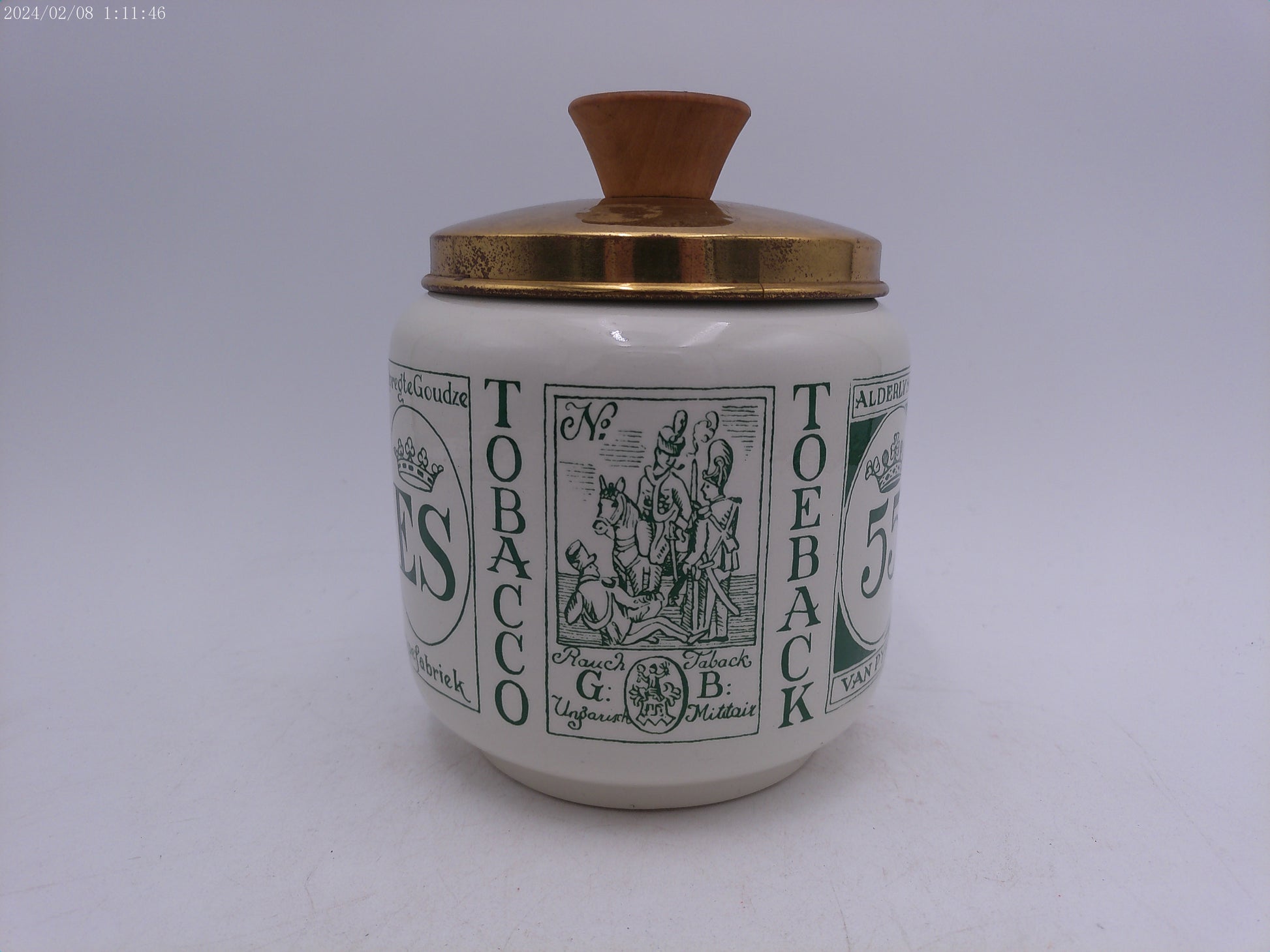Vintage Delft Royal Groenewegen Toeback Tobacco Jar w/ Brass Lid 55 ES