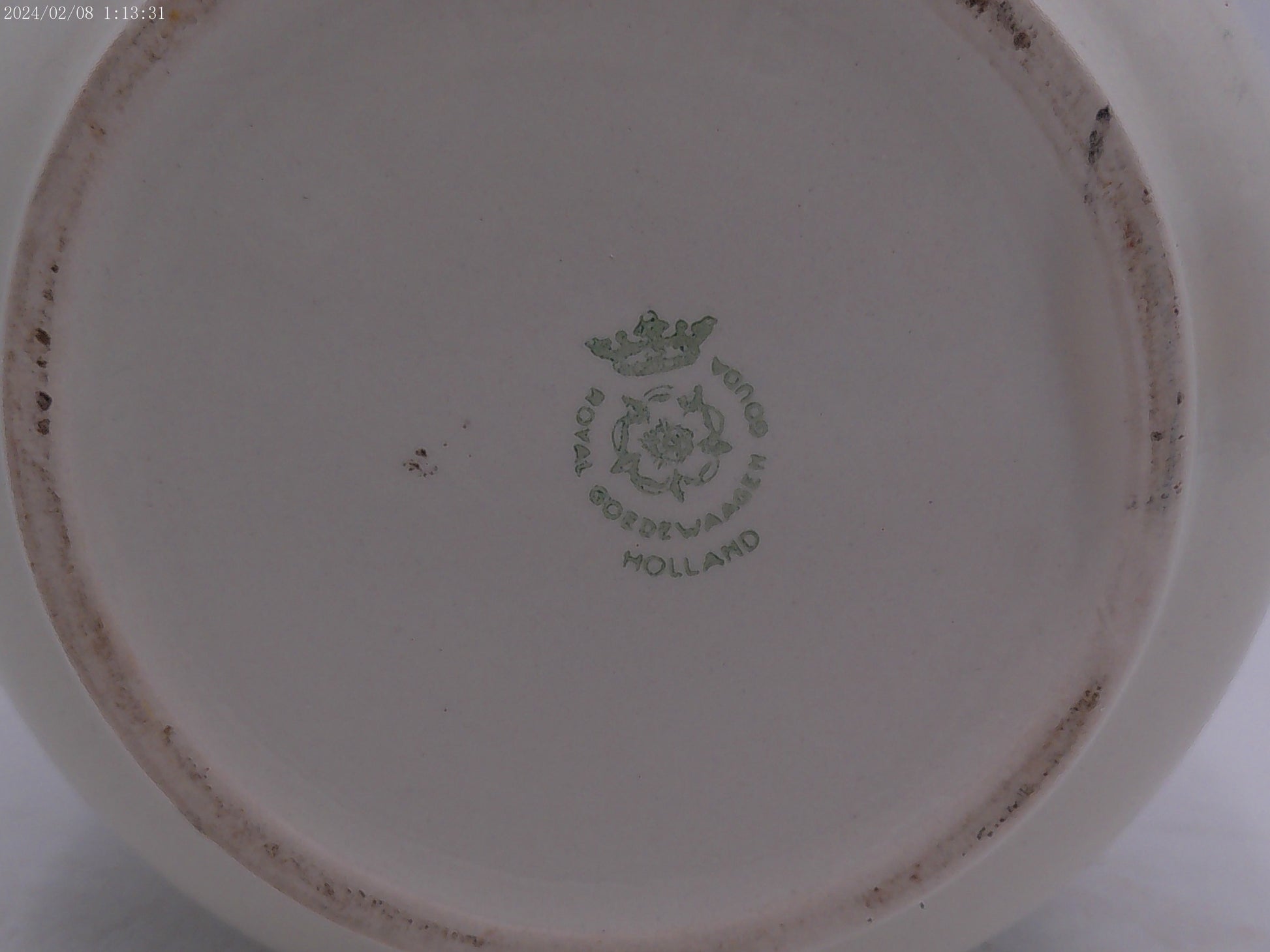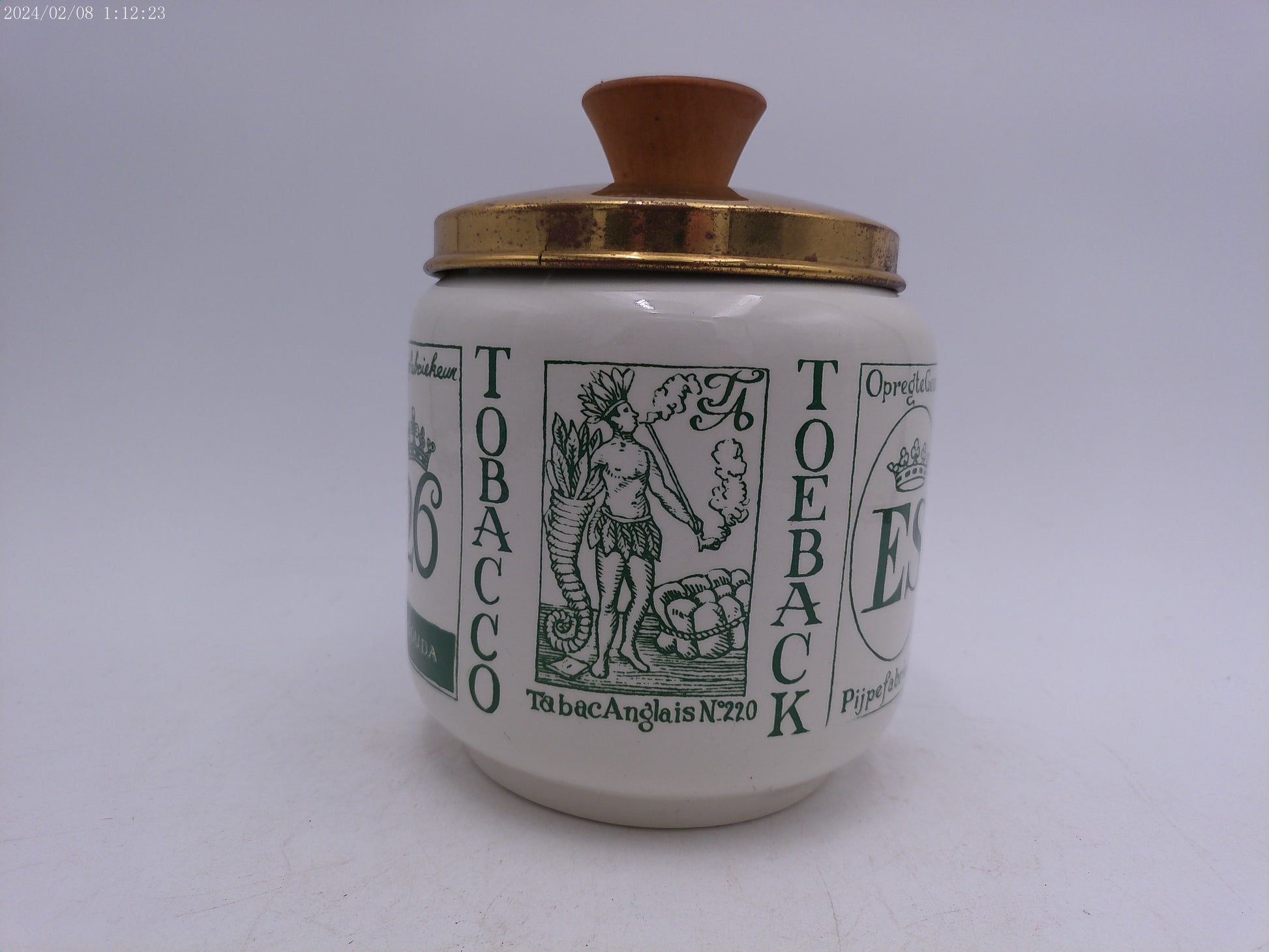 This Vintage Delft Royal Groenewegen Tobacco G Jar with Brass Lid is a beautiful and unique addition to any home. Made with intricate hand-painted designs, this jar boasts both elegance and history. The brass lid adds a touch of sophistication and functionality, making it not only a decorative piece but also a practical storage solution. Experience the charm and craftsmanship of Delft pottery with this vintage gem.