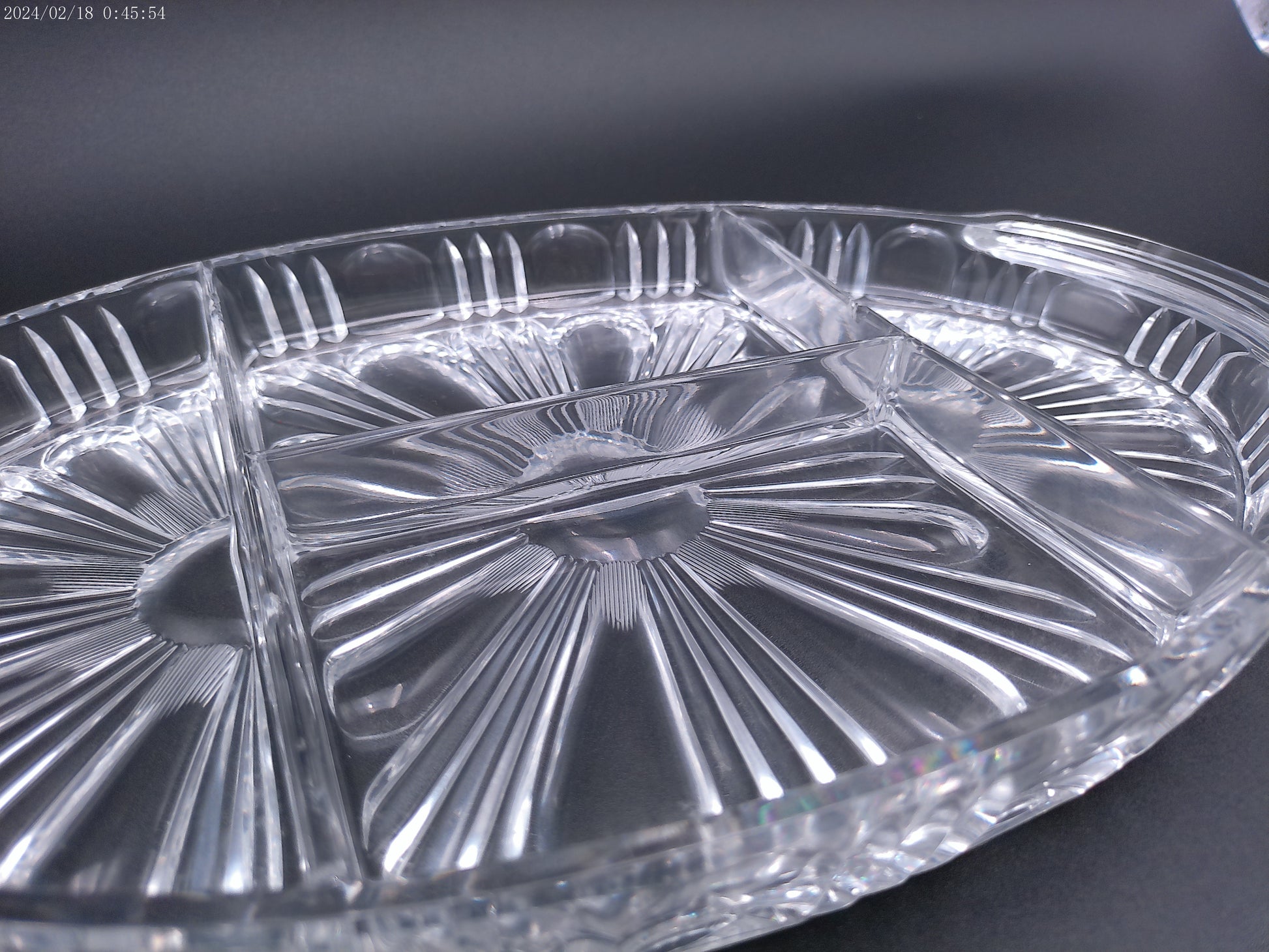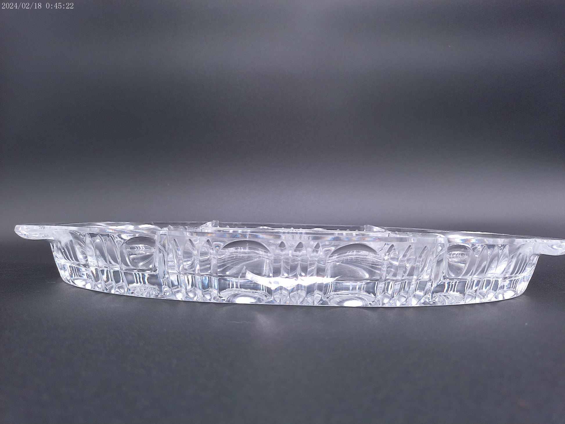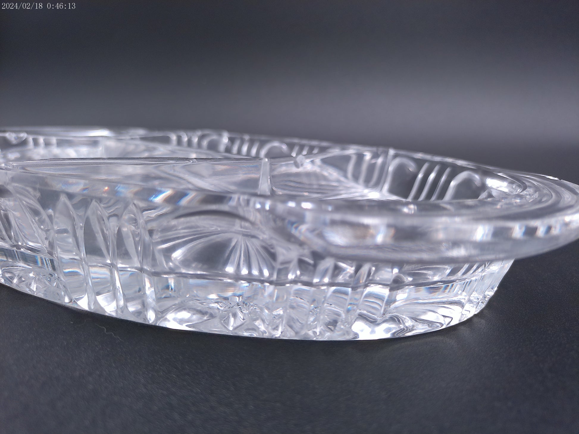 Crafted from premium vintage lead crystal, this rectangular dish is the perfect addition to any dining or entertaining set up. Its timeless design adds a touch of elegance to any table, while its versatile shape makes it perfect for serving snacks and appetizers. Elevate your hosting game with this stunning snack bowl.