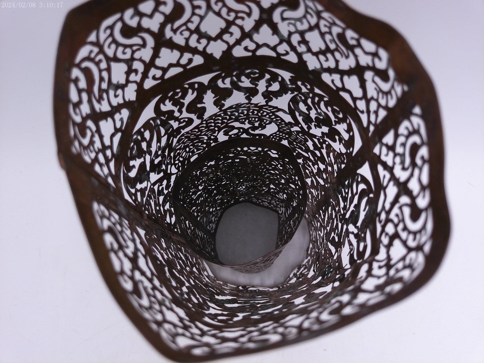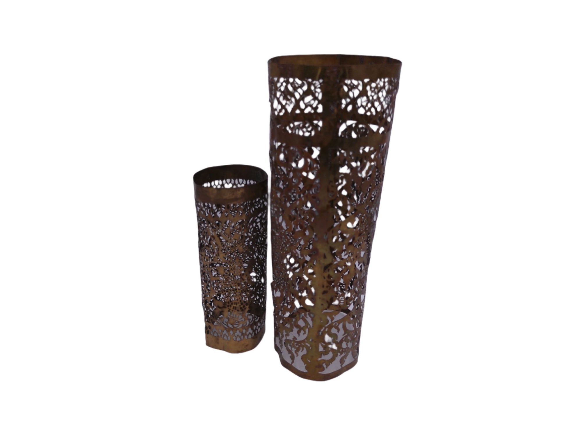 Elevate your candle game with this vintage set of two candle brass metal covers. Crafted with quality and style in mind, these covers add a touch of elegance to your home decor. Protect your candles with these timeless pieces while enhancing their aesthetic appeal.