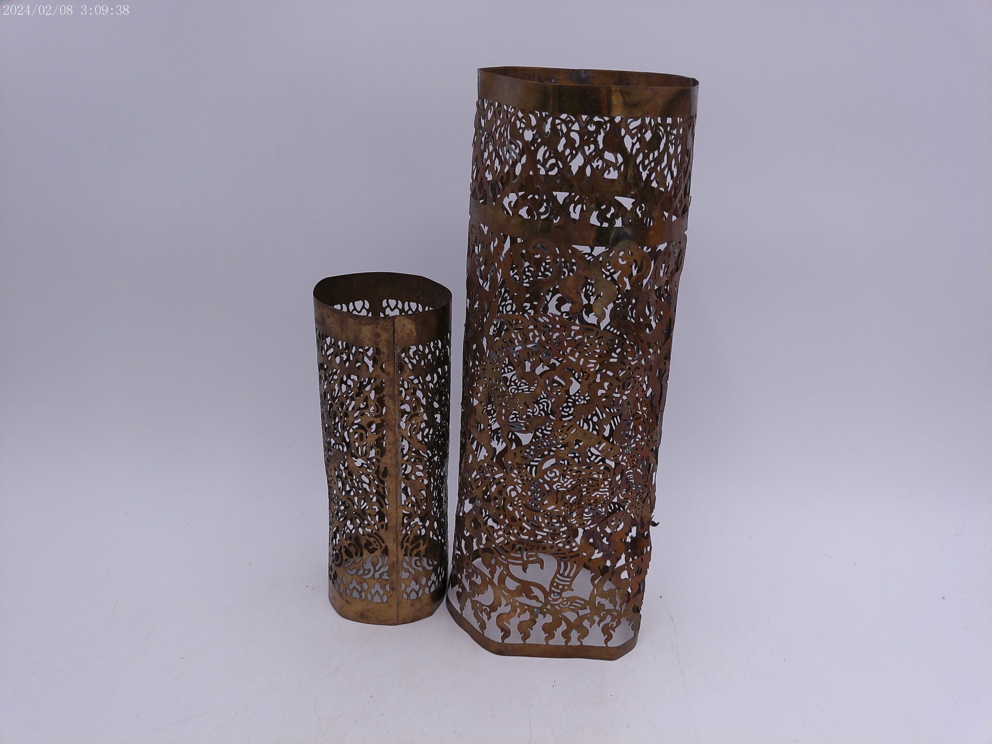 Vintage Lot of 2 Candle Brass metal Candle Covers