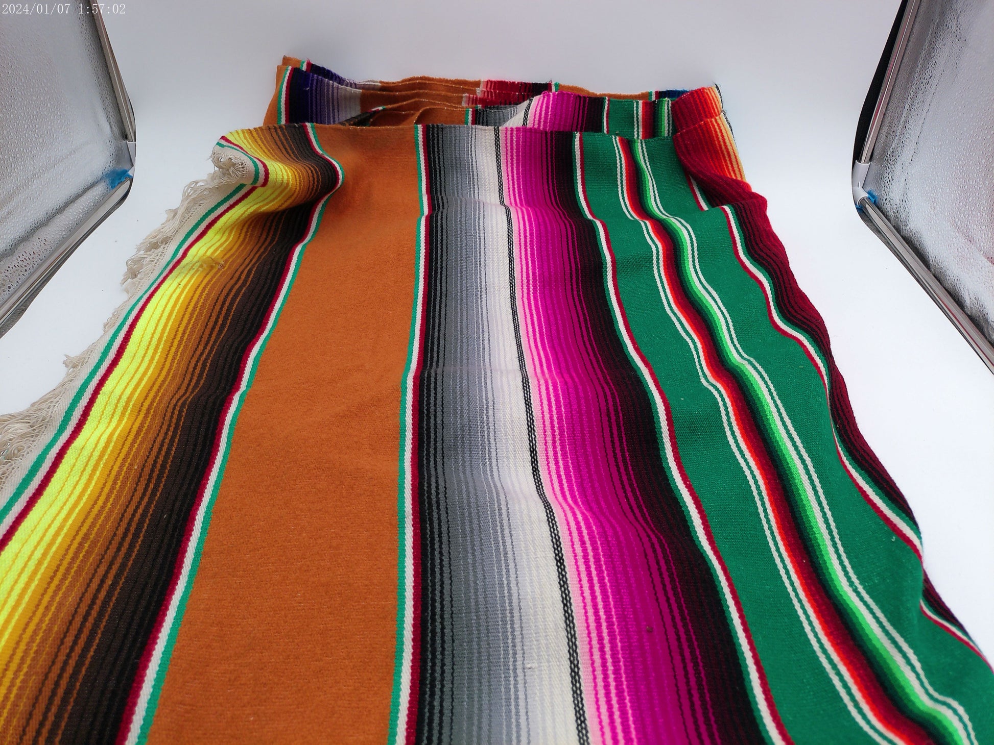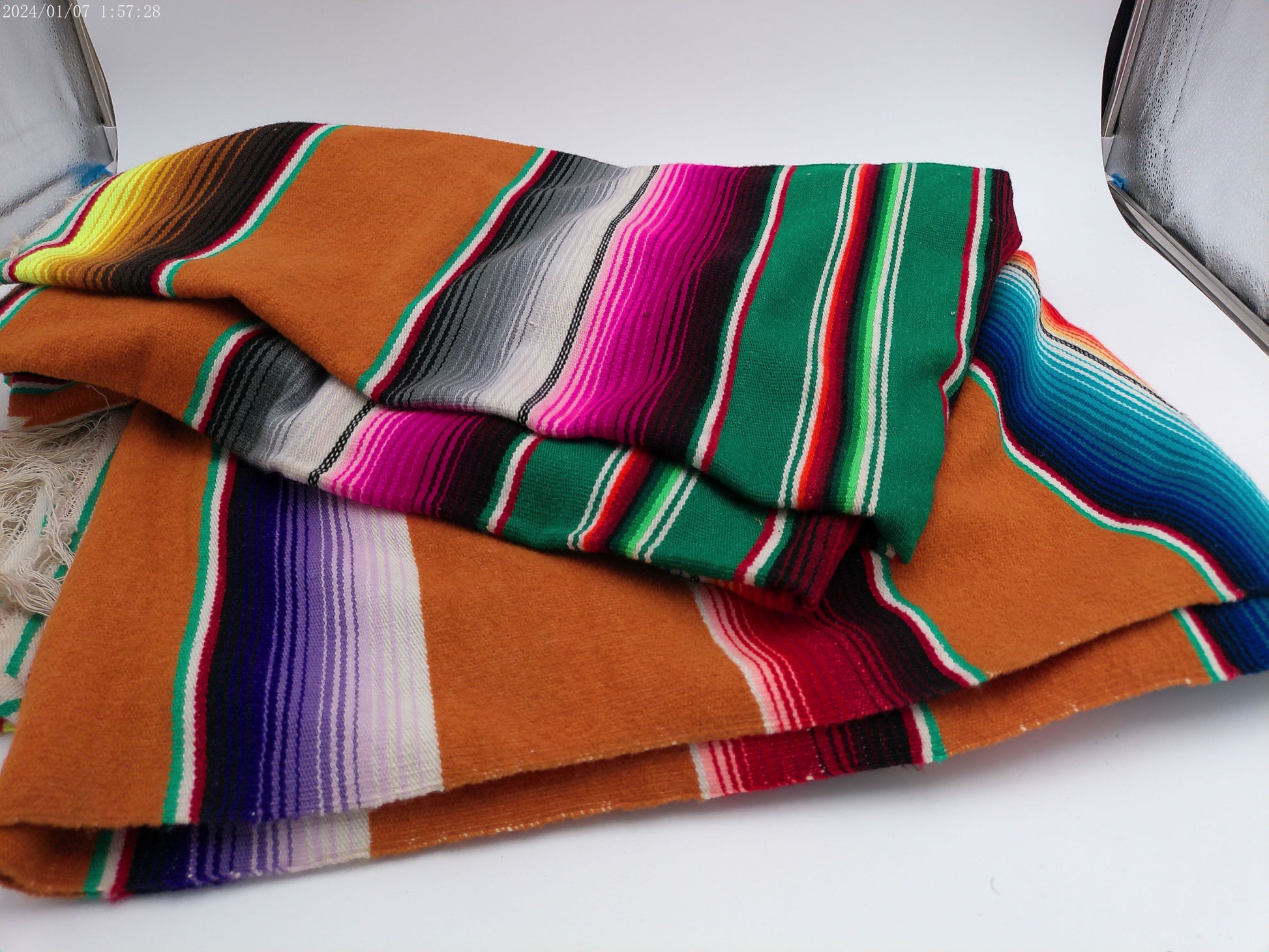 Experience the vibrant colors and rich history of Mexico with our Vintage Mexican Blanket! Hand-woven with traditional techniques, this blanket is a beautiful and unique addition to any home. Let its warmth and beauty inspire you and bring a touch of culture to your space.