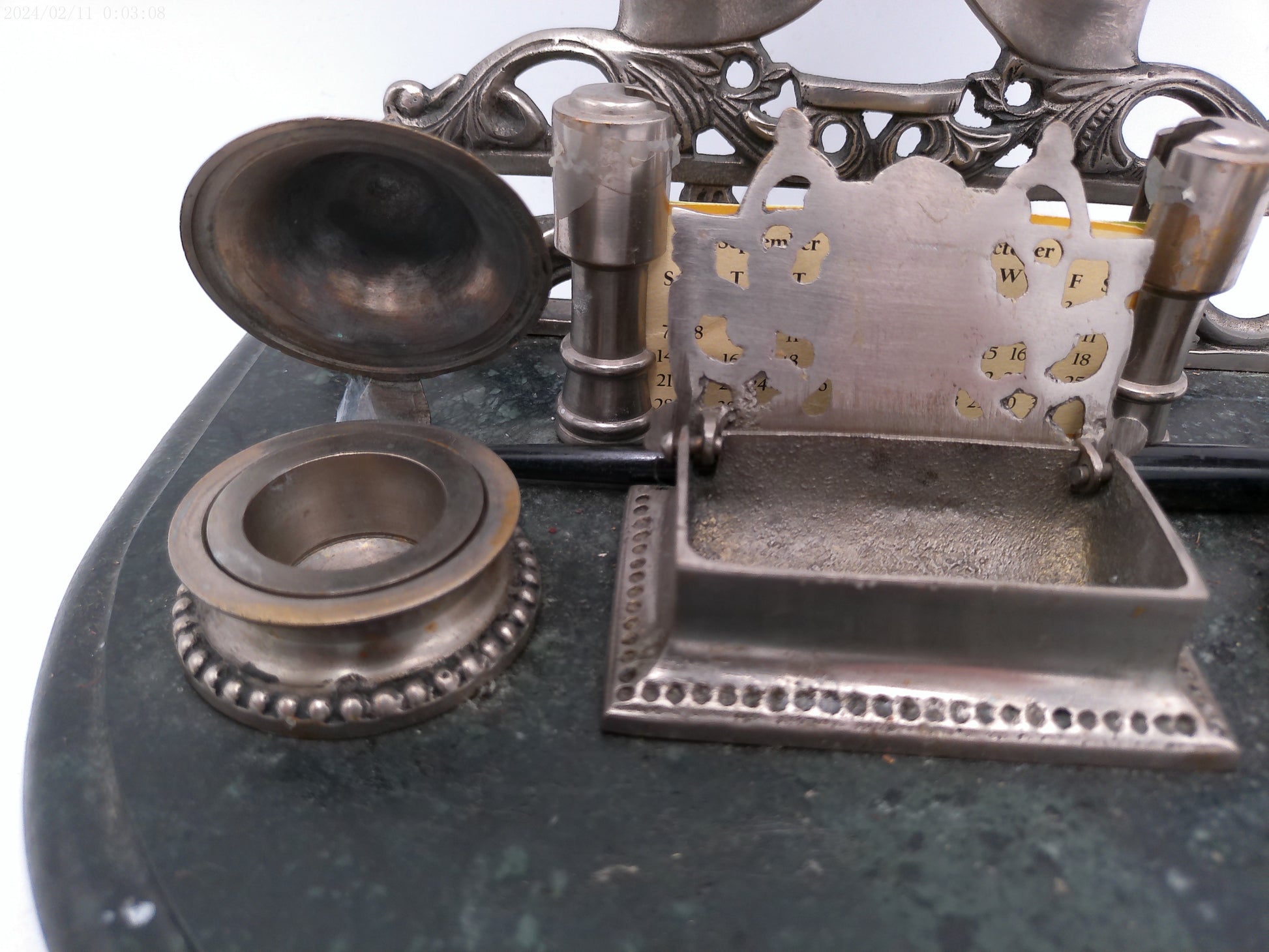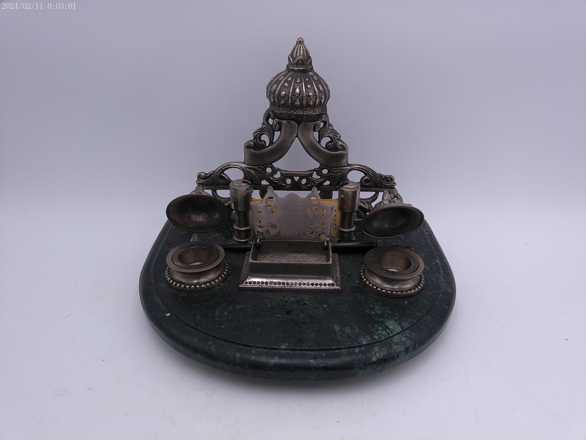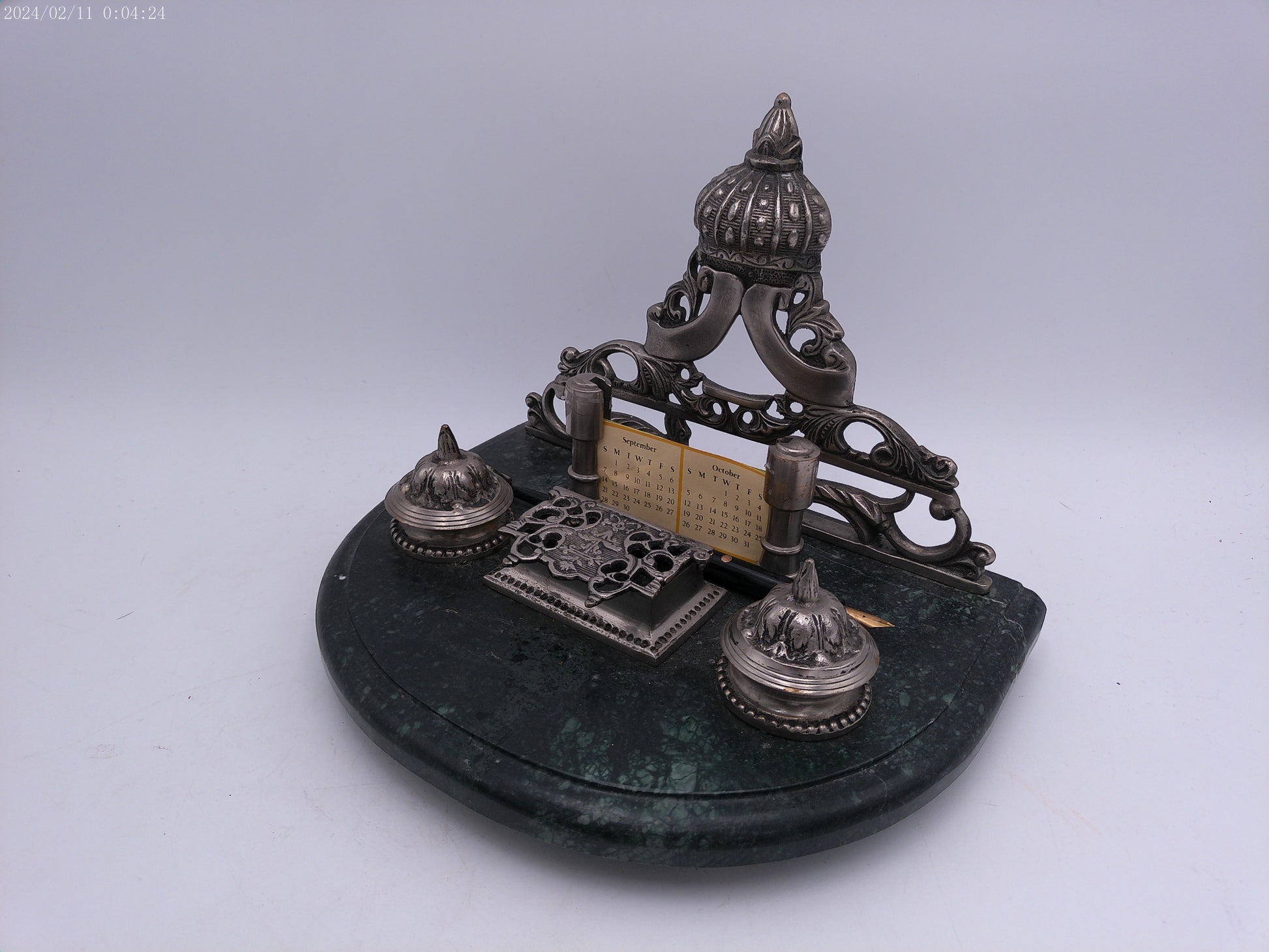 Vintage Ornate Double Ink Pen Well with Marble Base