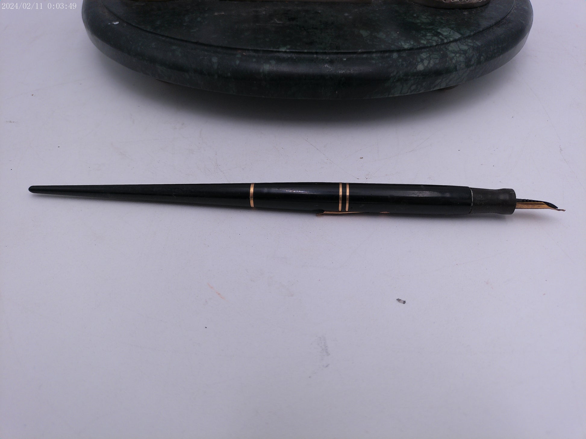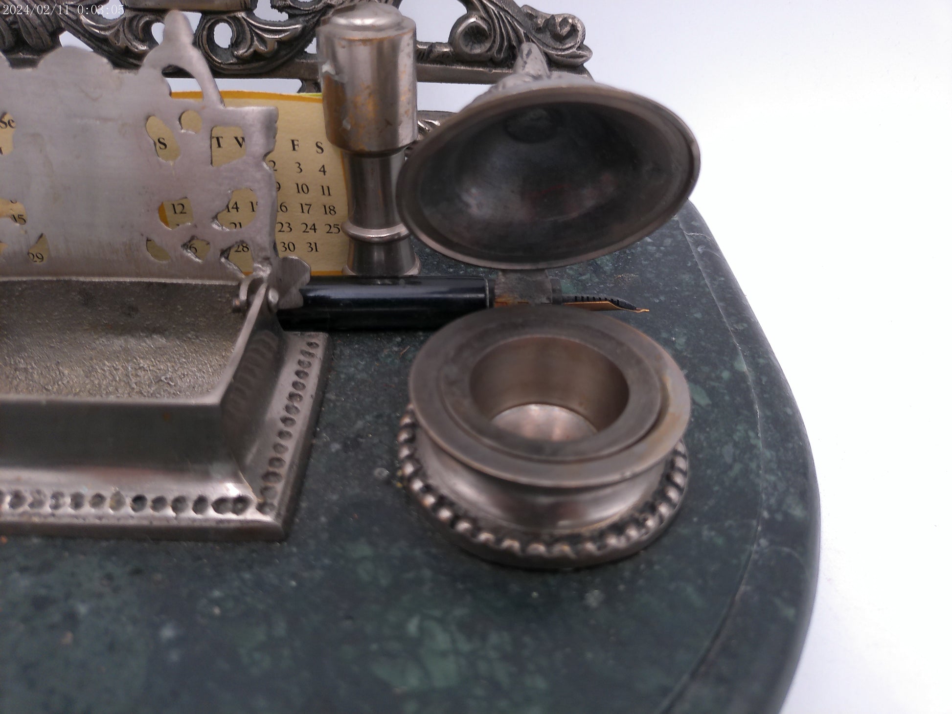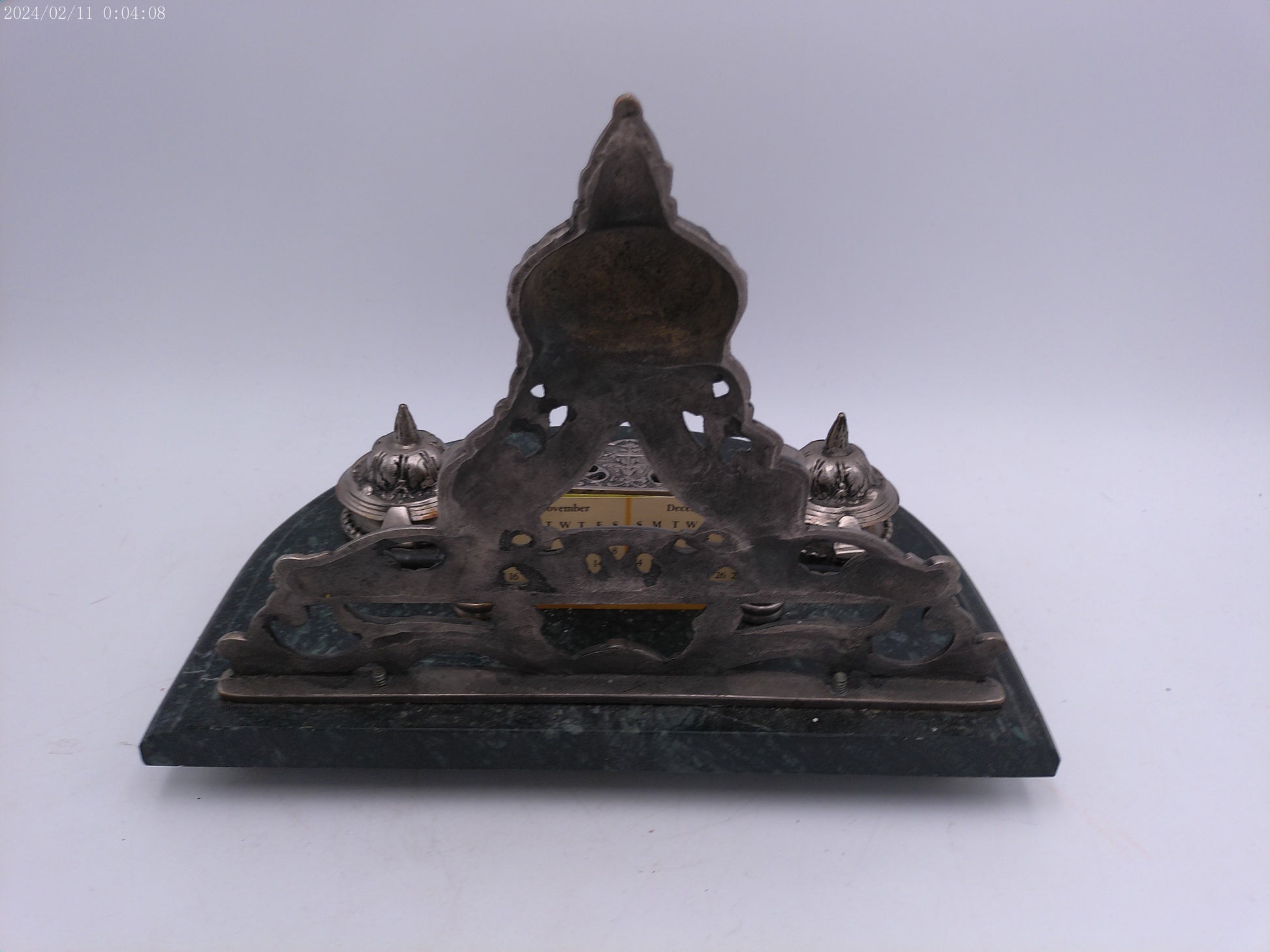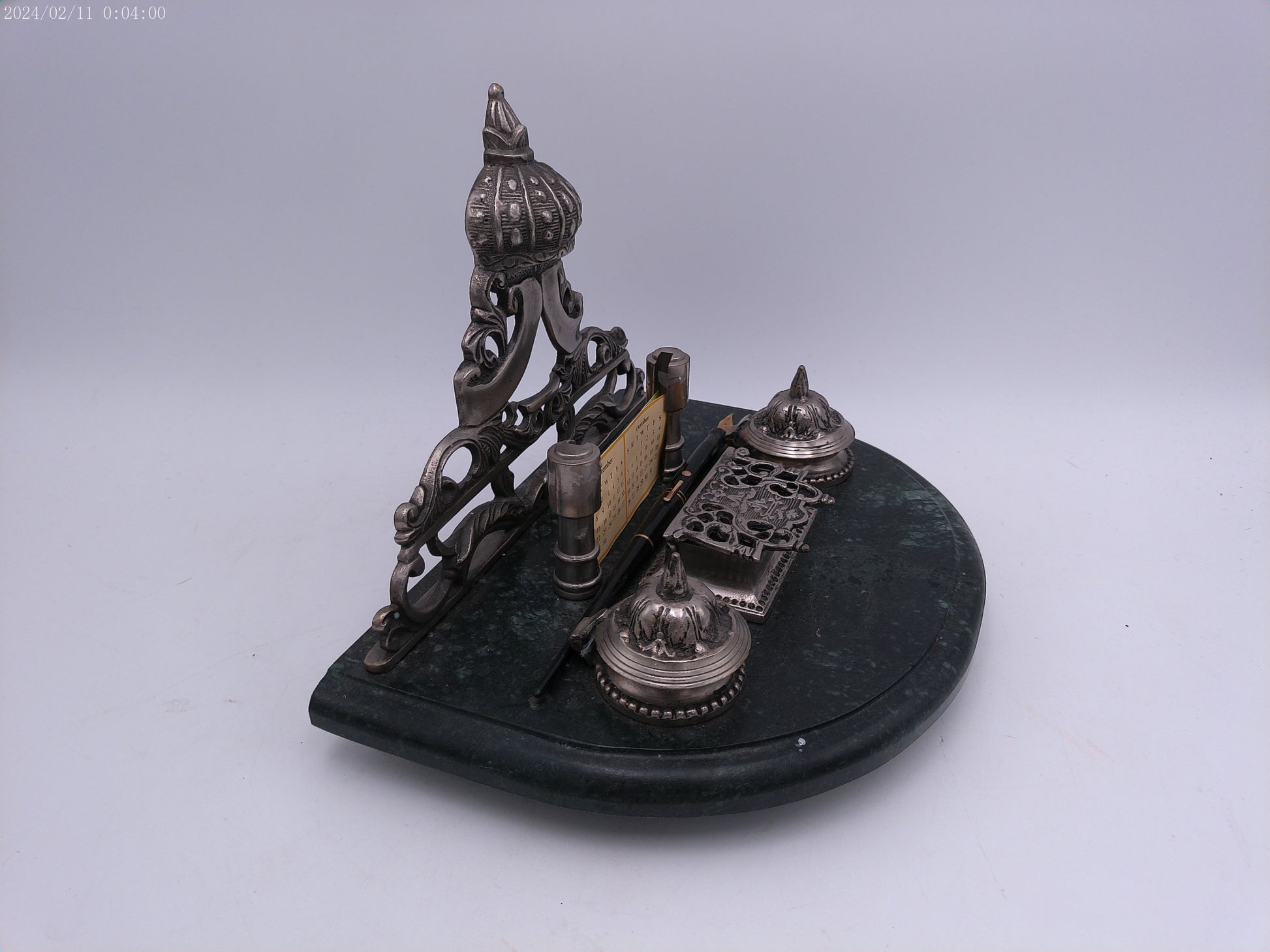 Vintage Ornate Double Ink Pen Well with Marble Base