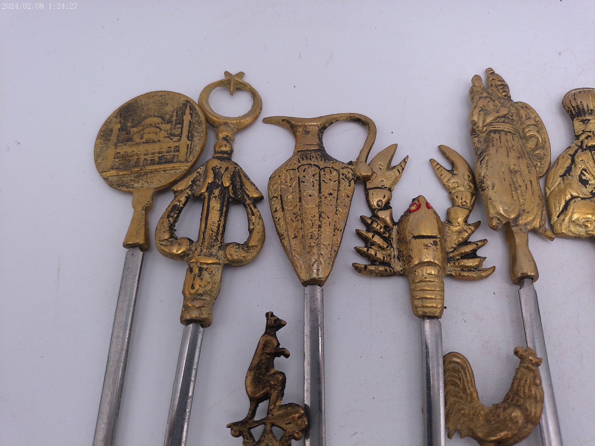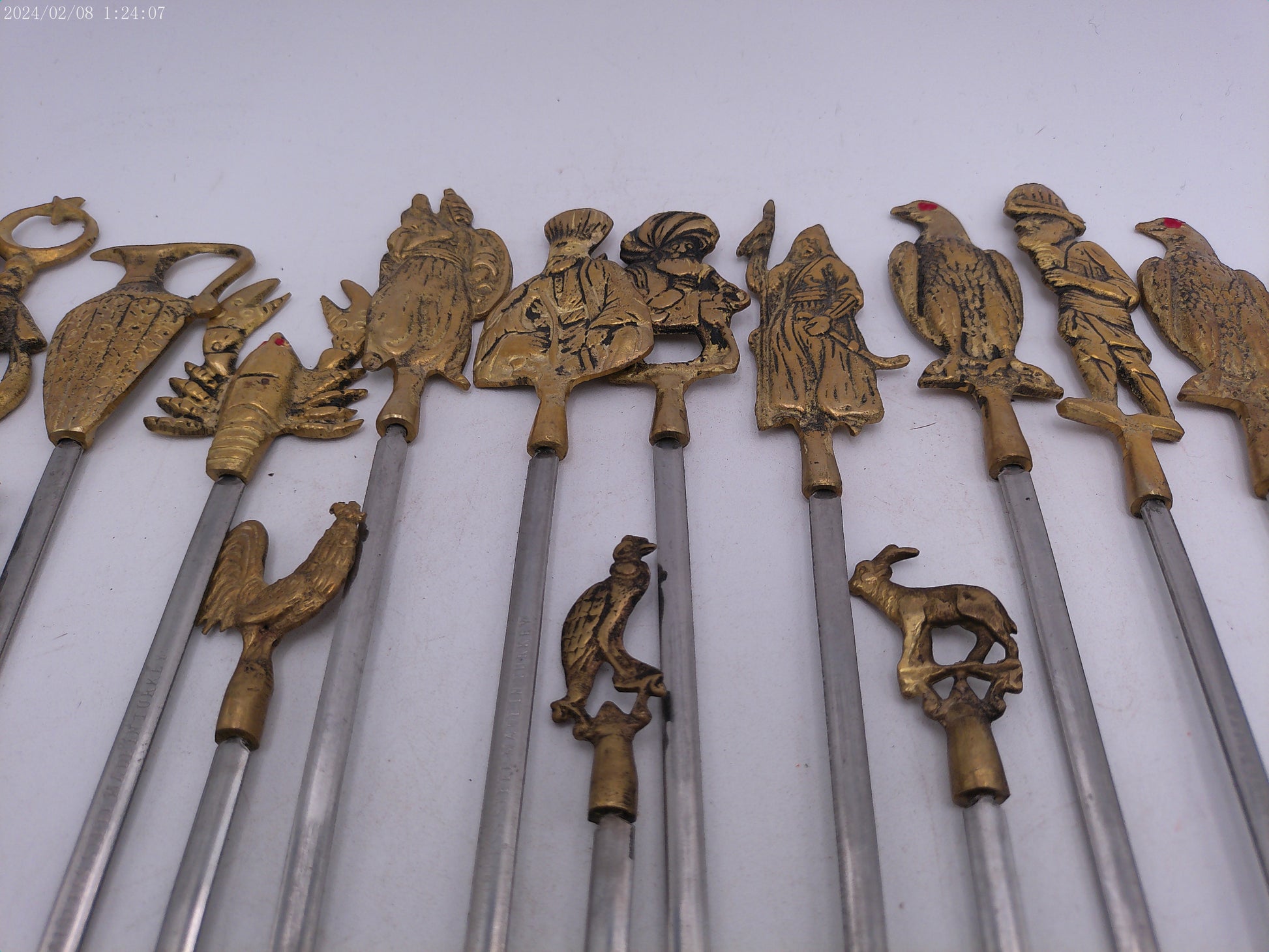 Vintage Shish Kebab Skewers Brass and Stainless Steel set of 17