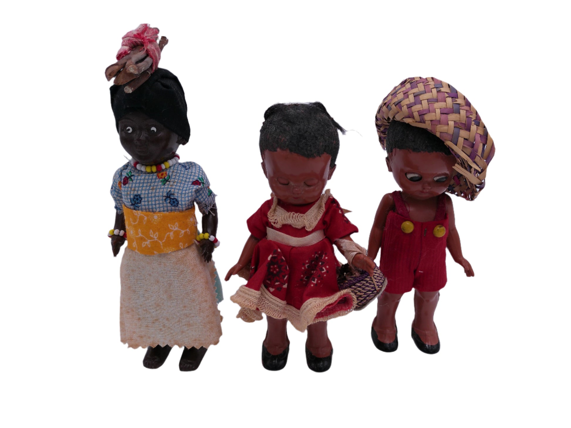 Vintage South African Johannesburg Souvenir Tribal 3 Dolls Set