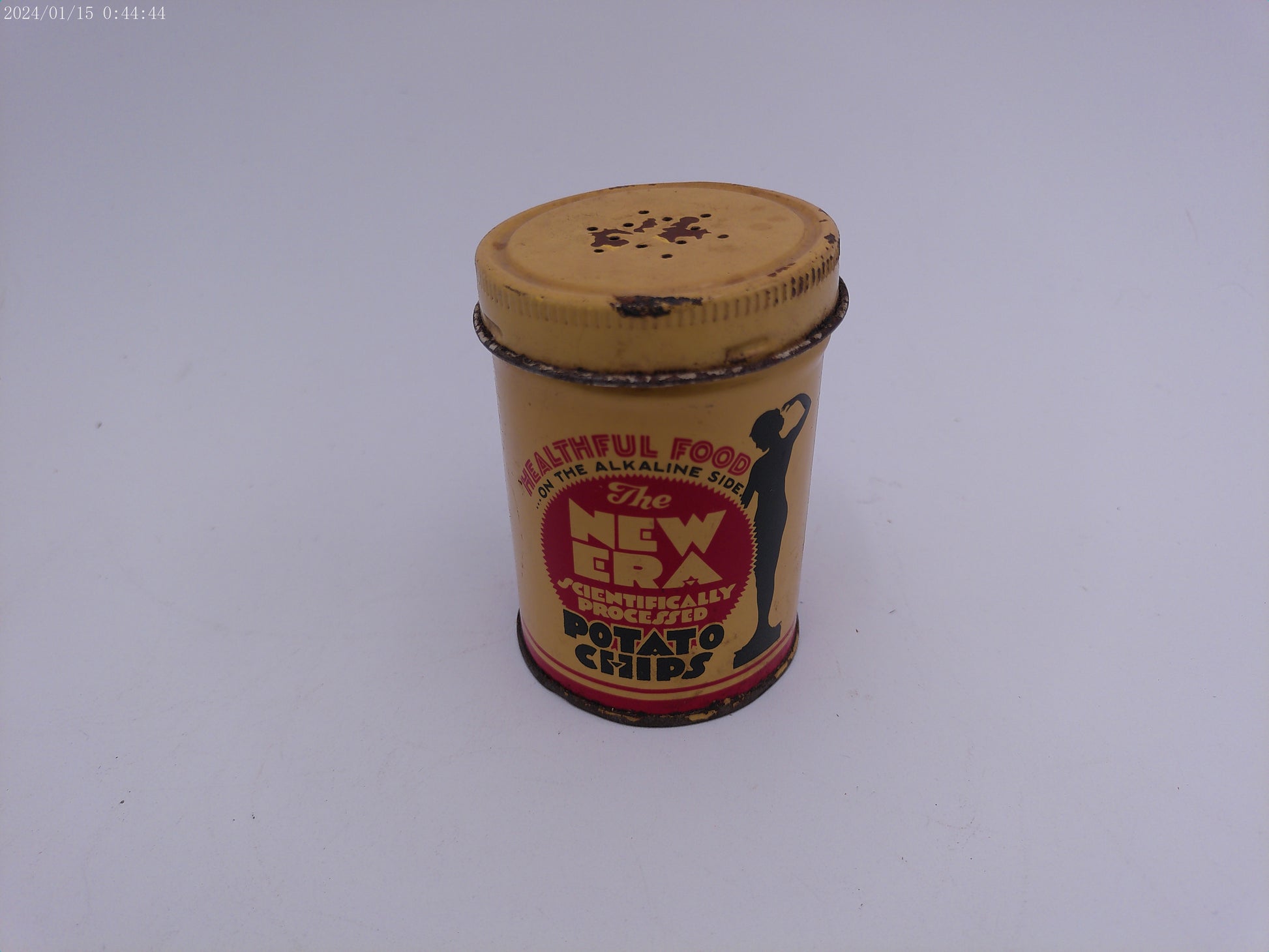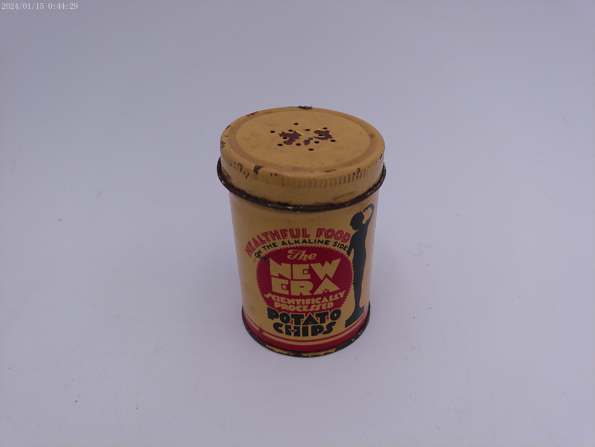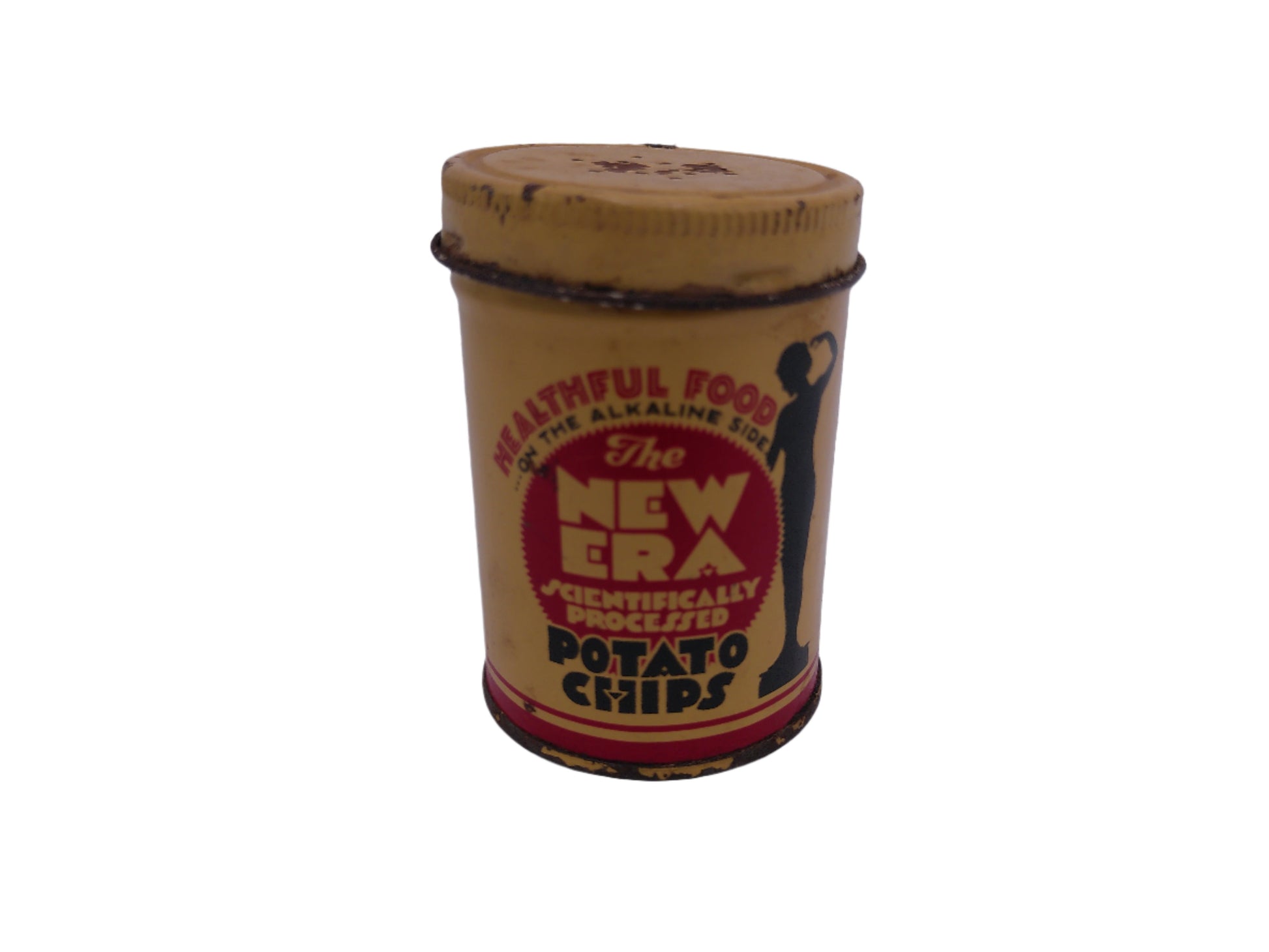 The Vintage The New Era Scientifically Processed Potato Chip Tin is a unique and collectible item. Made with scientifically processed technology, this tin preserves and maintains the freshness of your potato chips for longer periods of time. Perfect for vintage lovers and food enthusiasts alike.