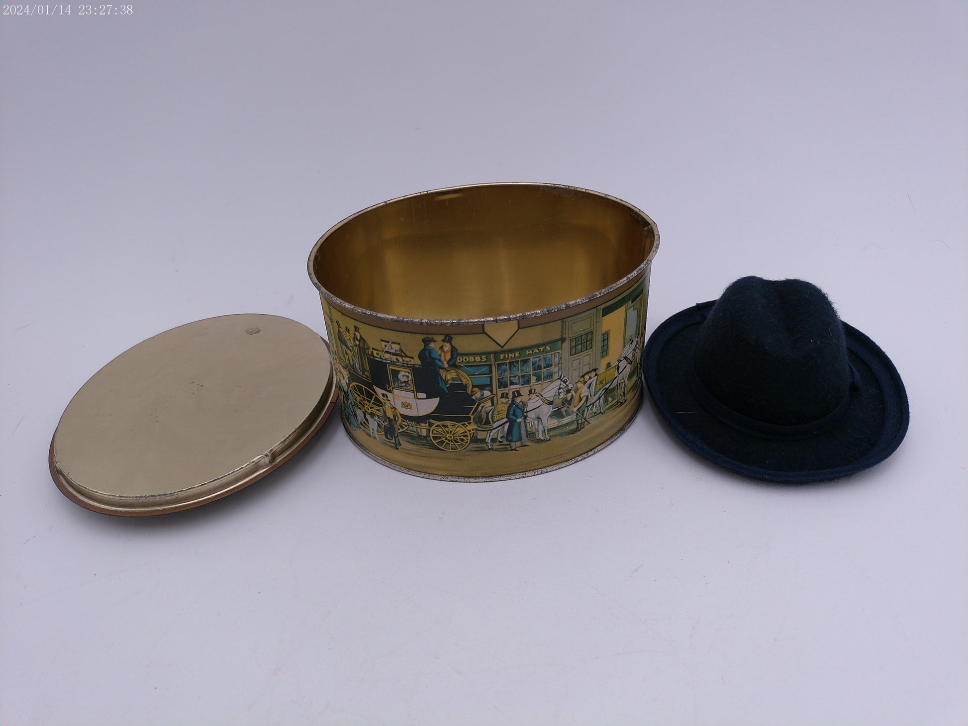 Vintage Victorian Tin Dobbs Fifth Avenue Hats Storage Powder Tin with Hat