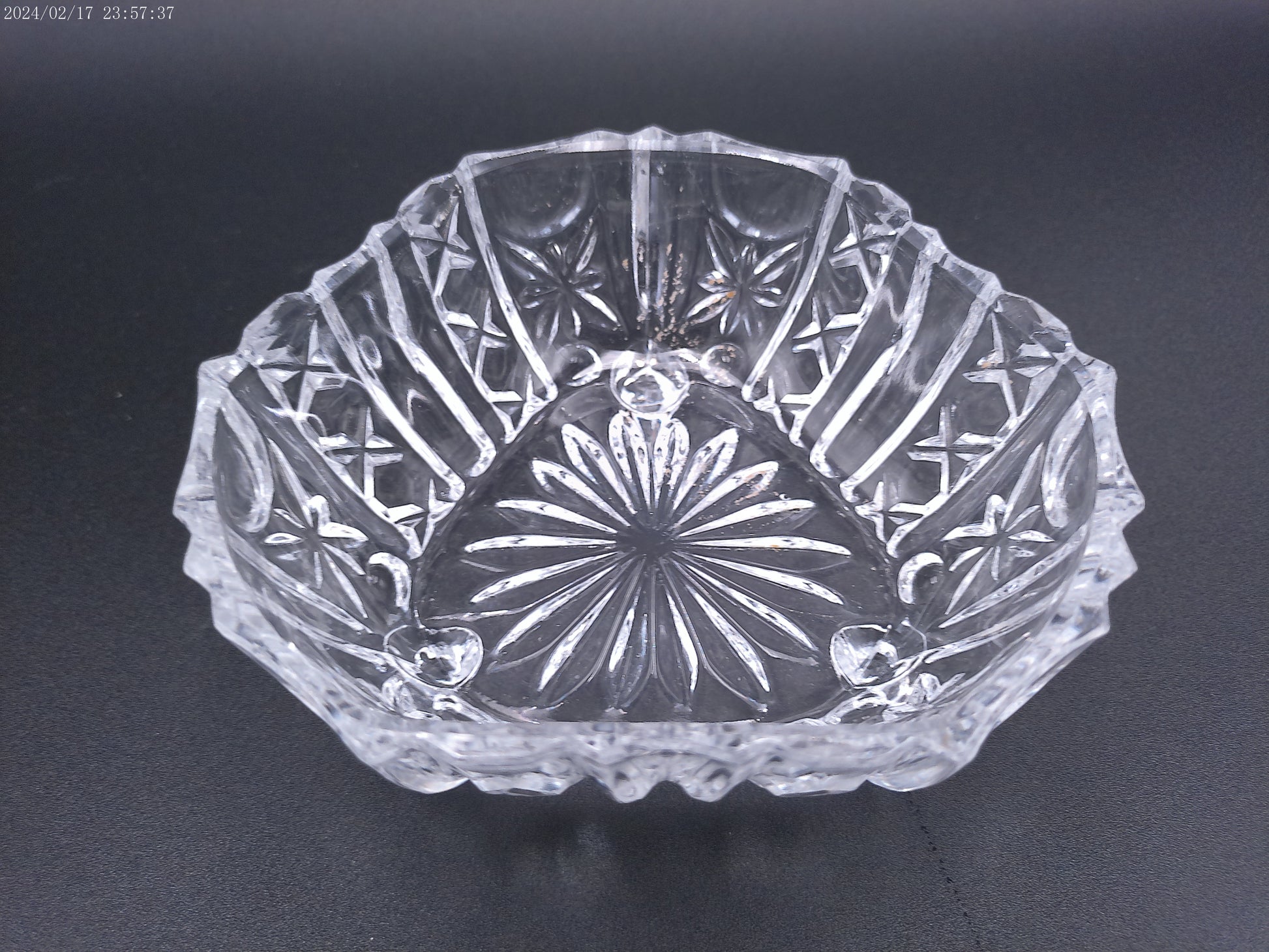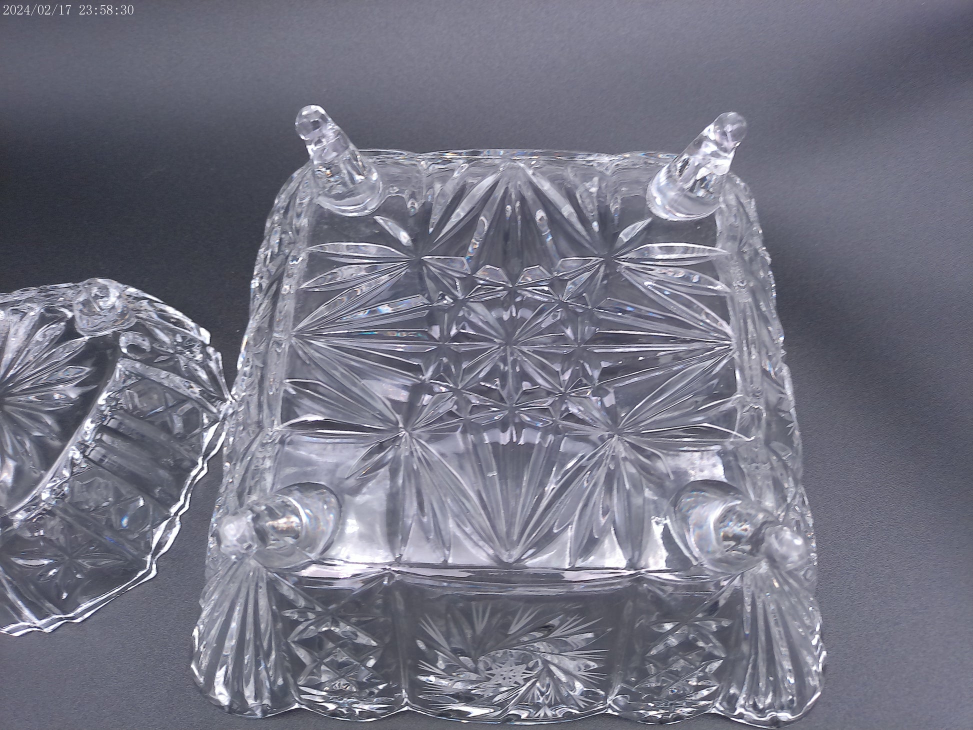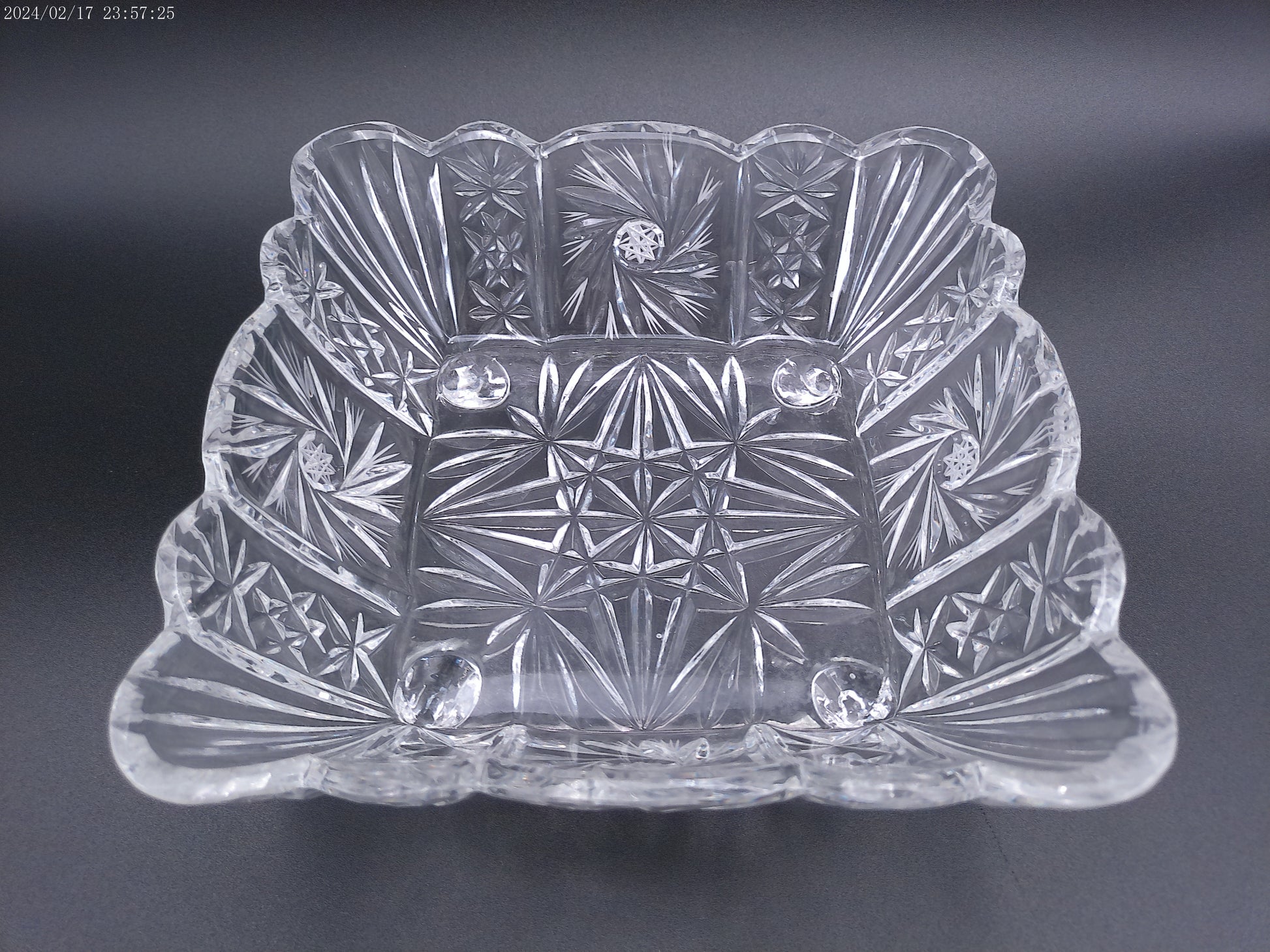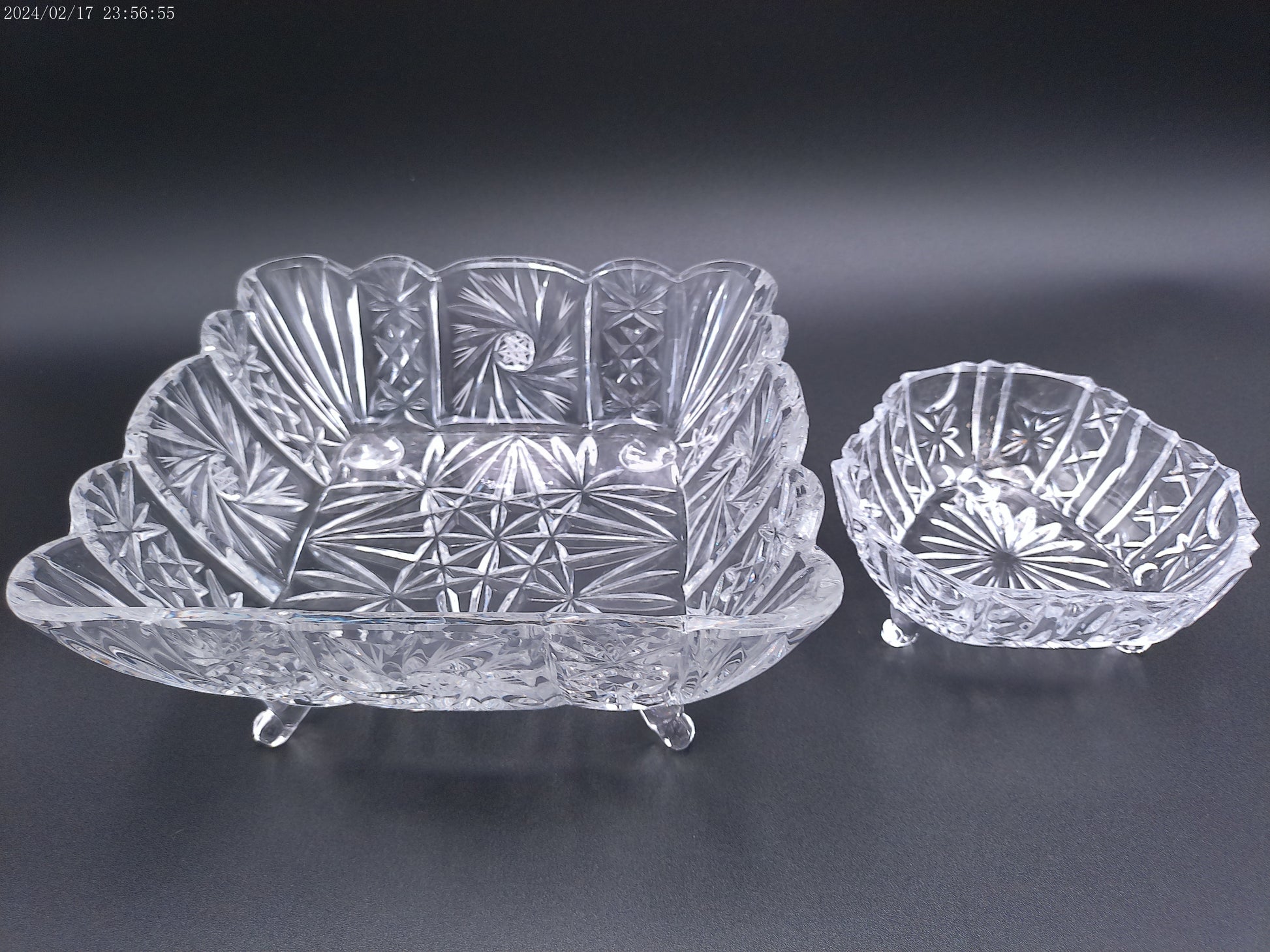 Violetta Square Lead Crystal Footed Bowl Poland Starburst Hobstar Pinwhee lot of 2