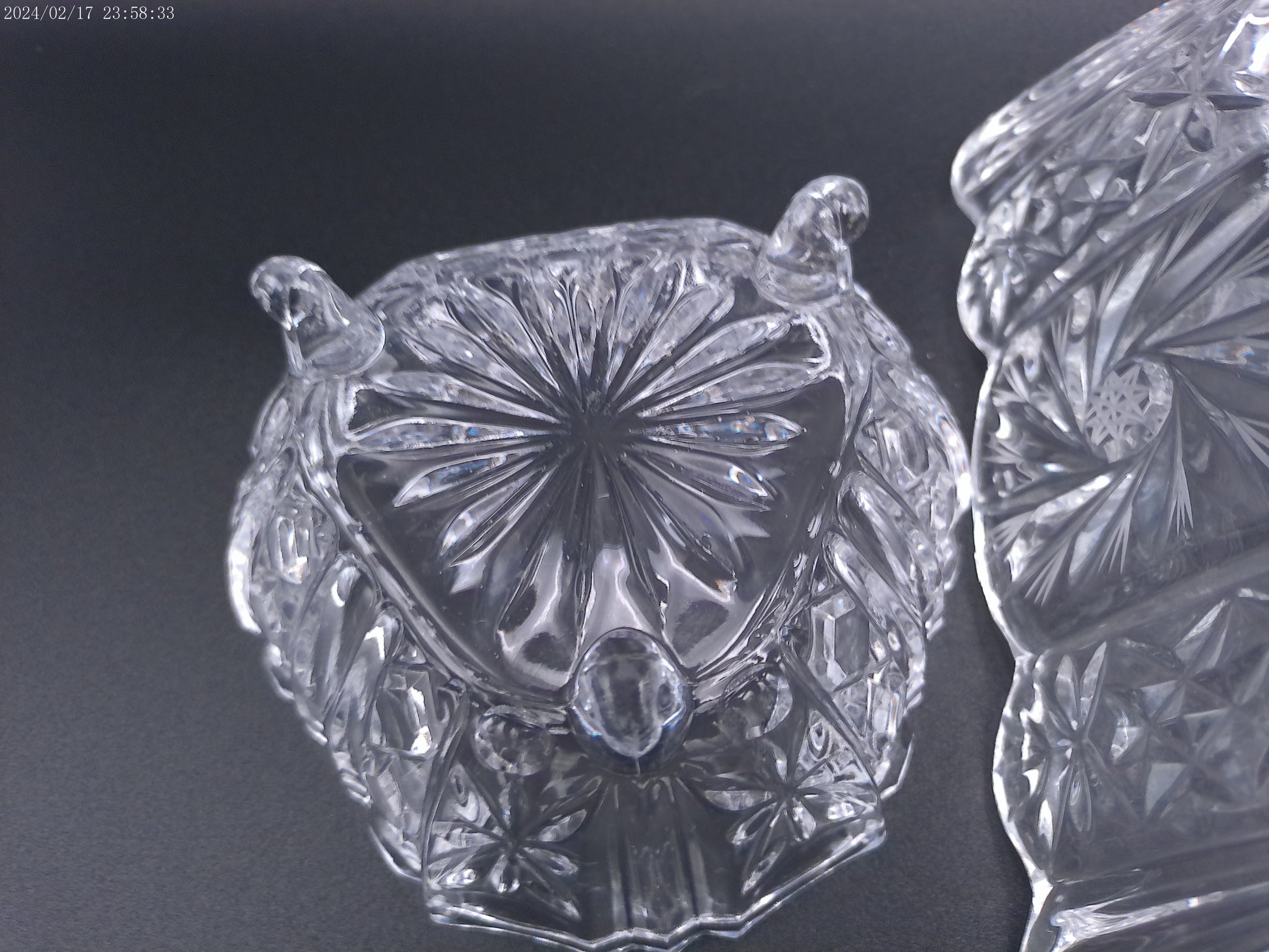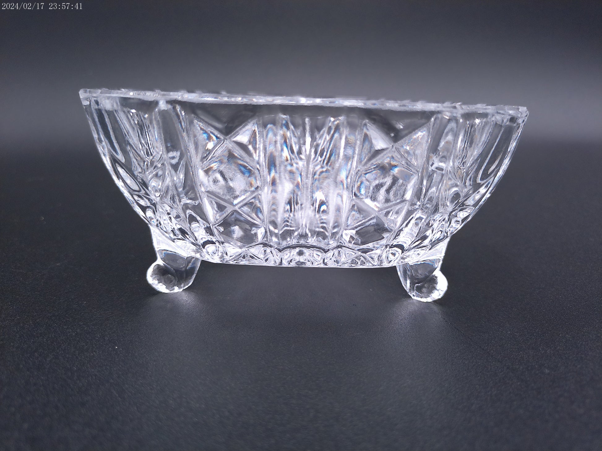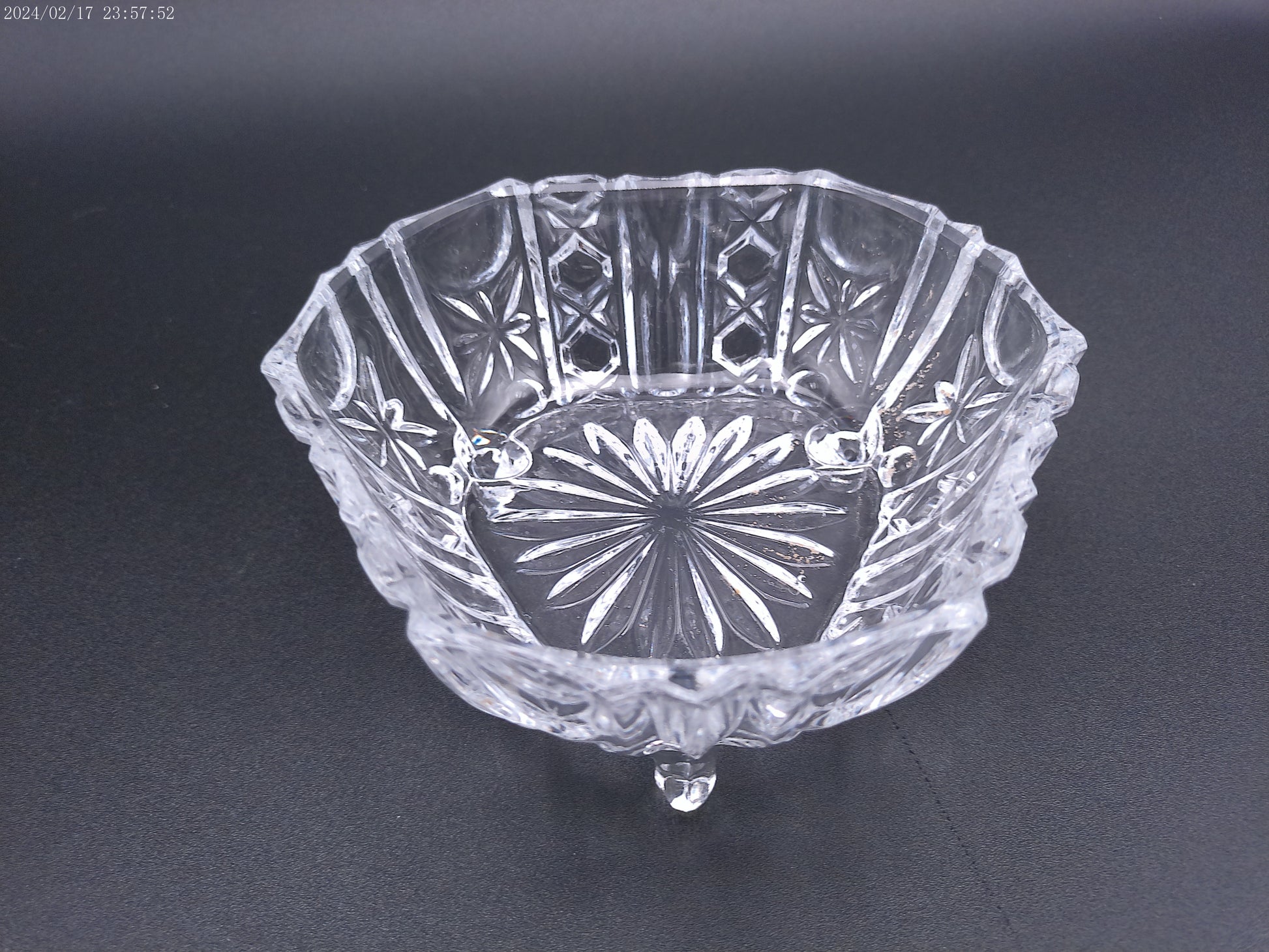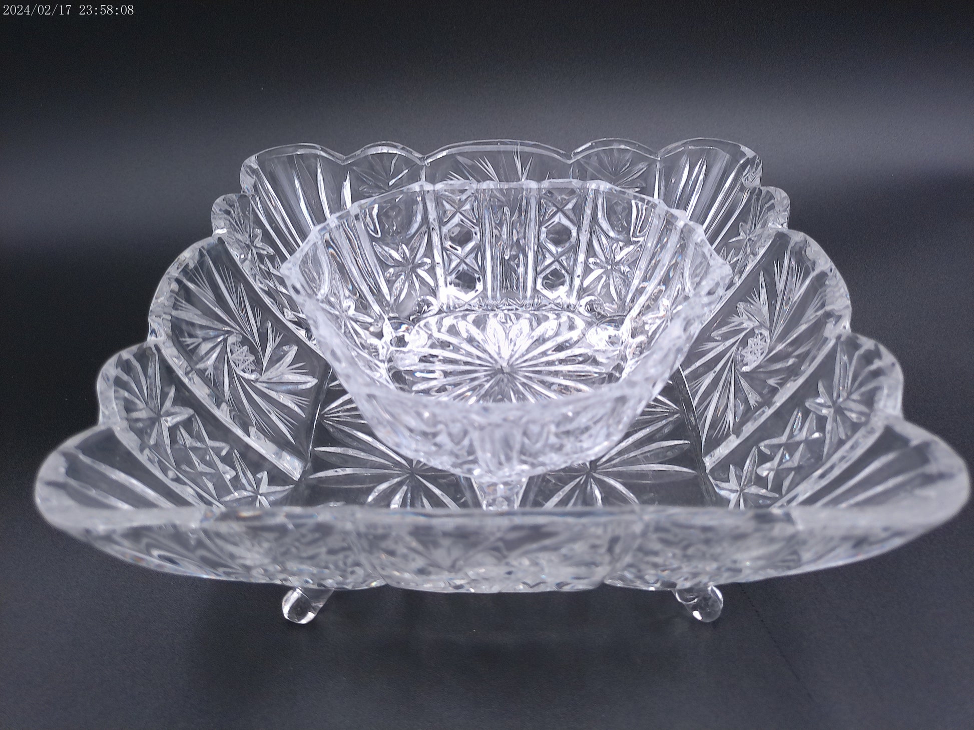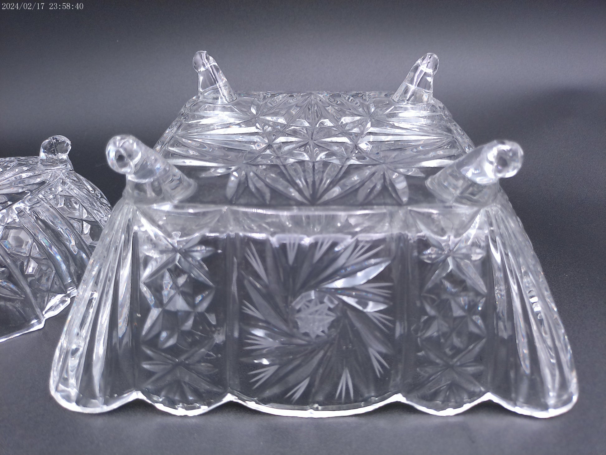 Violetta Square Lead Crystal Footed Bowl Poland Starburst Hobstar Pinwhee lot of 2
