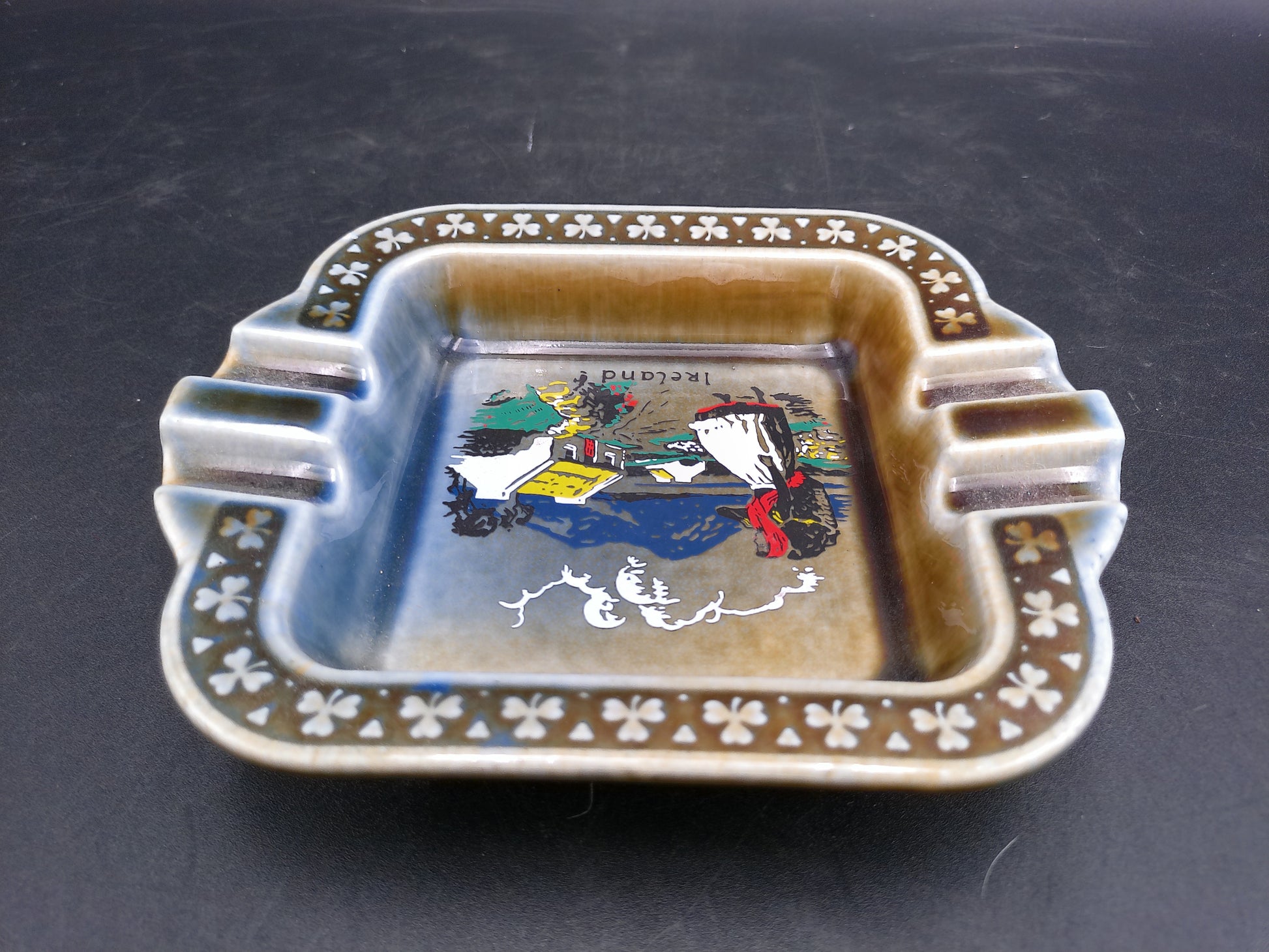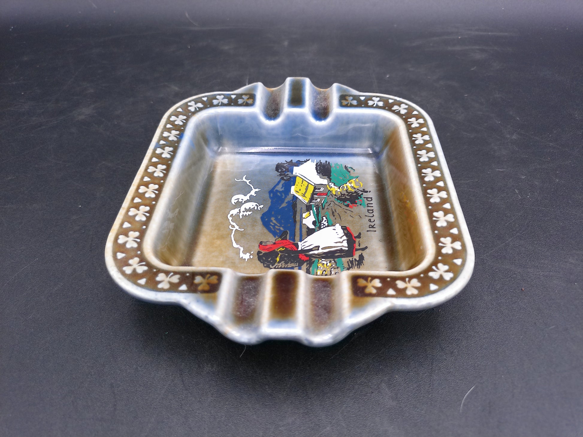 The Wade Armagh Co Irish Porcelain Ashtray showcases a charming farm scene and is made with high-quality materials in Ireland. Expertly crafted, this ashtray is a must-have for any collector or lover of Irish craftsmanship. Add a touch of sophistication and history to your decor with this unique piece.