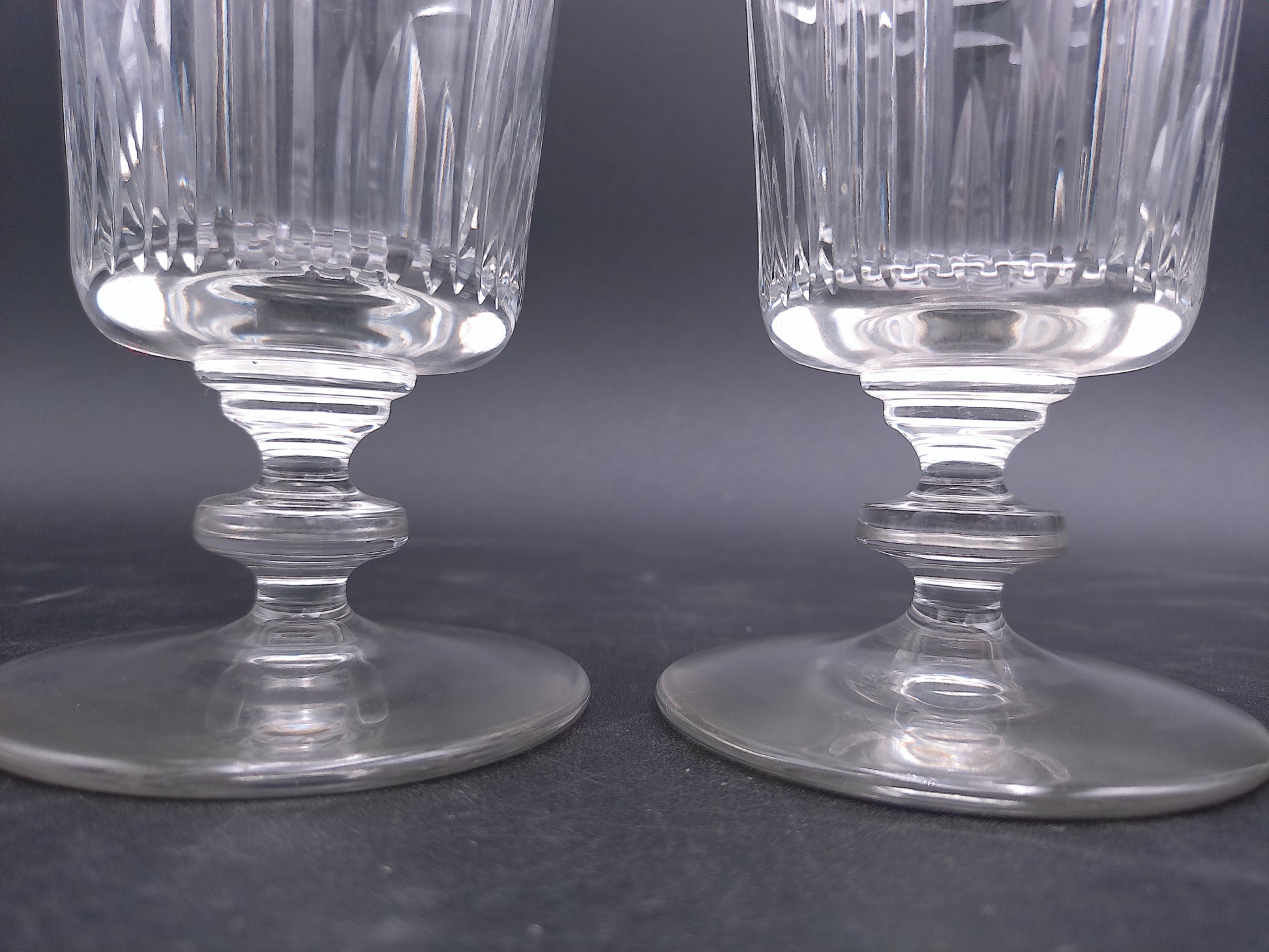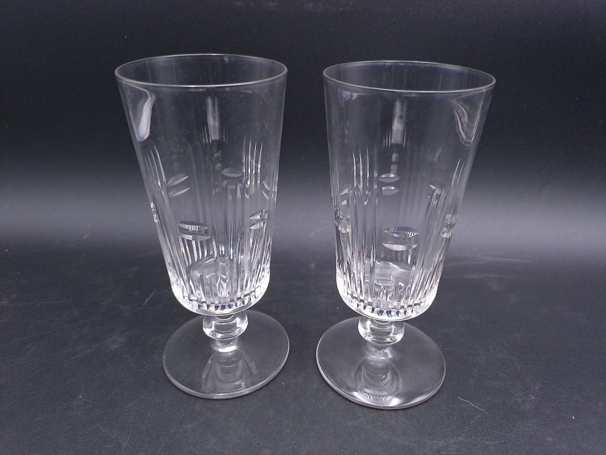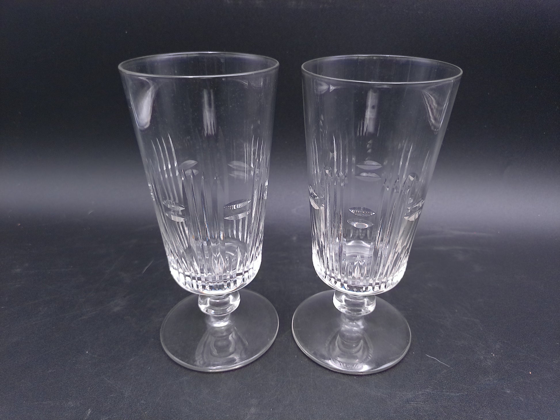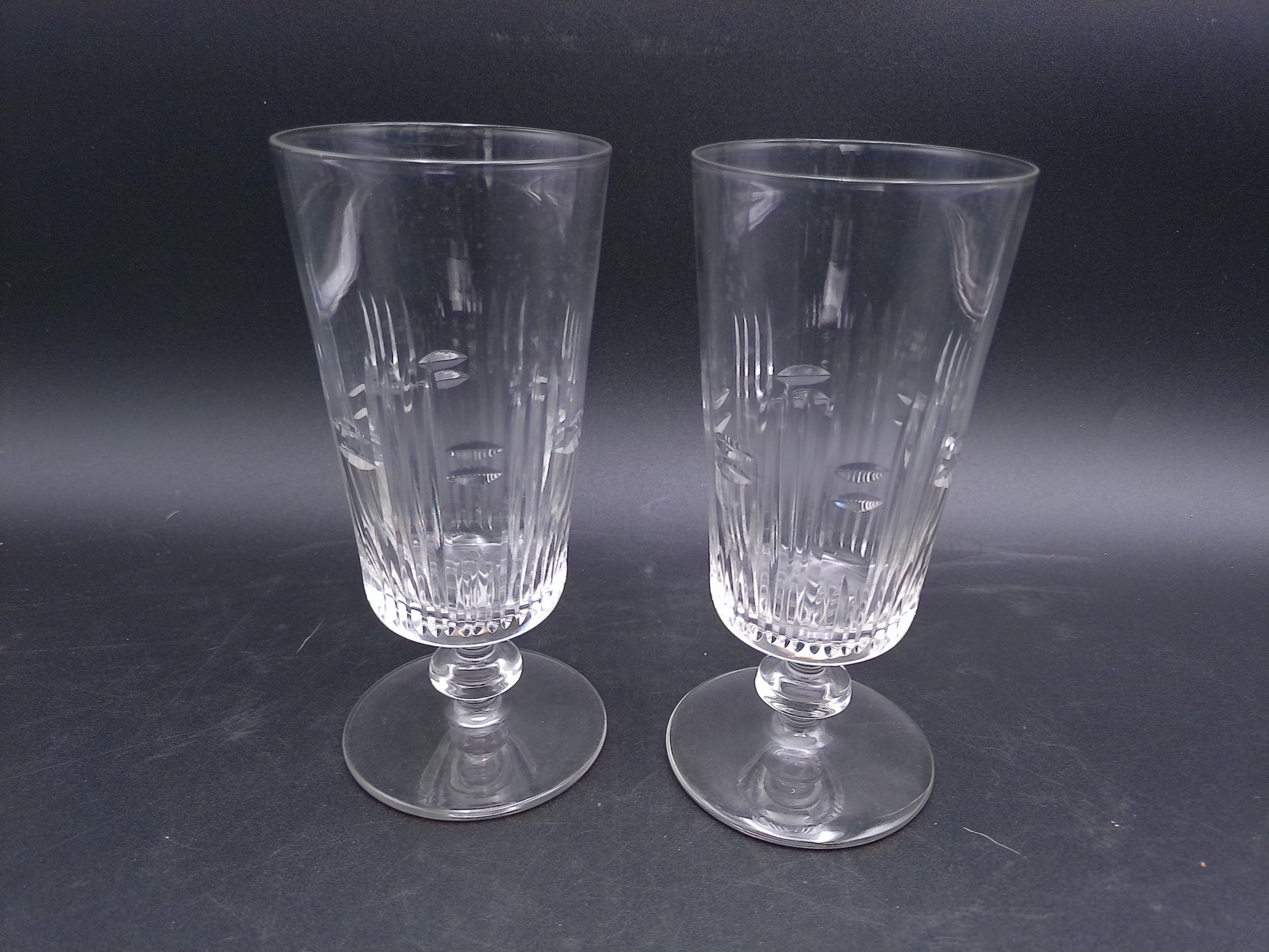 Water Ice Tea Goblets Glass Renaissance Vertical Cuts Wafer Stem 2Pc