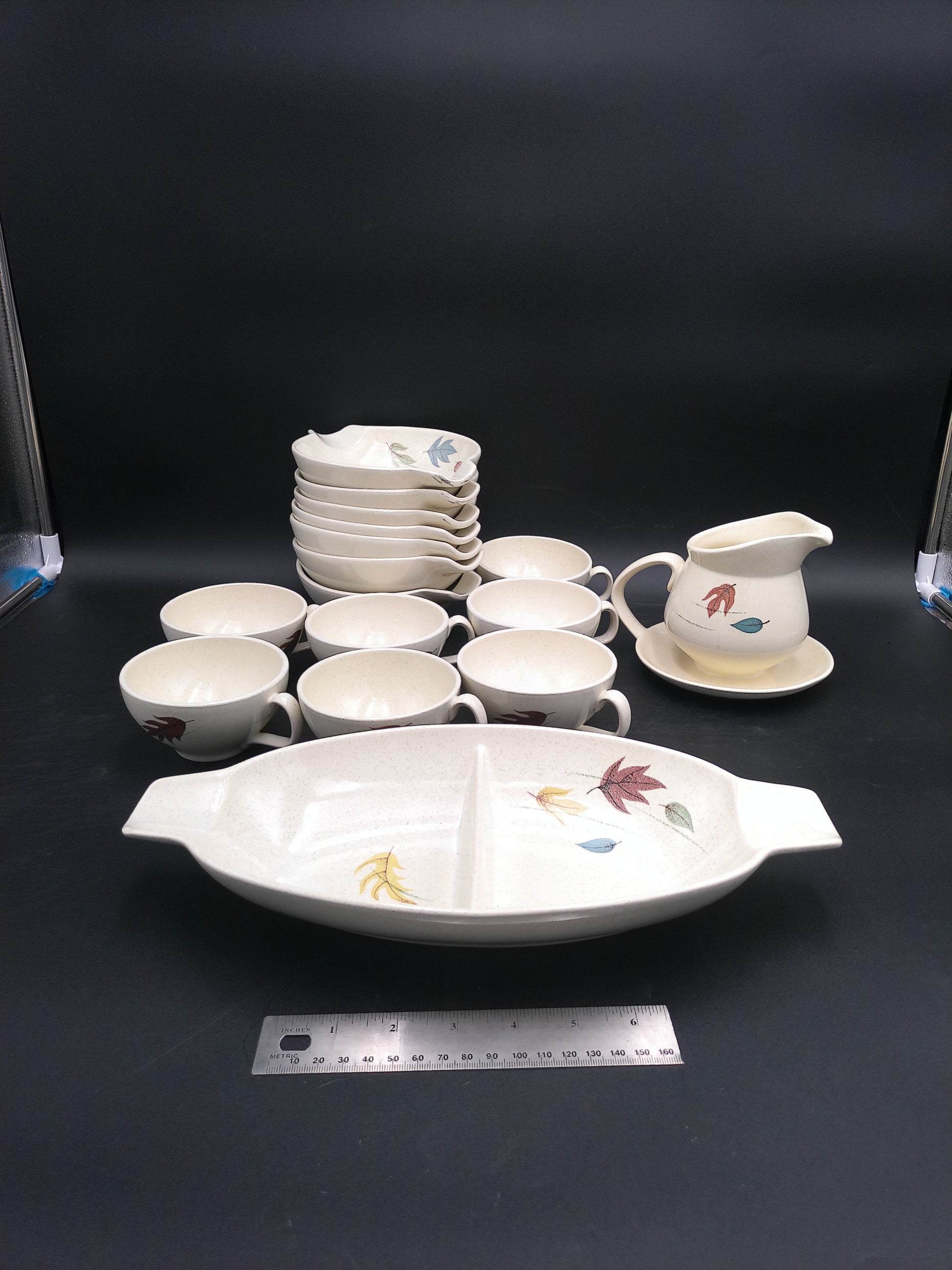 Franciscan Cups, Dishes, Plate and Pitcher Leaf Design 1950s