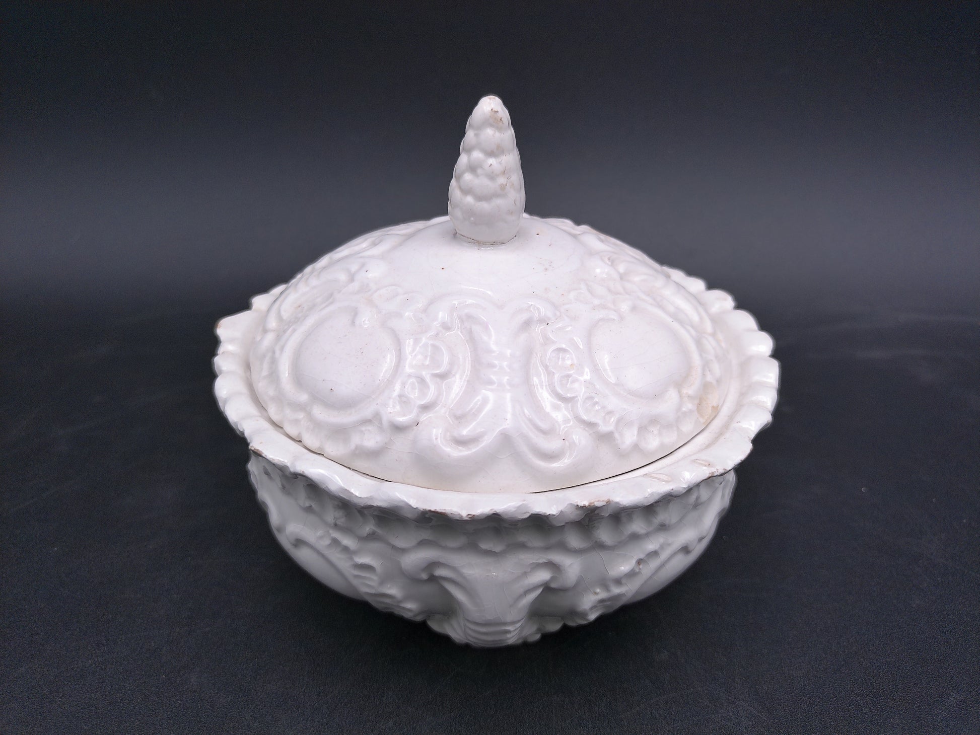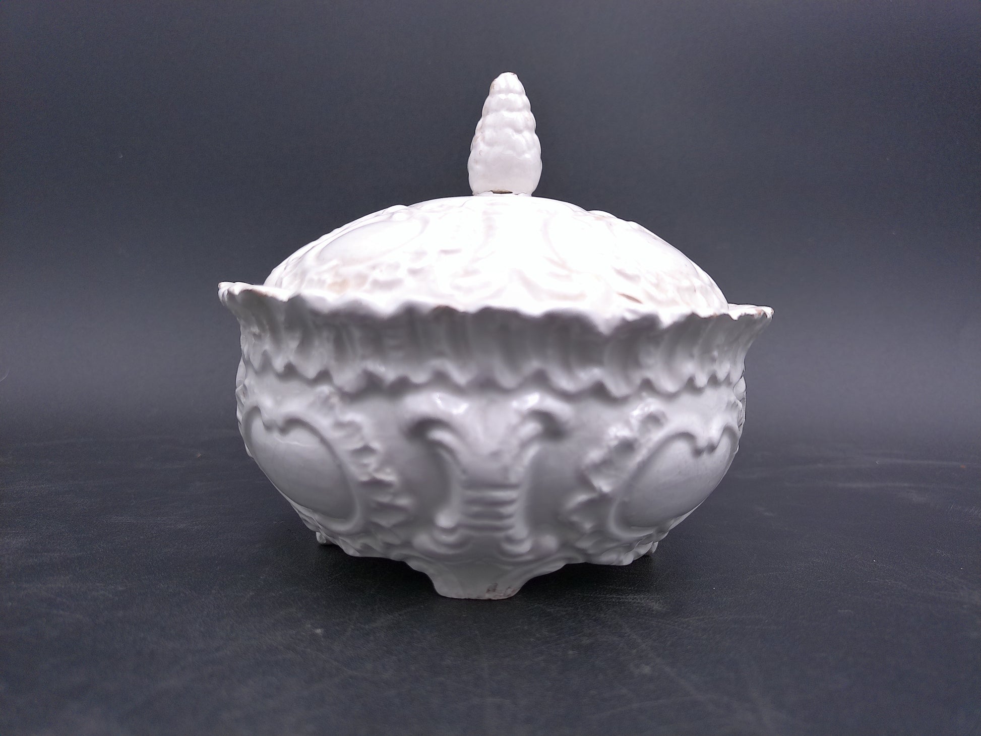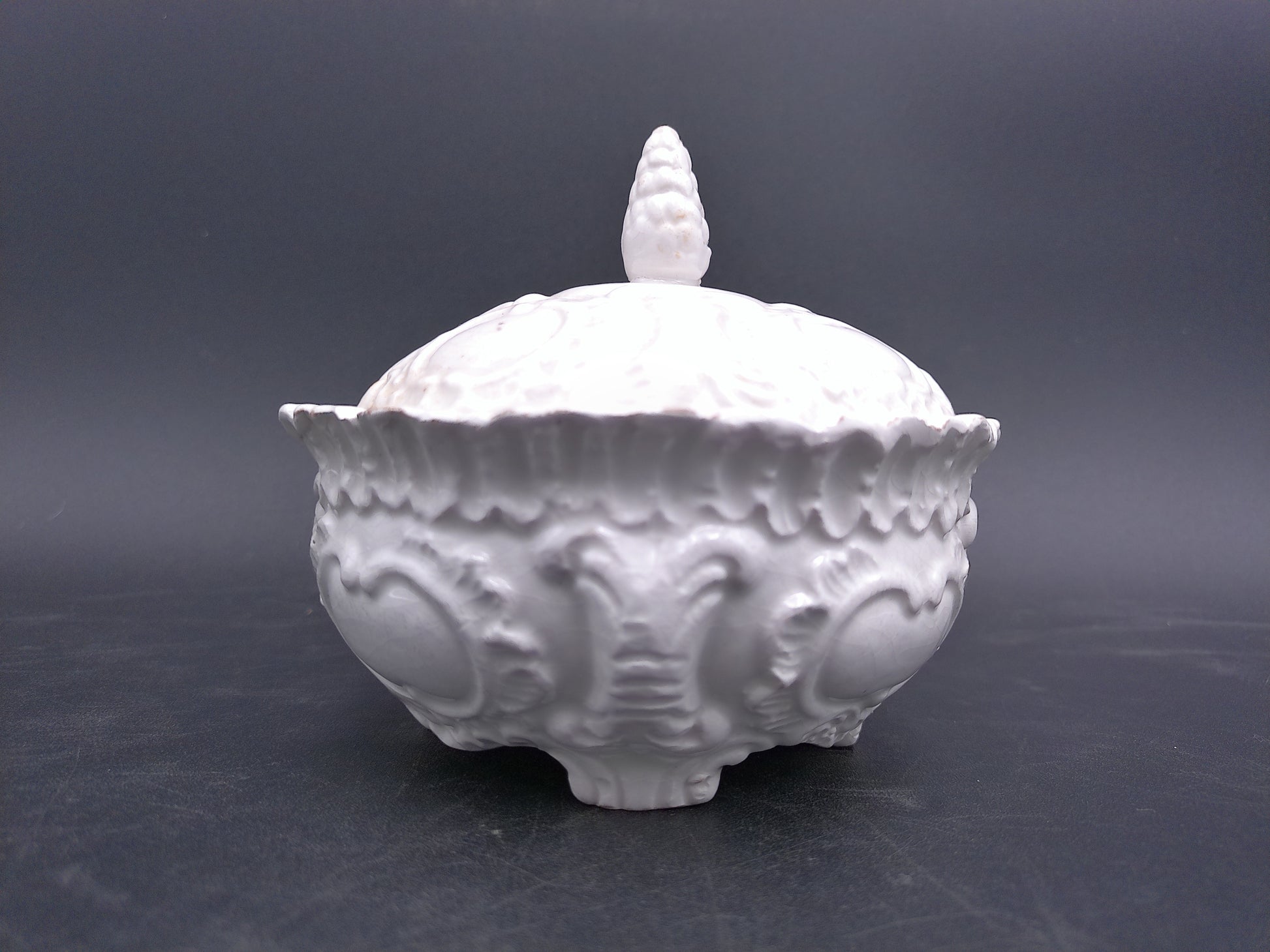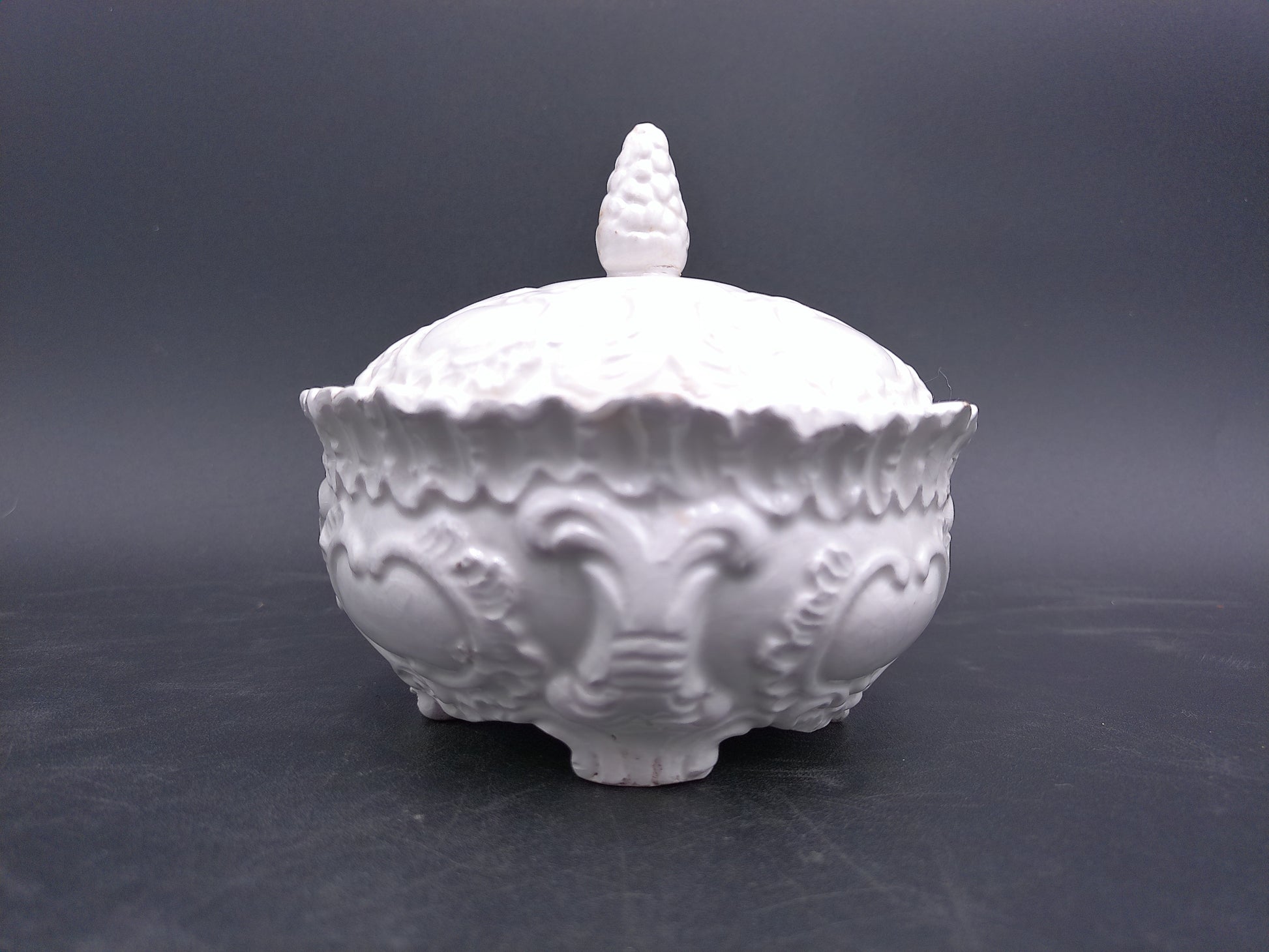 Milk Glass Footed Dish Bowl With Lid Made in Italy No. 375