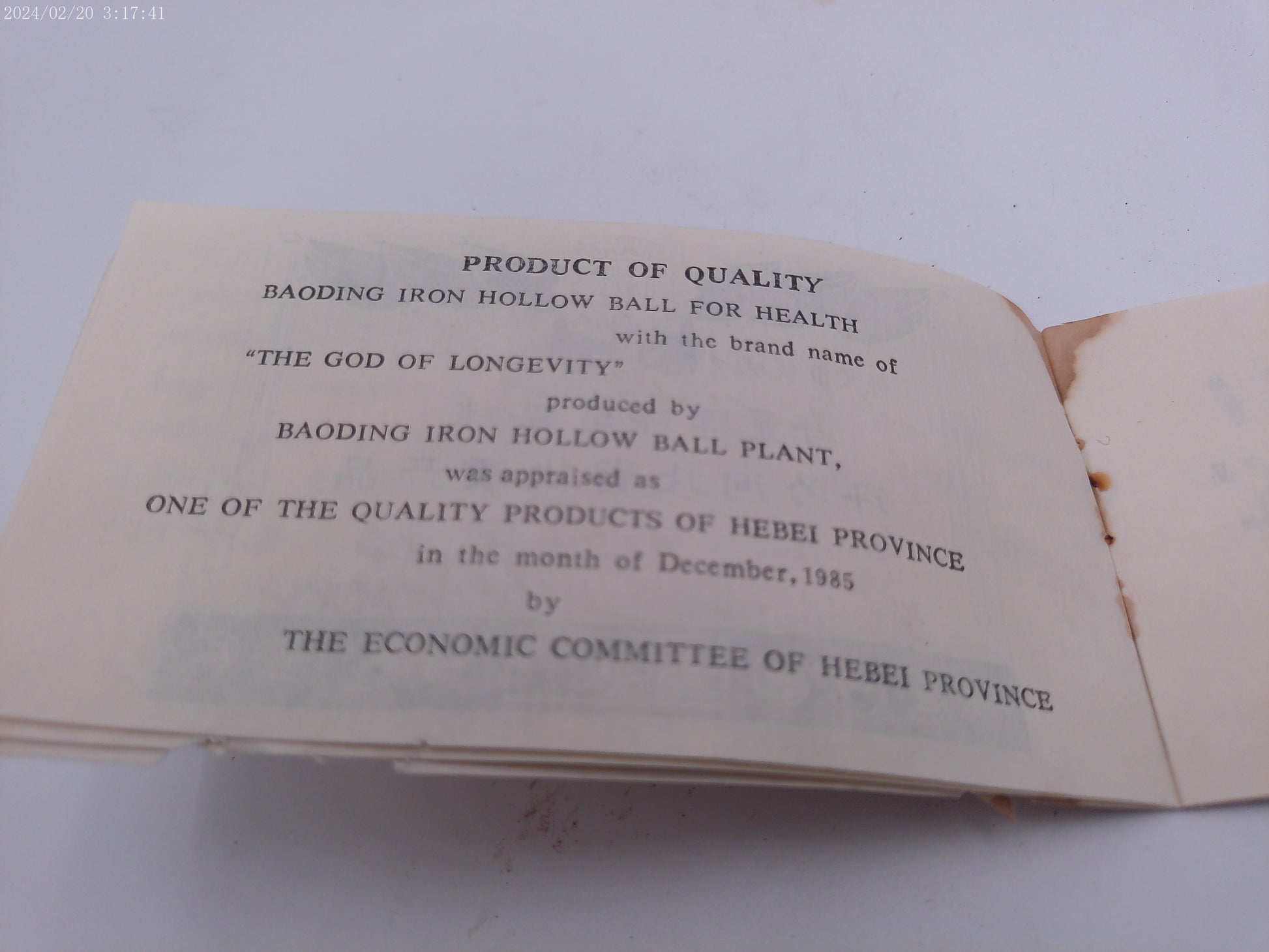 Zen Baoding Shouxing Chinese Medicine Balls Stress Relief Silver Chimes Vintage